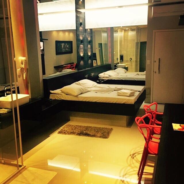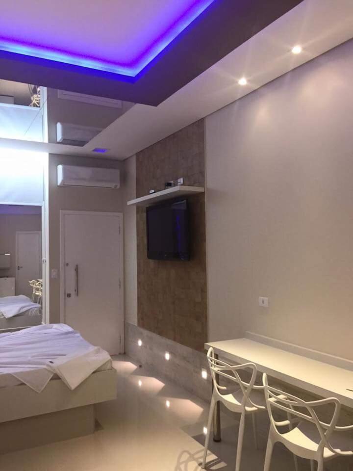Dinys Motel, an adults-only love hotel in Praia Grande, offers a distinct style in each room with amenities like TV, air conditioning, and a dining table for your comfort.