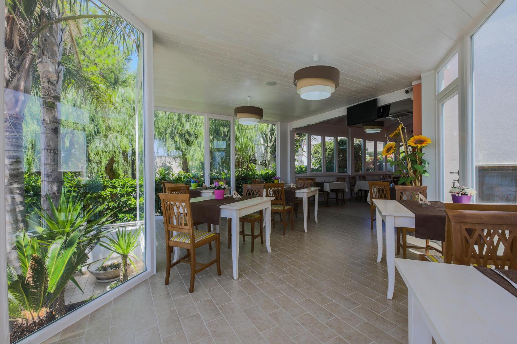 Indulge in a sweet and savoury breakfast with cold meats, croissants, and bread at the hotel. For other meals, the restaurant serves typical Mediterranean dishes, including a gluten-free menu.