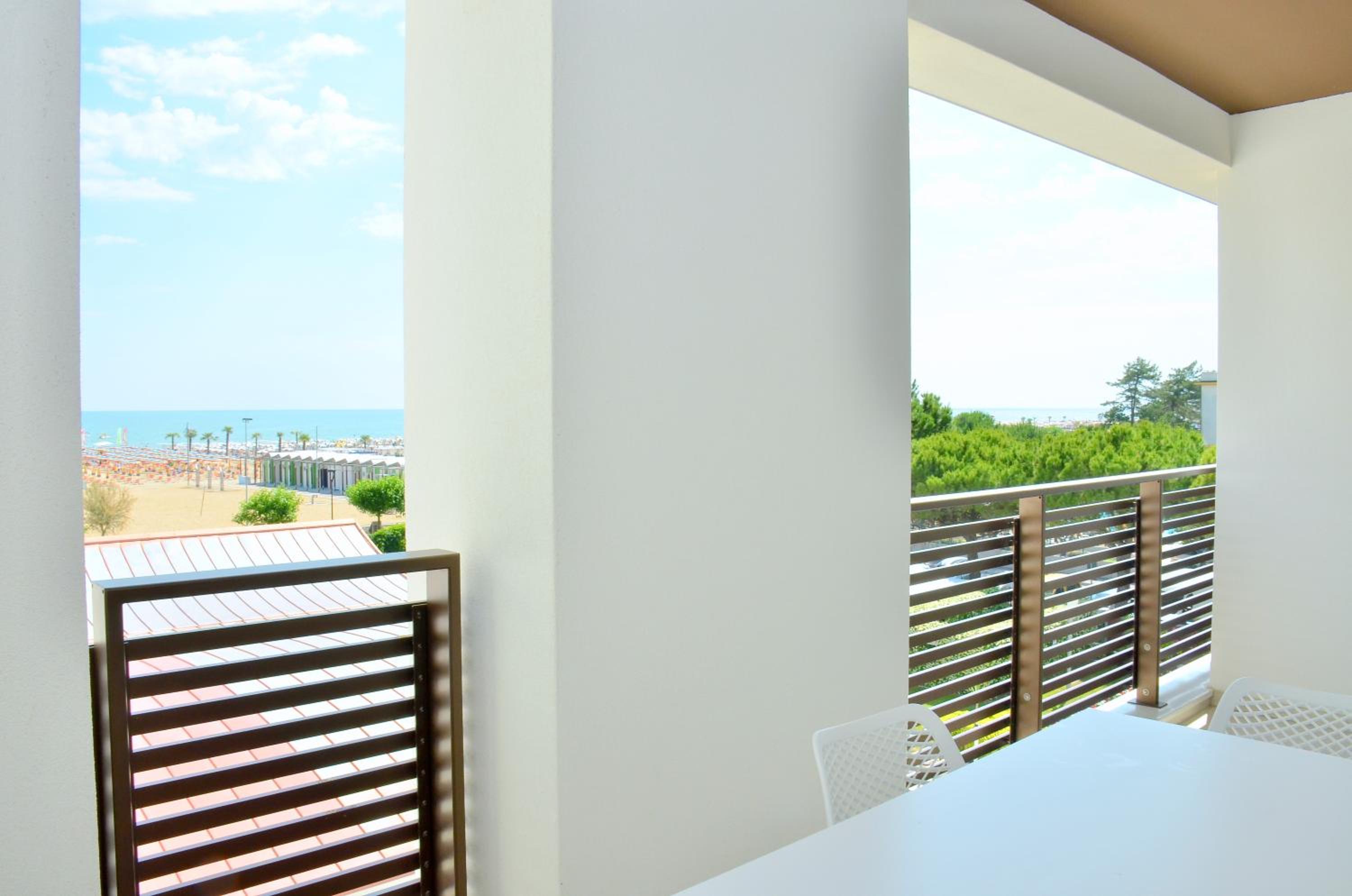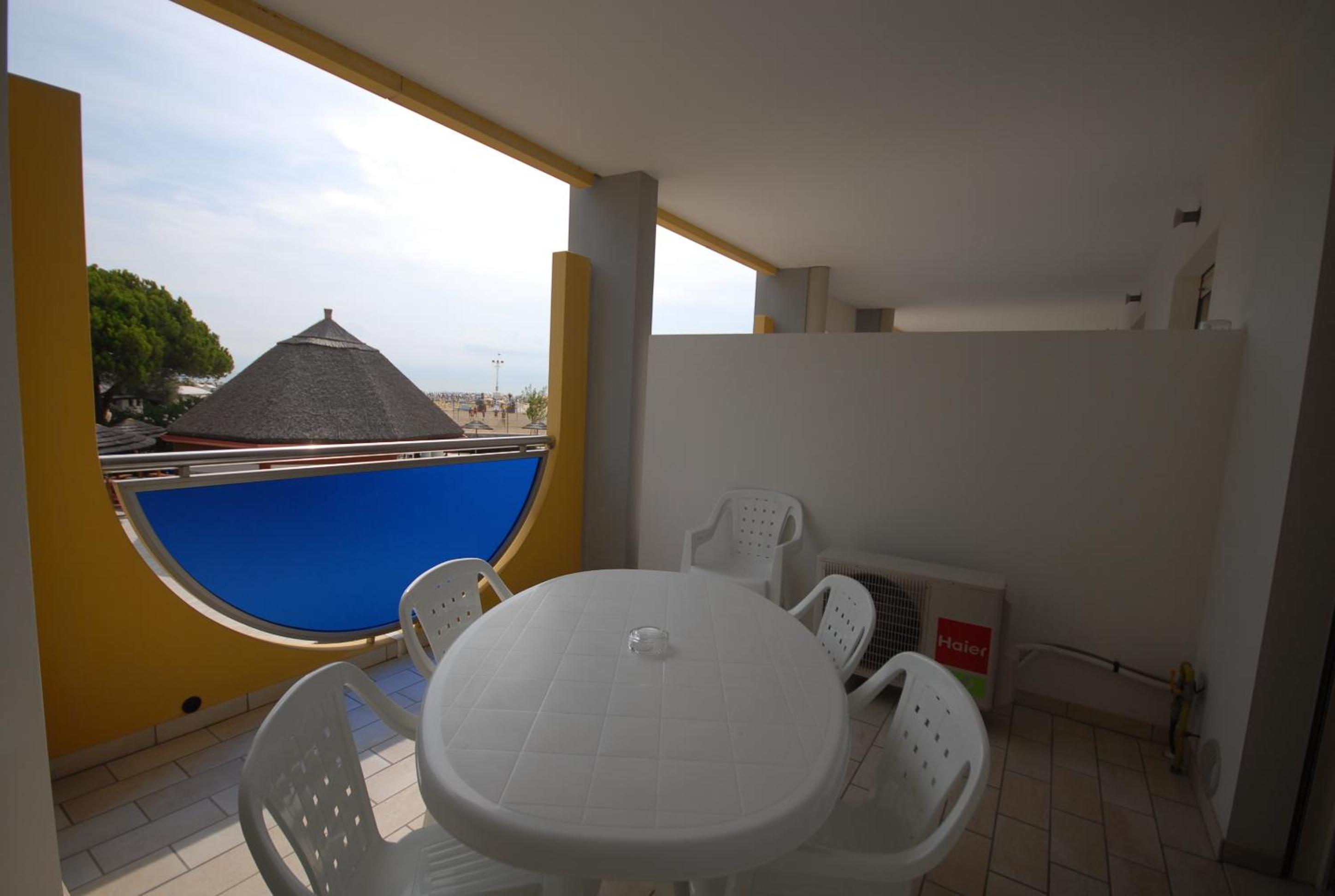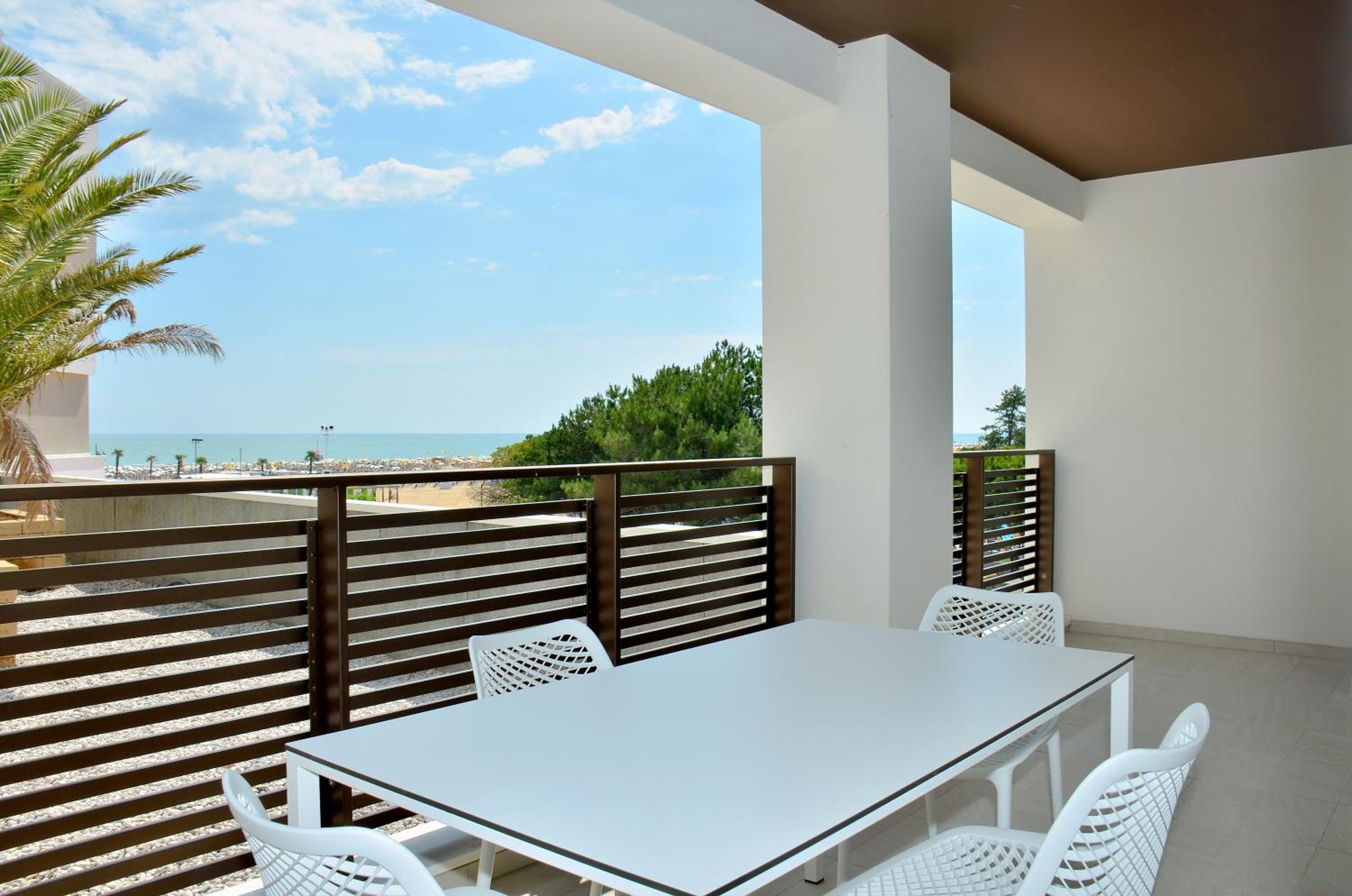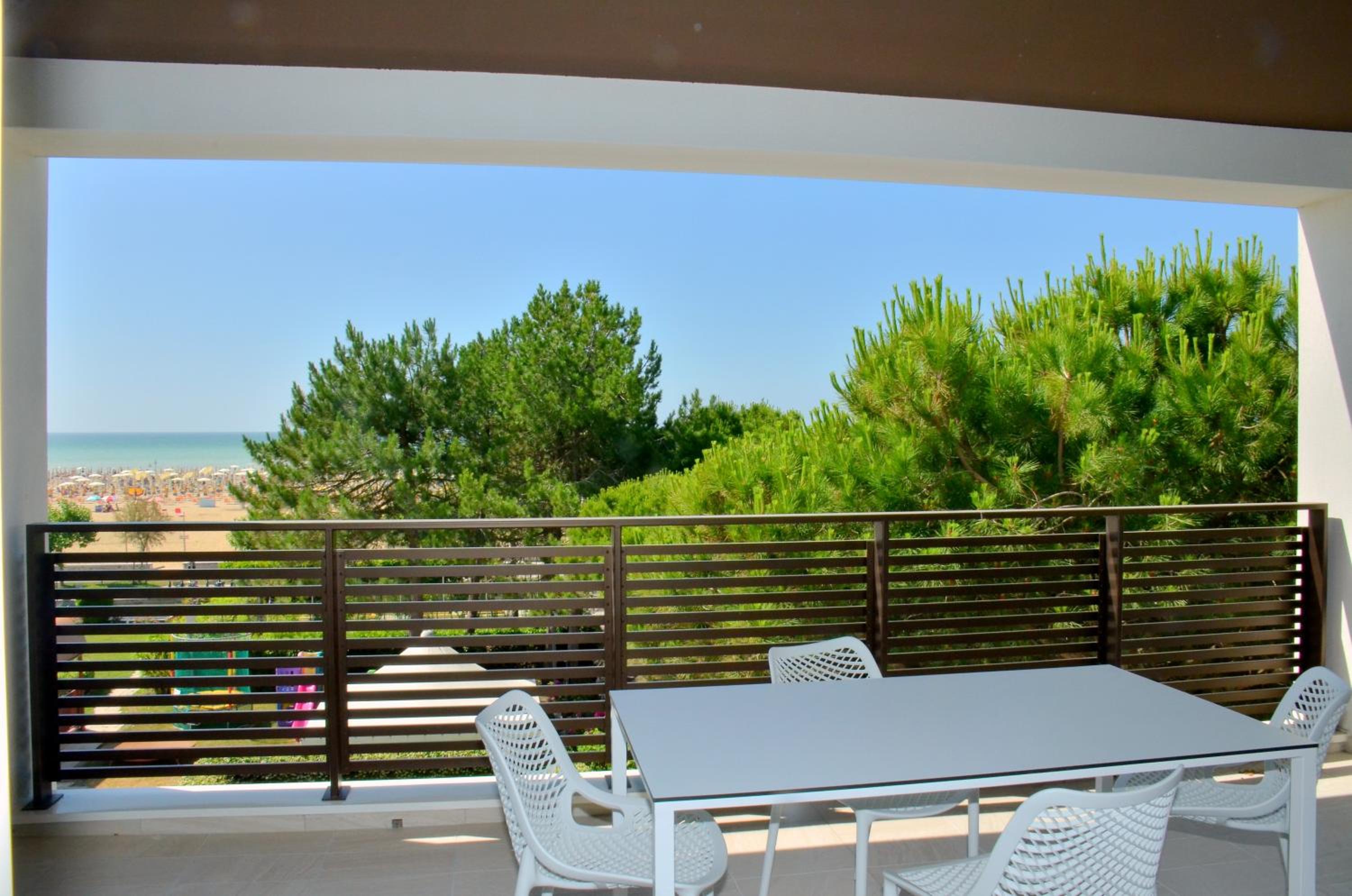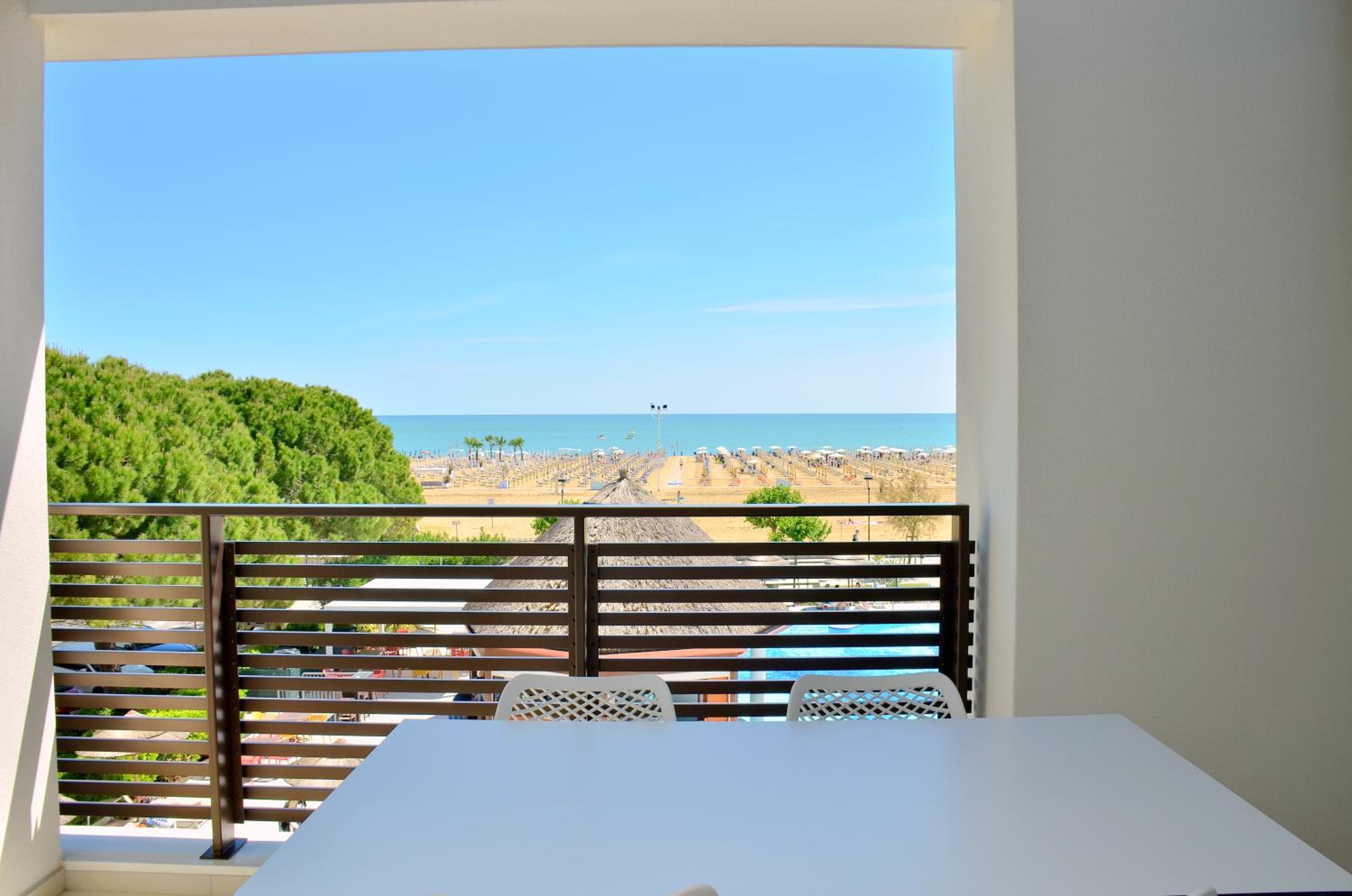 Il terrazzo dell'appartamento, il fatto che la struttura fosse fronte spiaggia e a pochi passi dalla strada principale di Bibione. Il design della