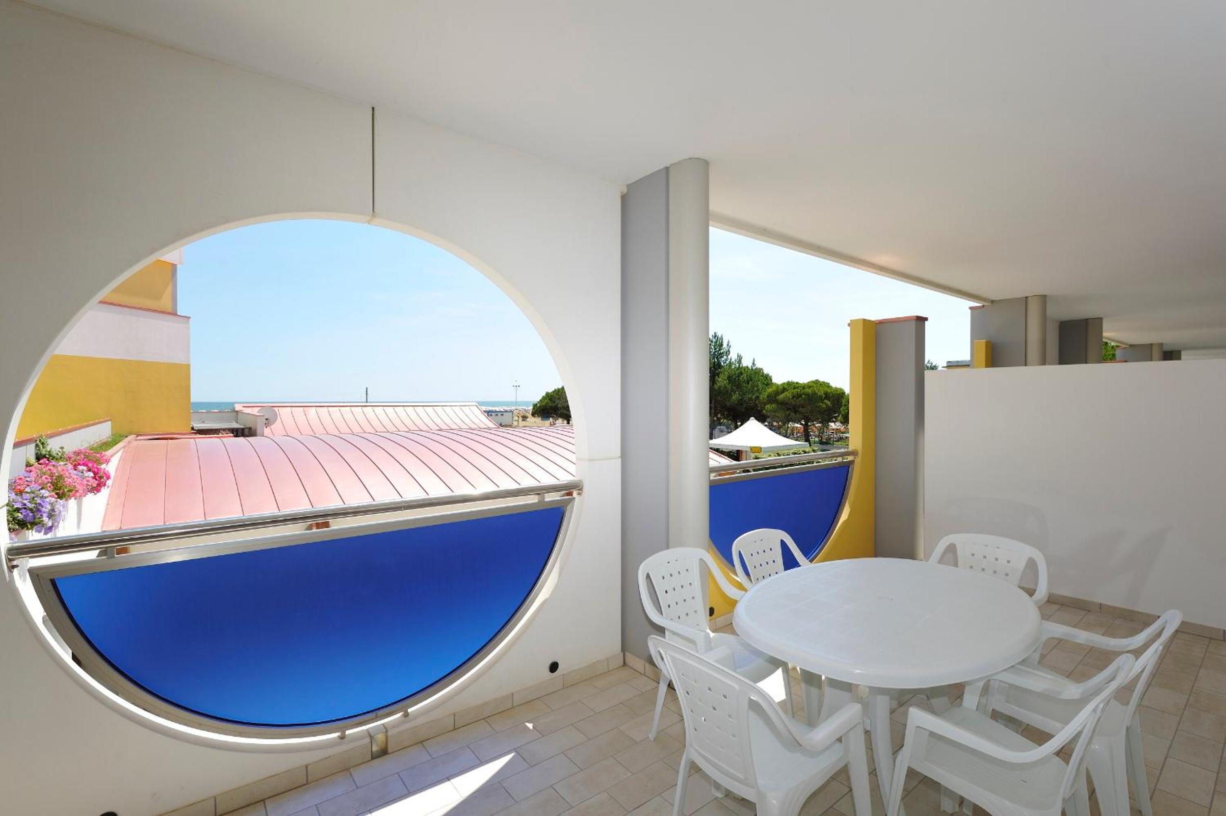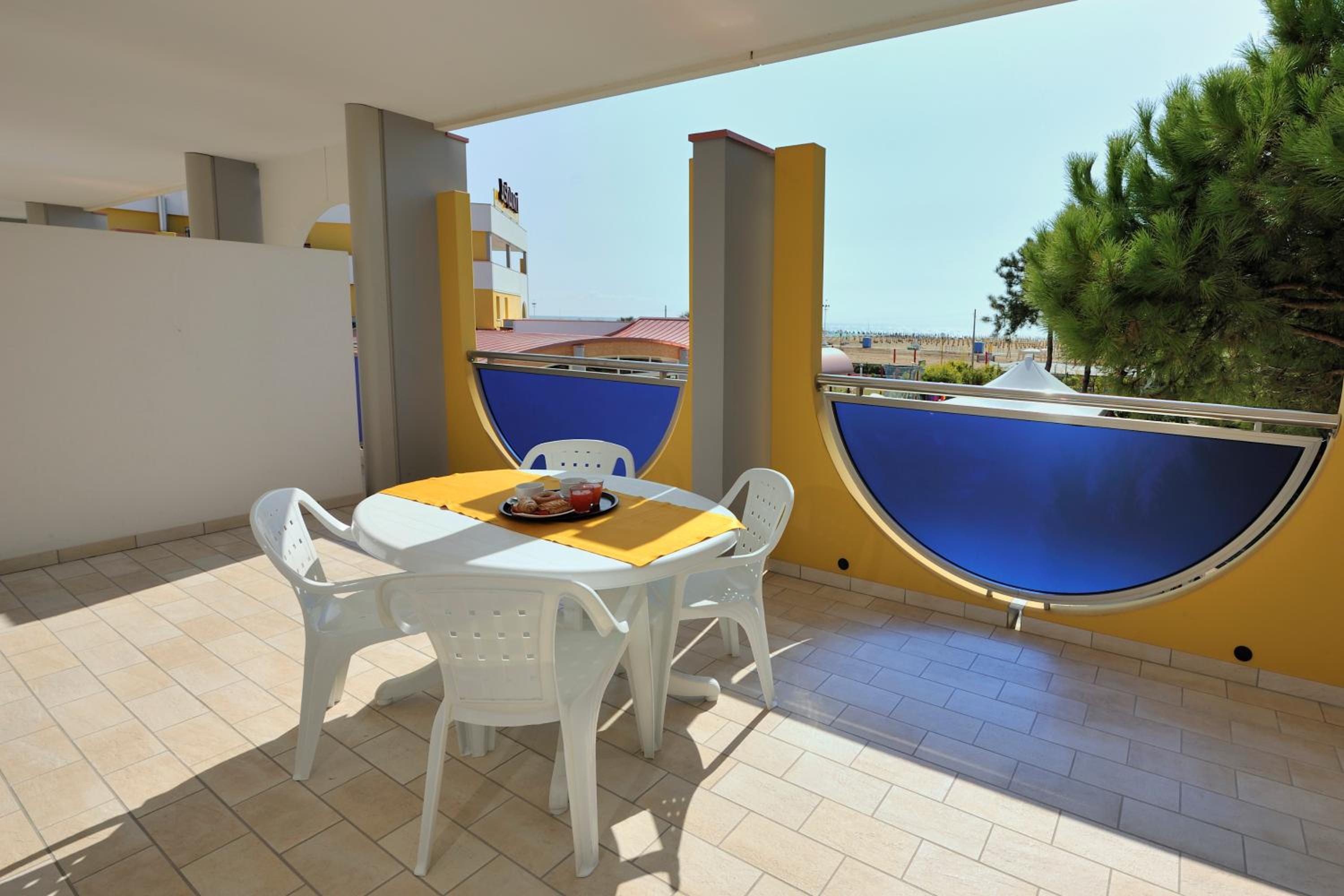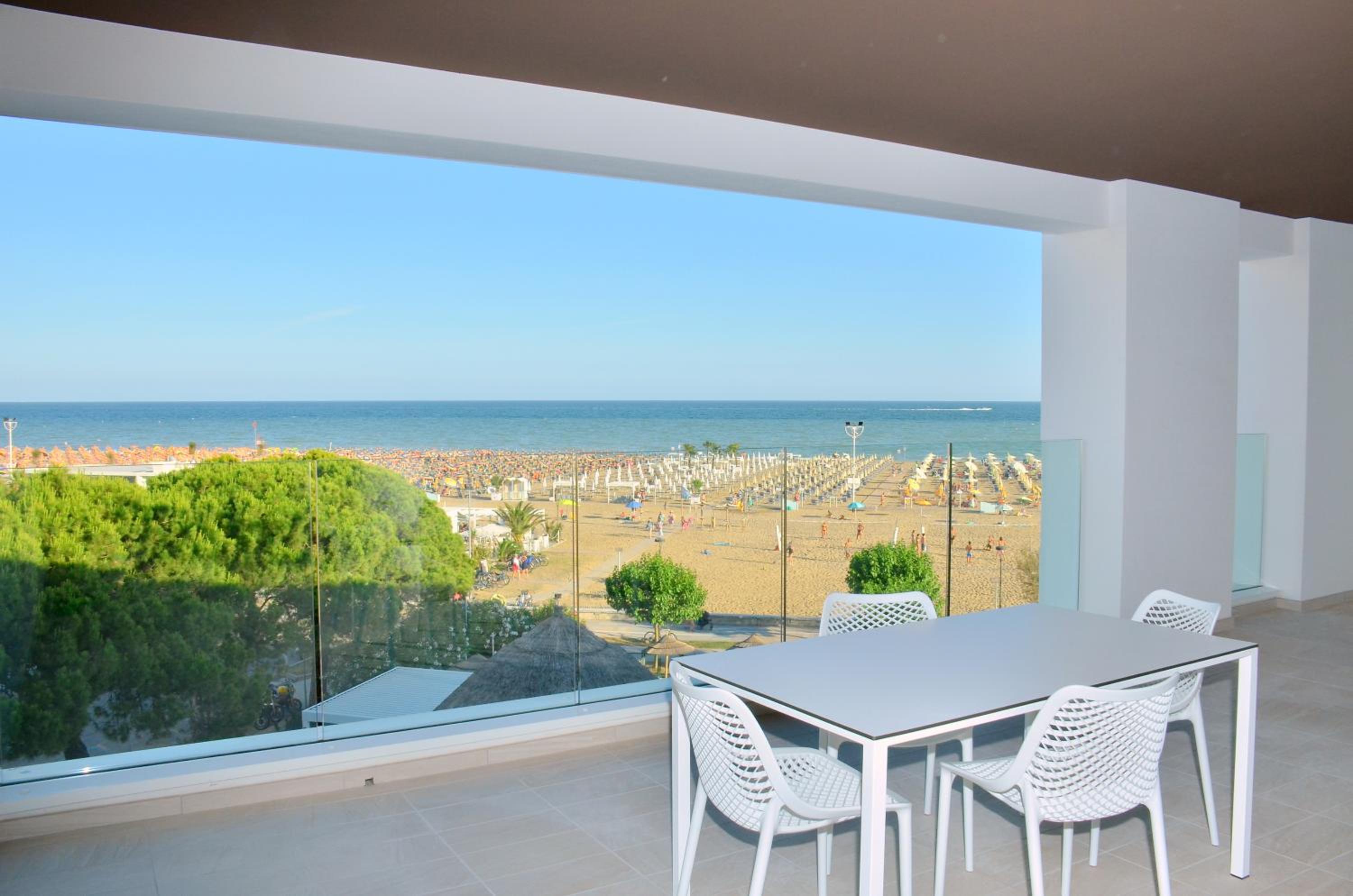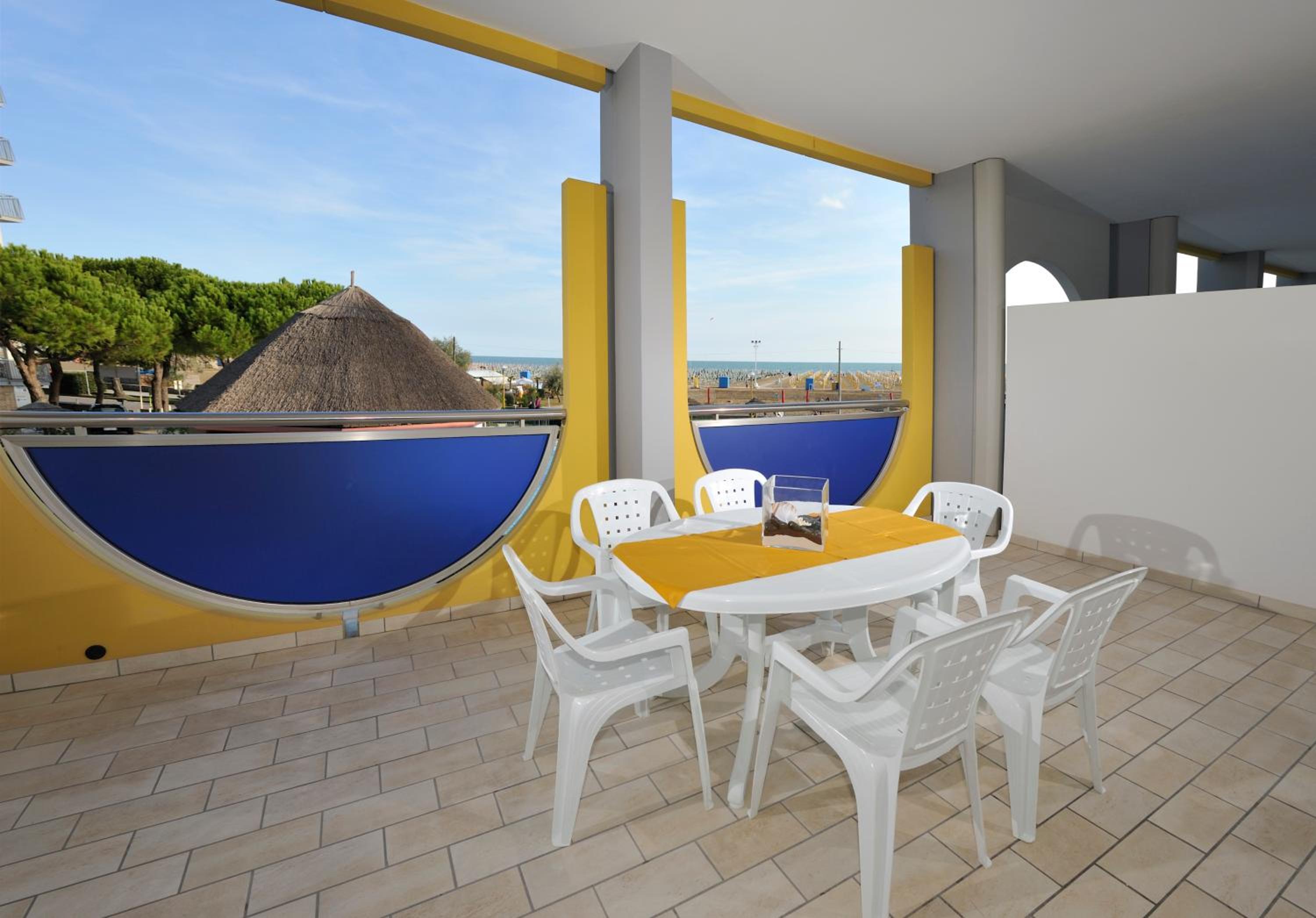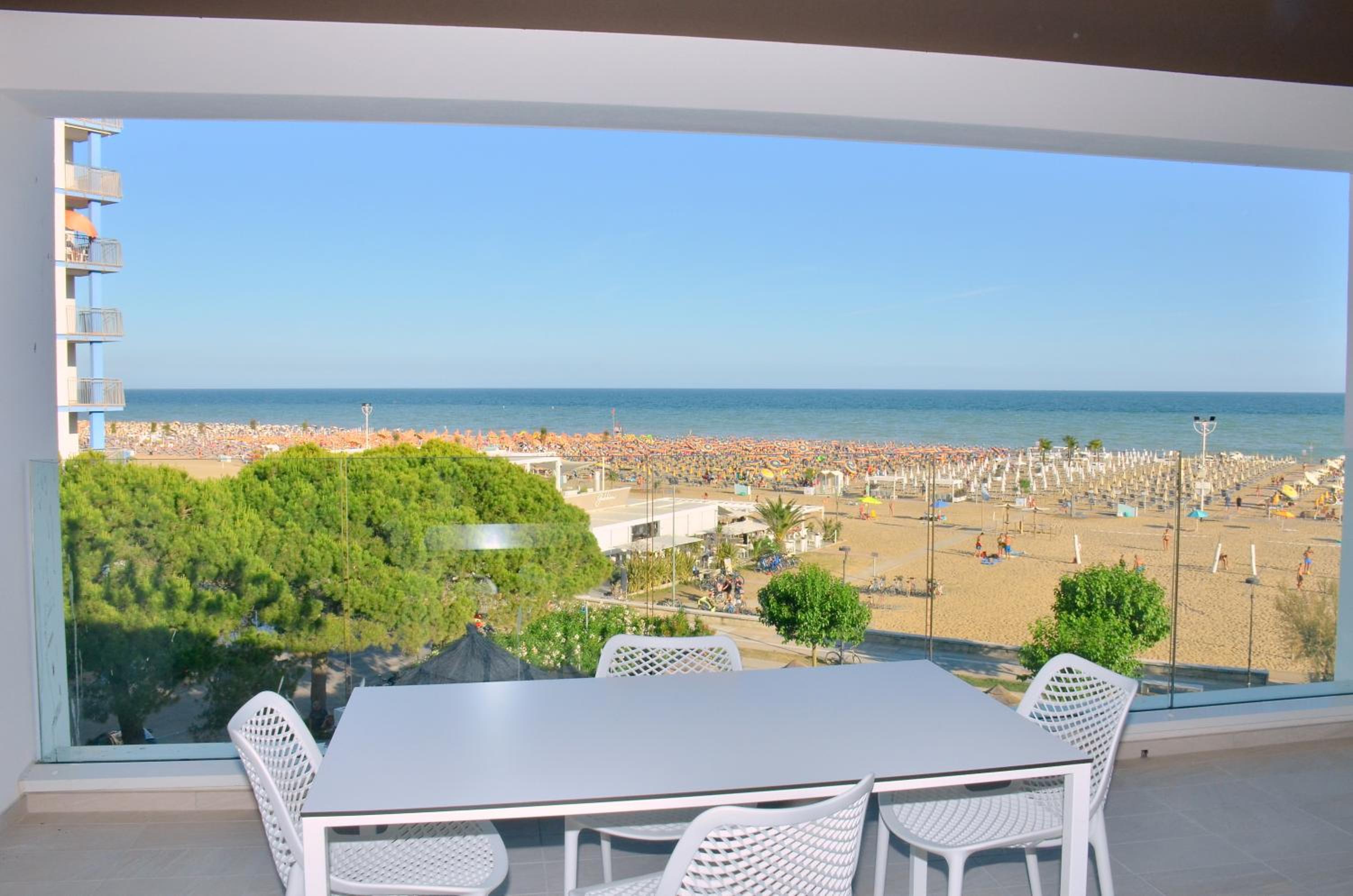 Il terrazzo dell'appartamento, il fatto che la struttura fosse fronte spiaggia e a pochi passi dalla strada principale di Bibione. Il design della