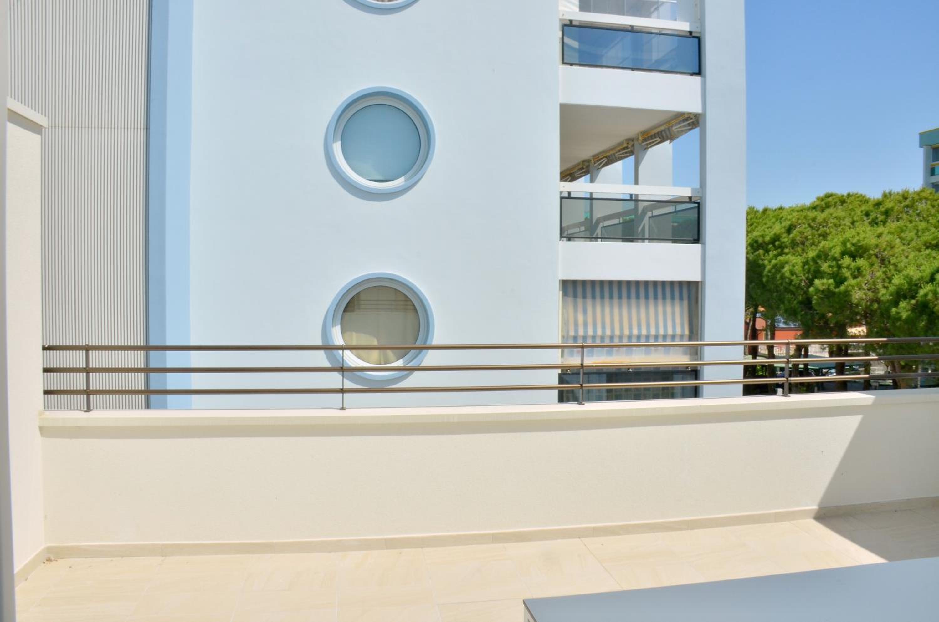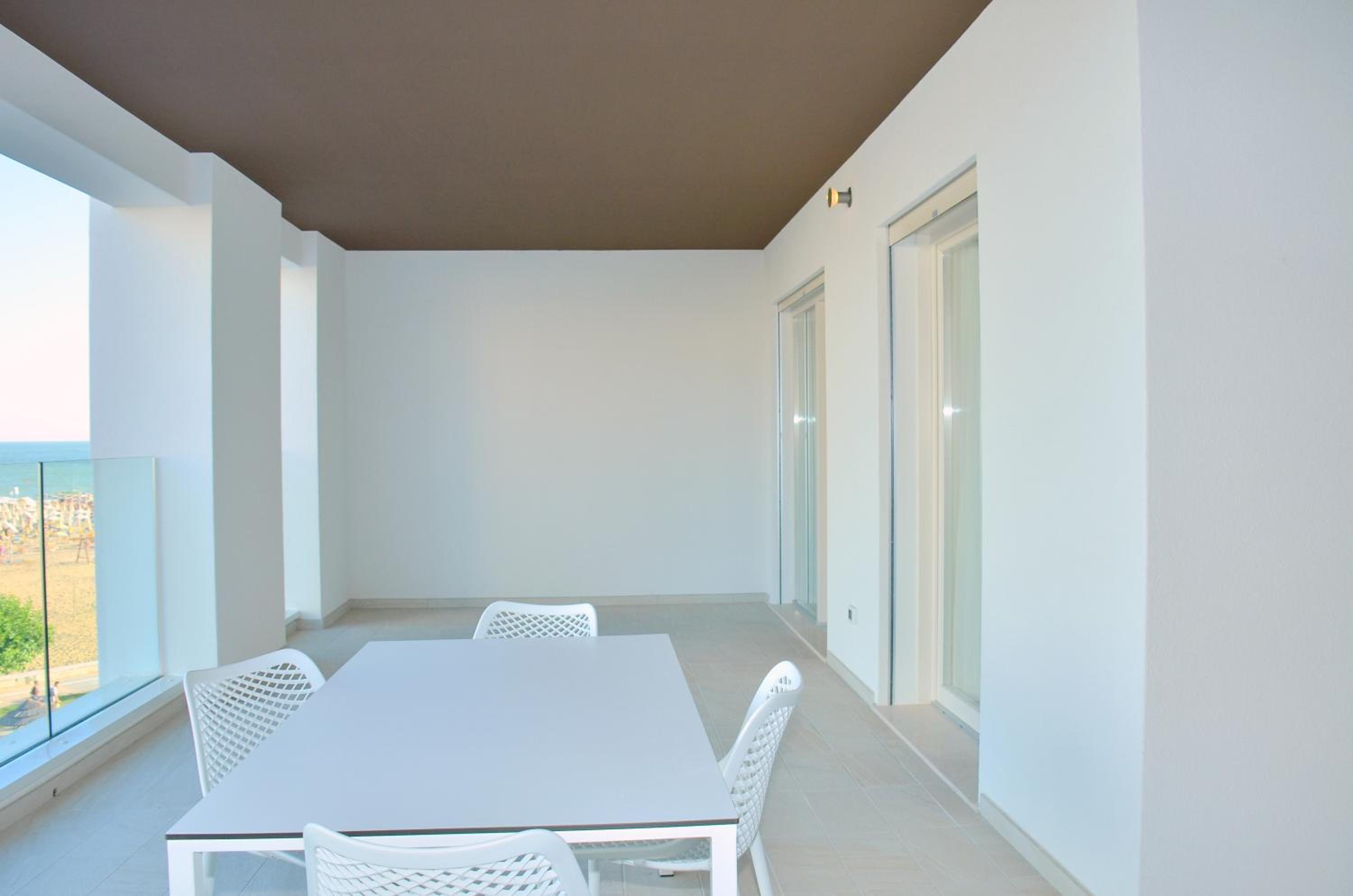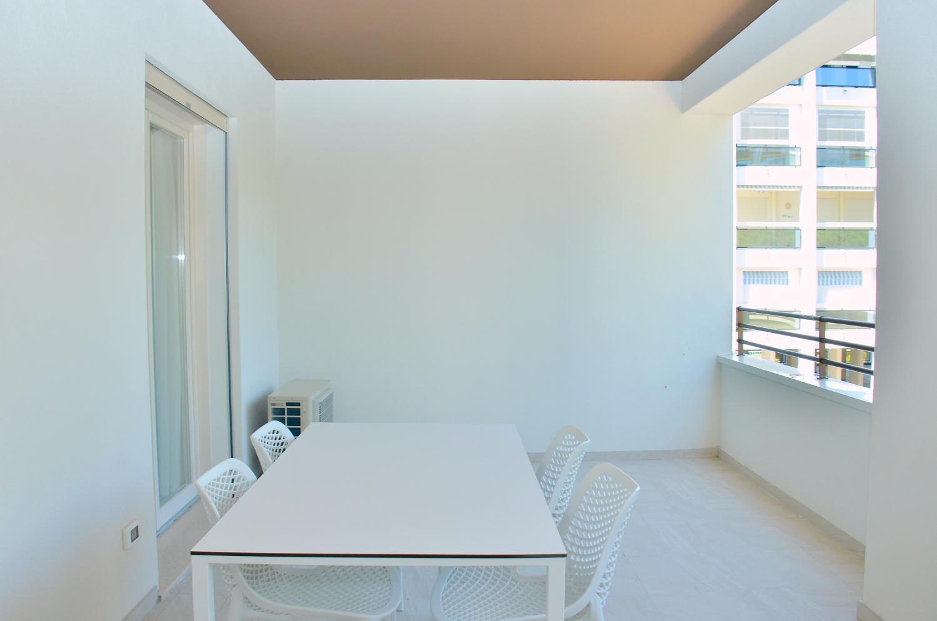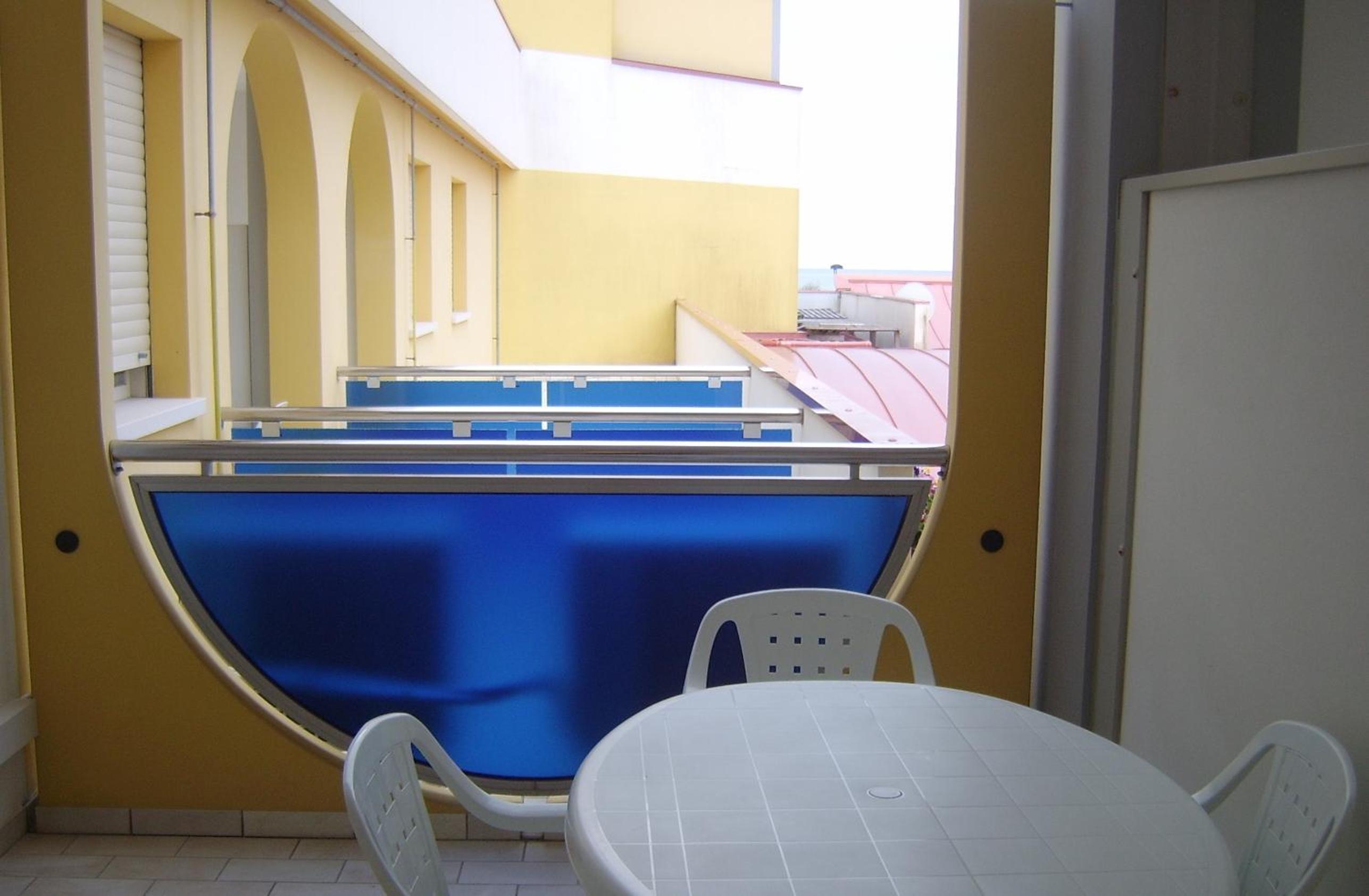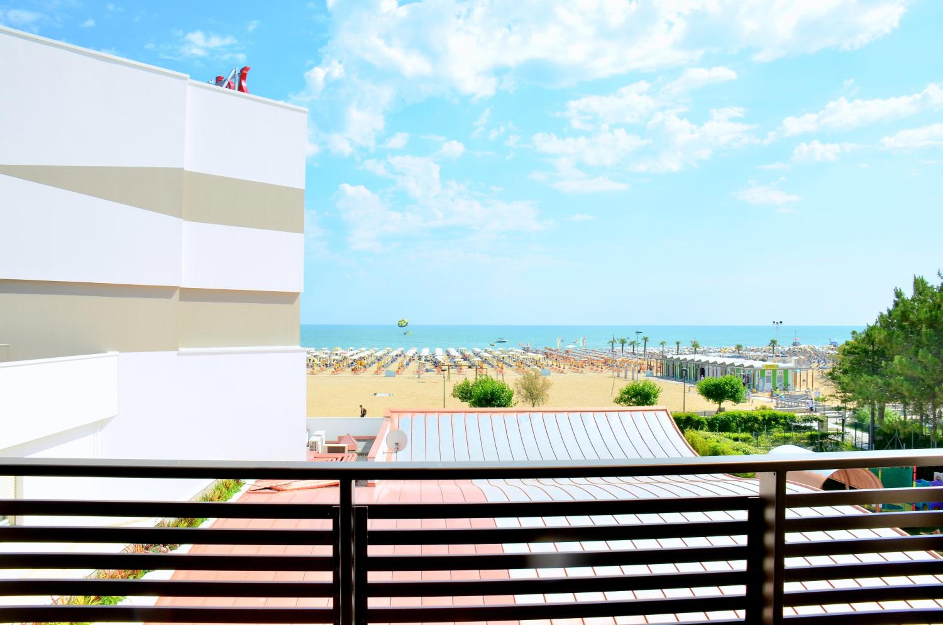 Il terrazzo dell'appartamento, il fatto che la struttura fosse fronte spiaggia e a pochi passi dalla strada principale di Bibione. Il design della