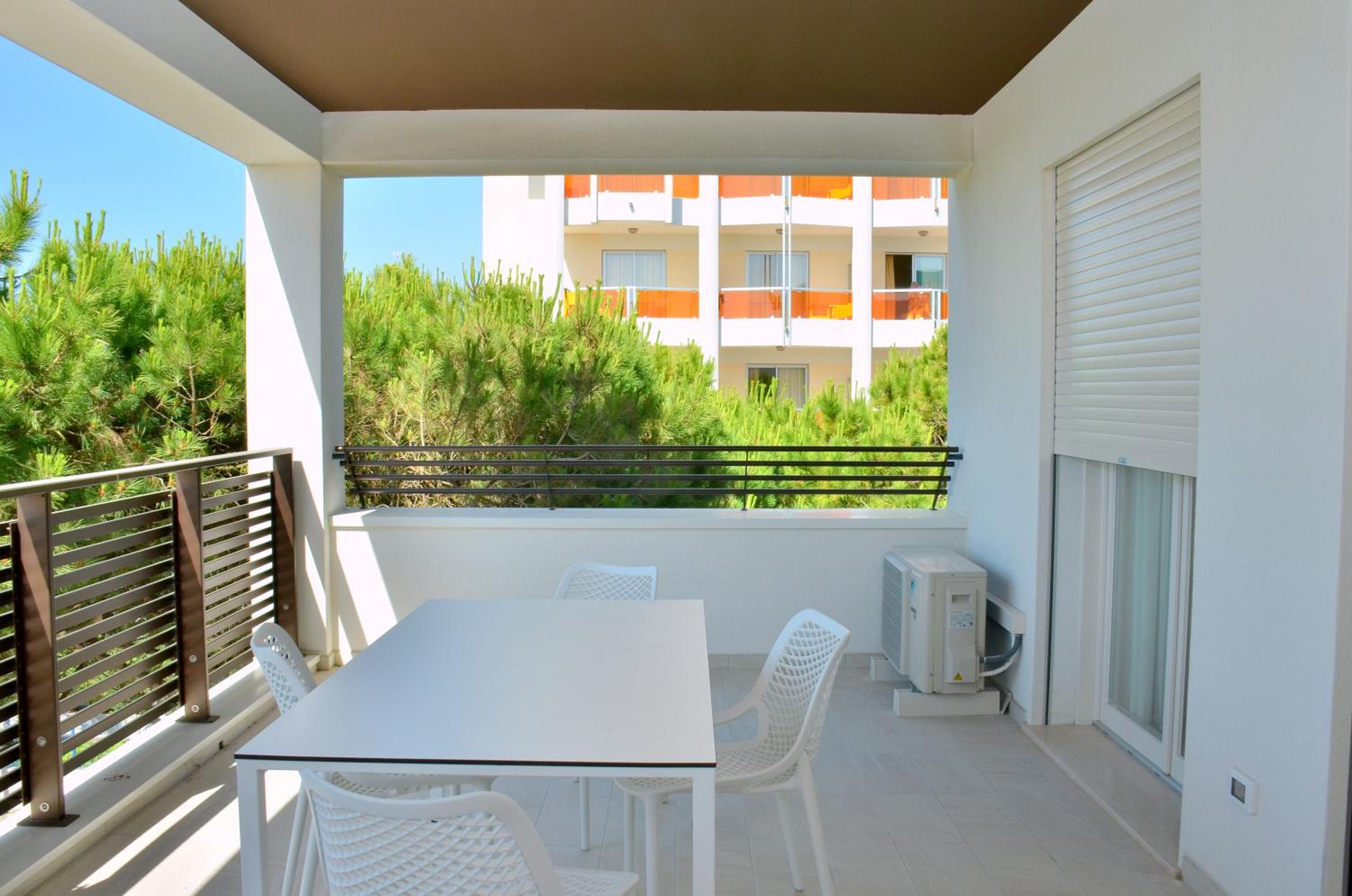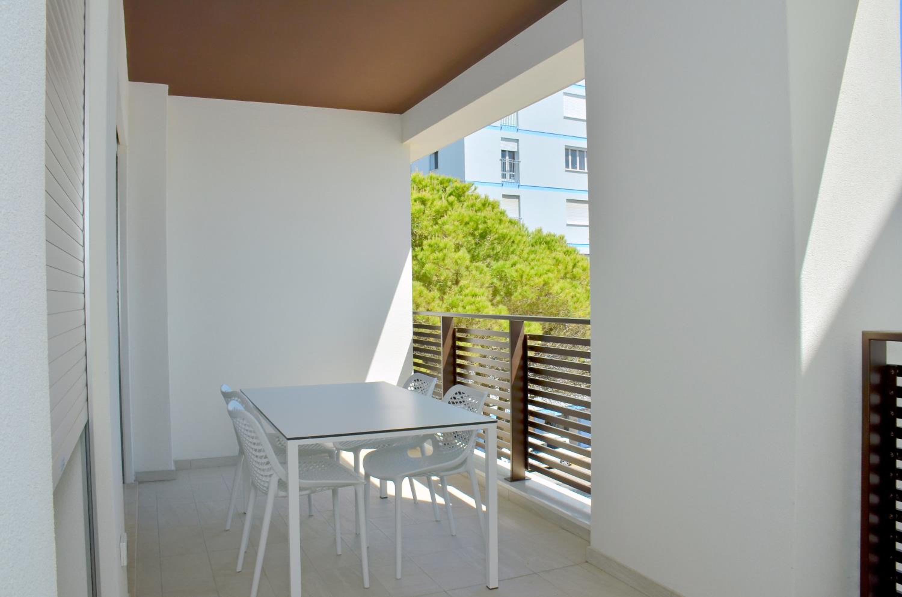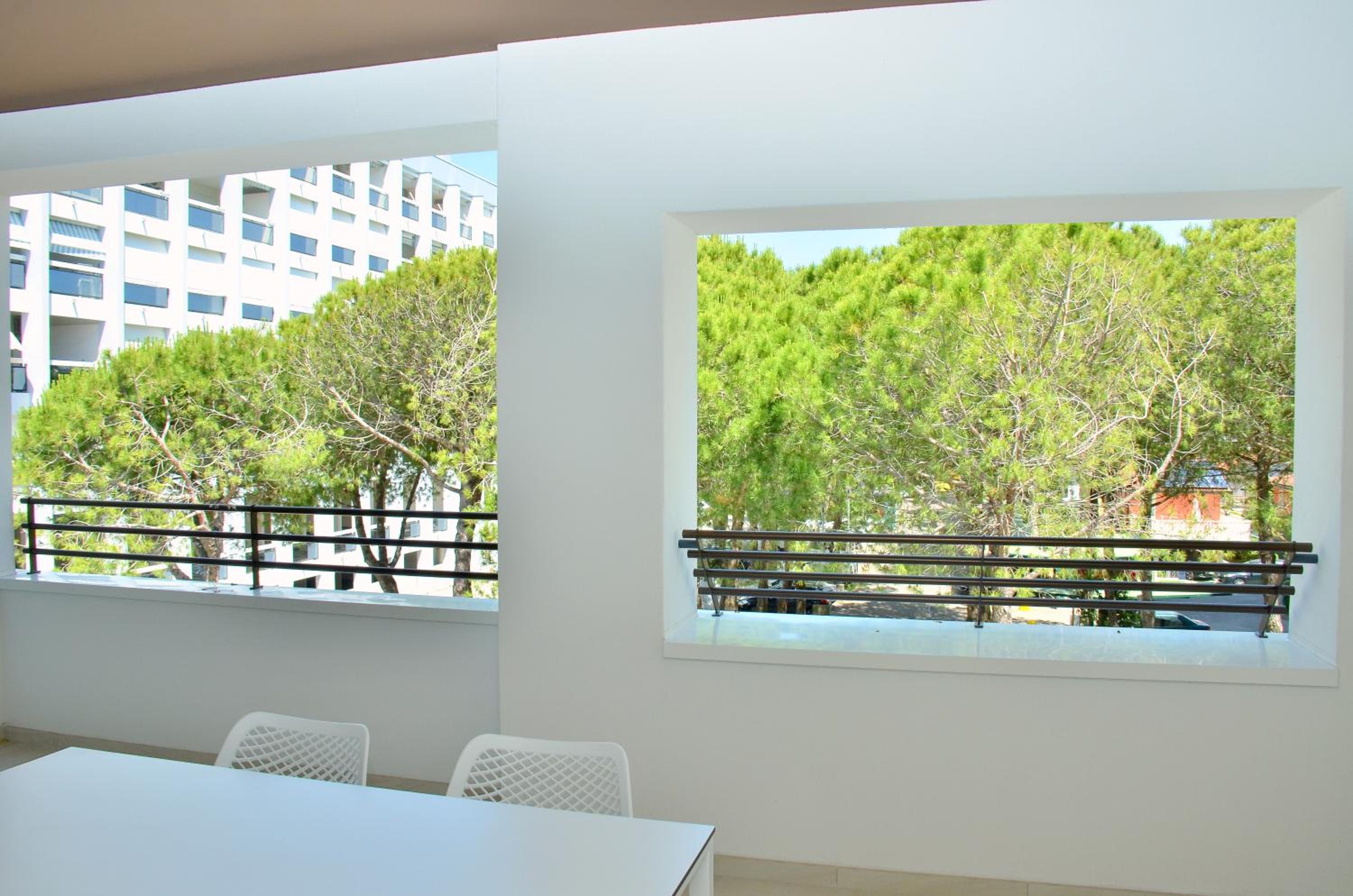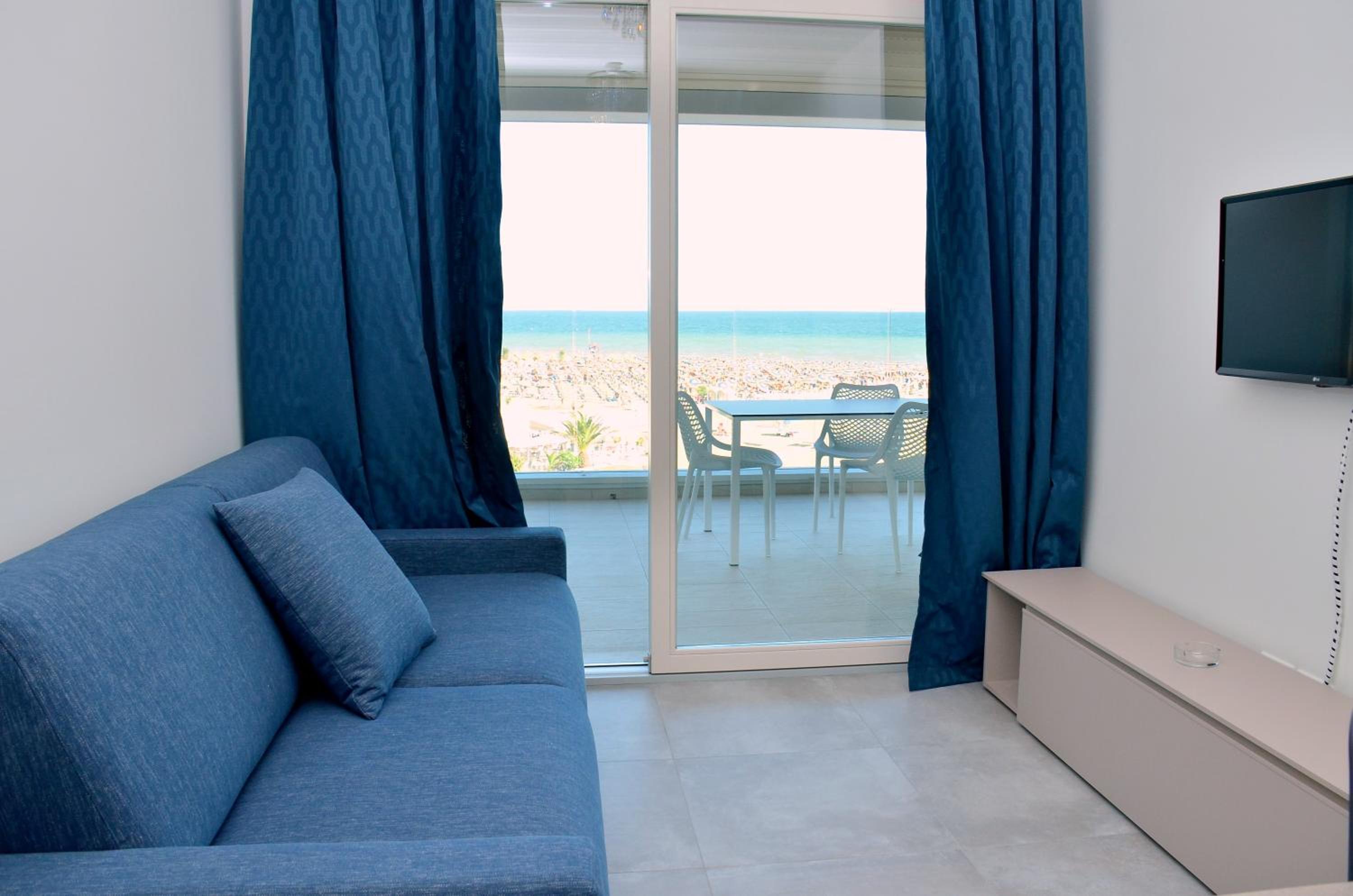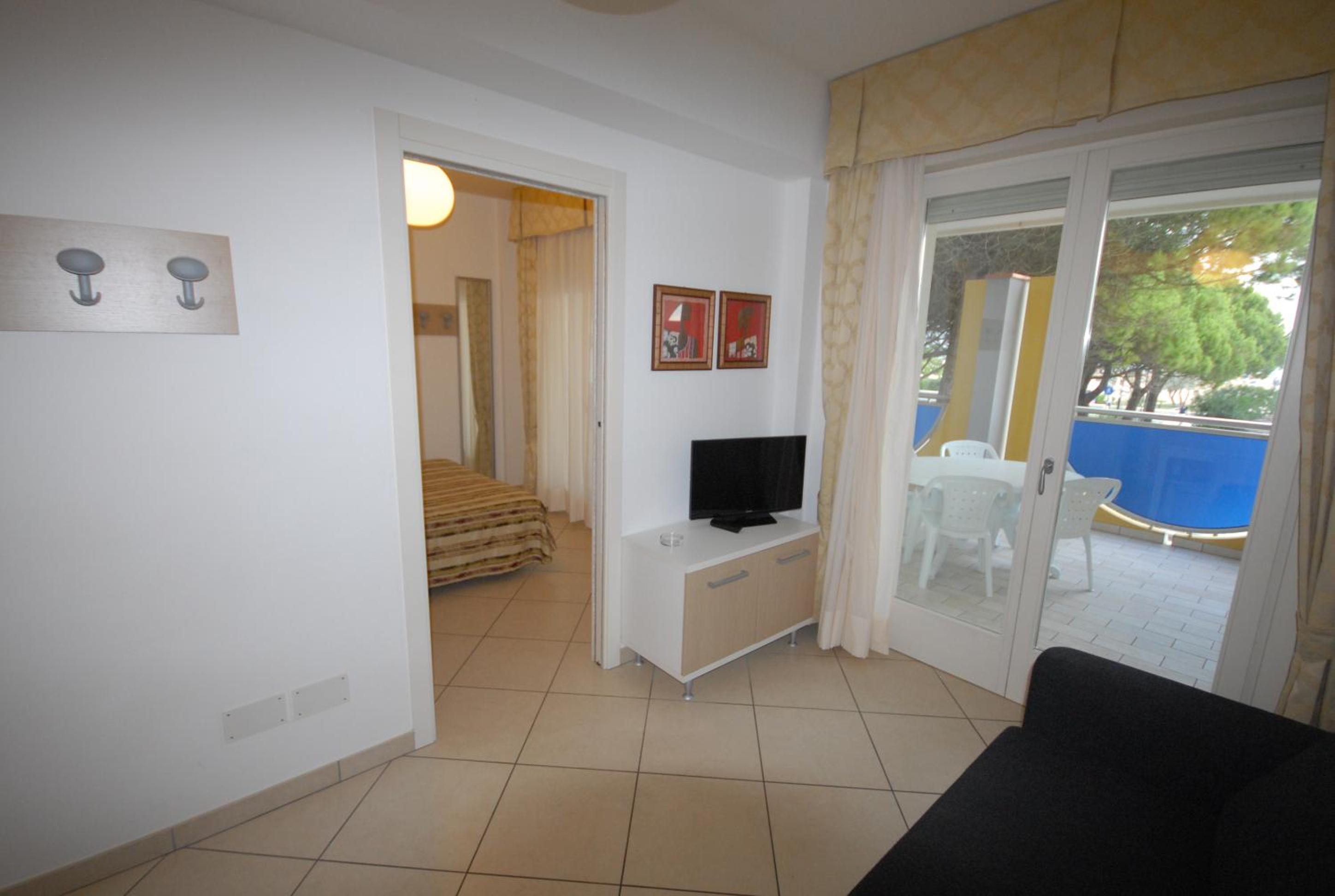 Il terrazzo dell'appartamento, il fatto che la struttura fosse fronte spiaggia e a pochi passi dalla strada principale di Bibione. Il design della