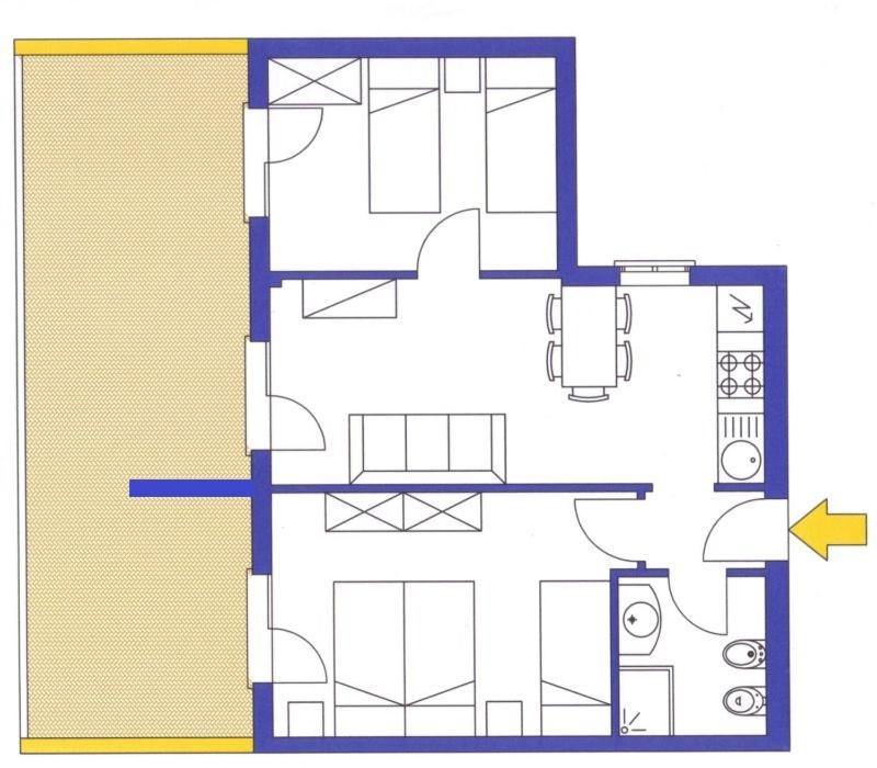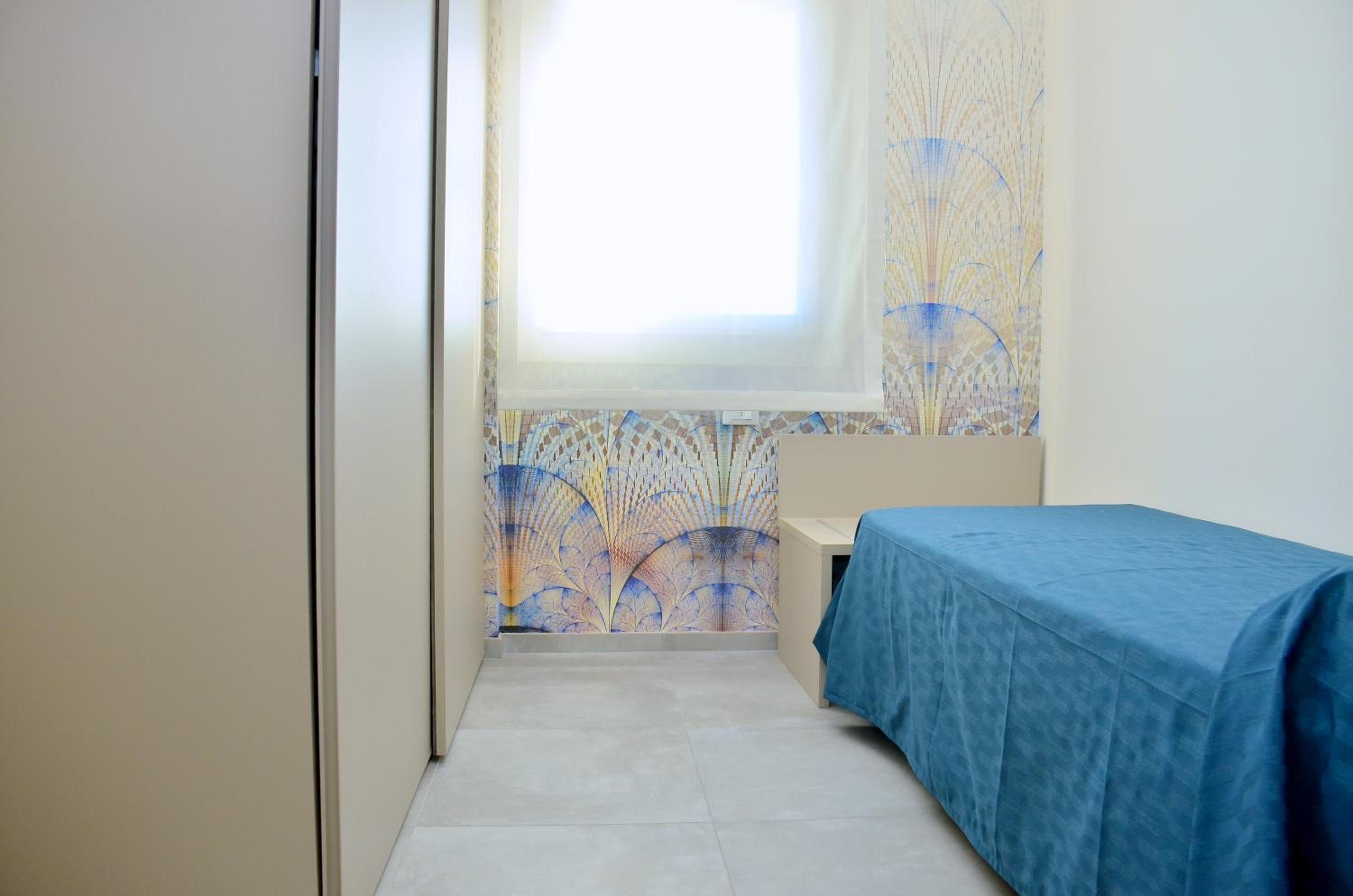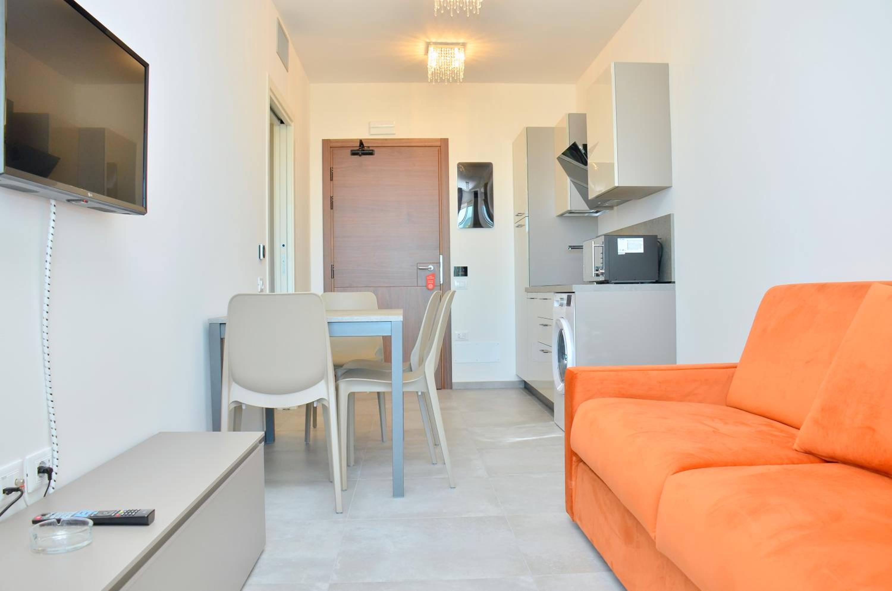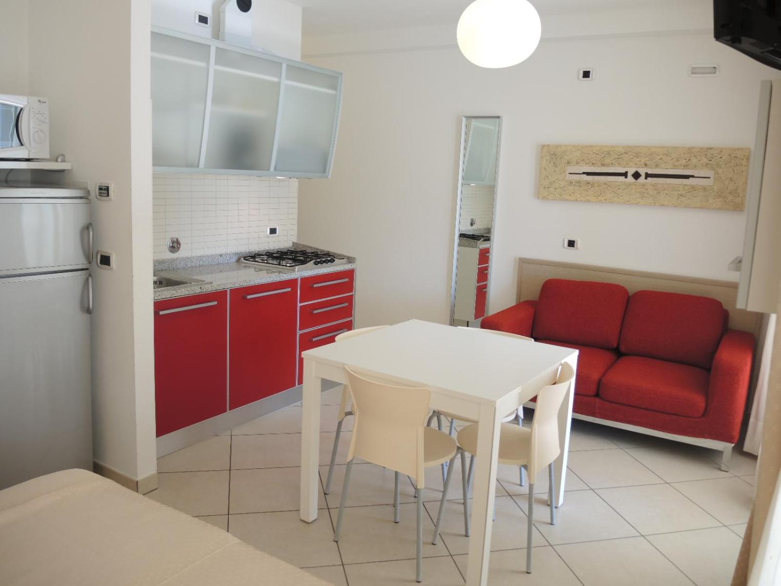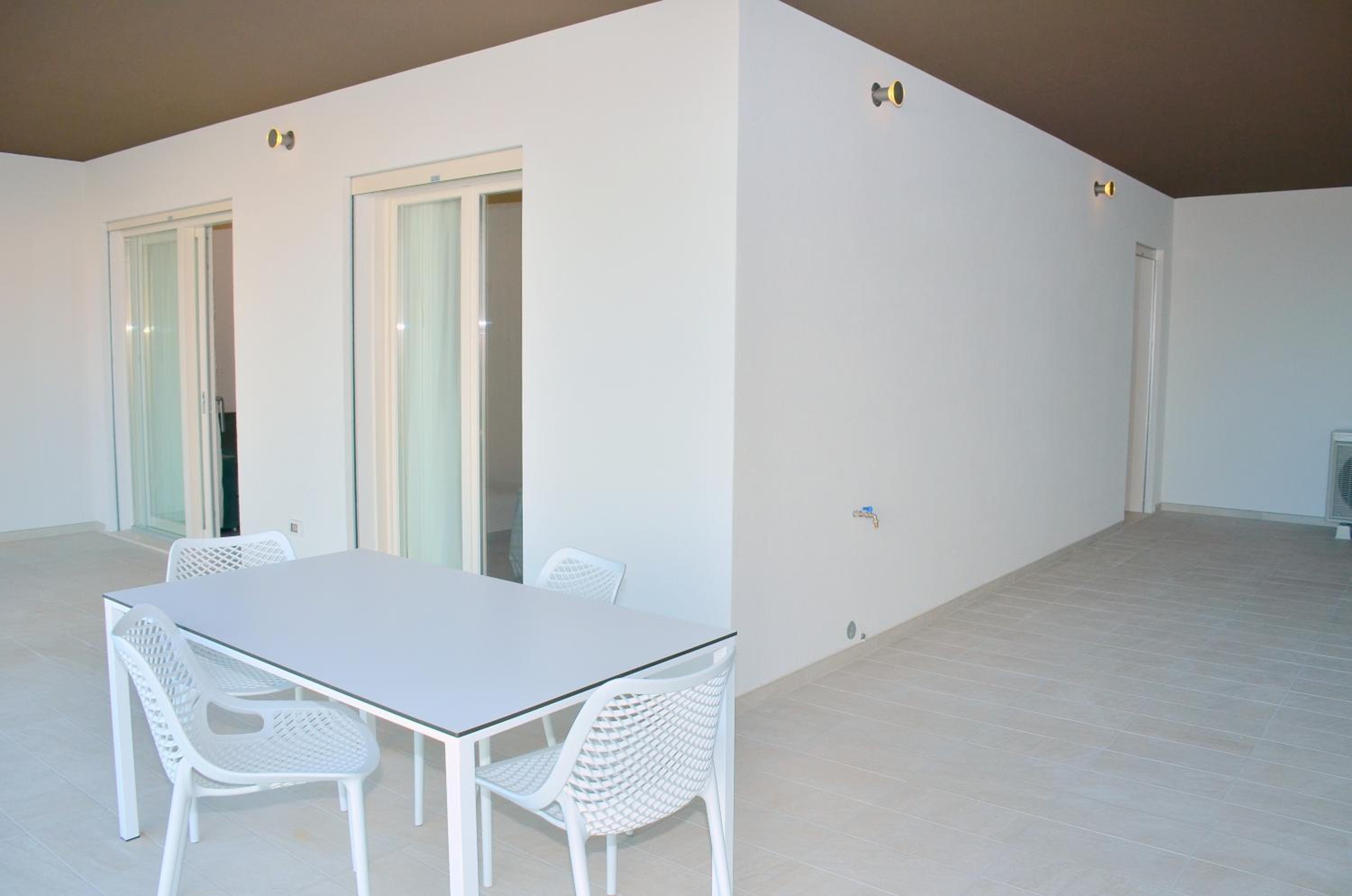 Il terrazzo dell'appartamento, il fatto che la struttura fosse fronte spiaggia e a pochi passi dalla strada principale di Bibione. Il design della