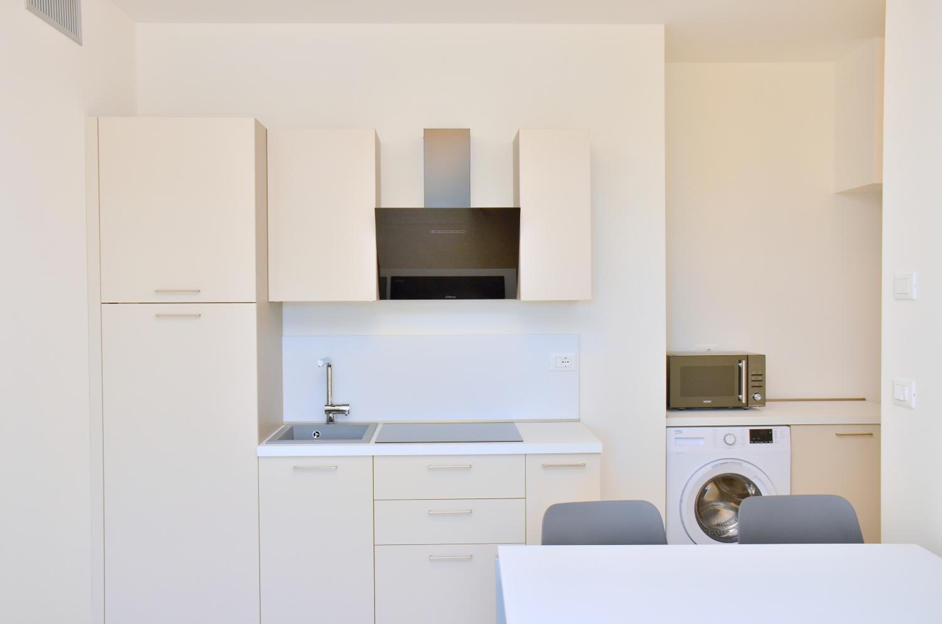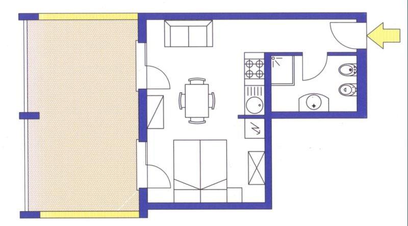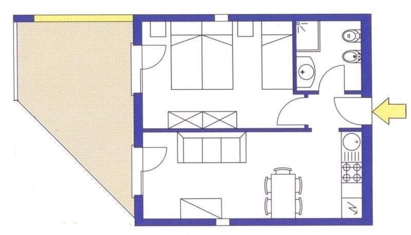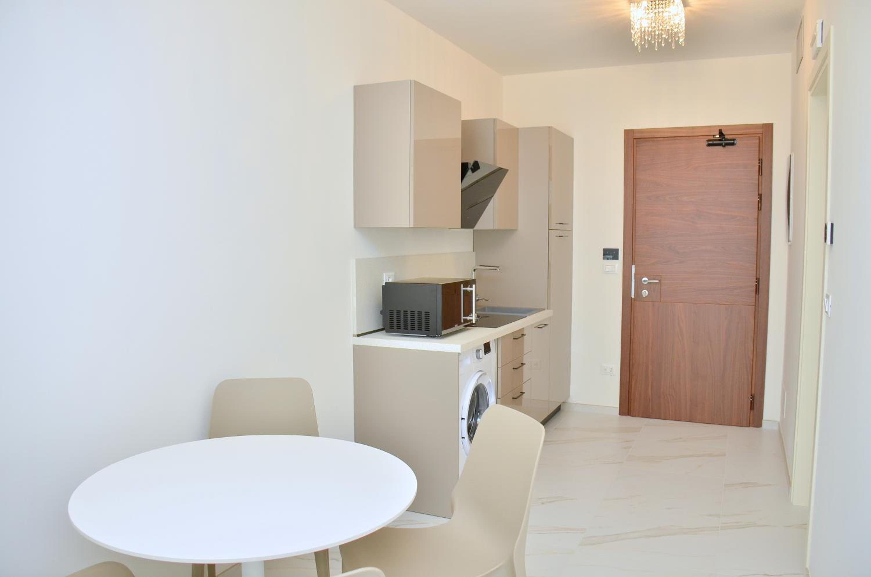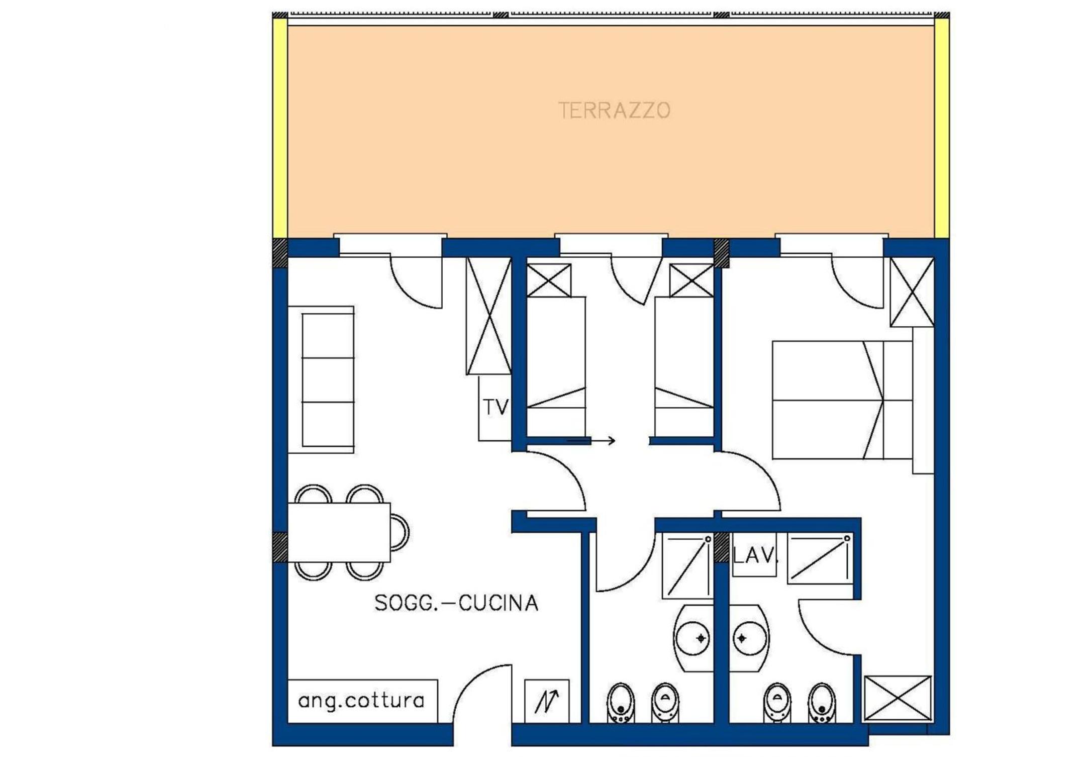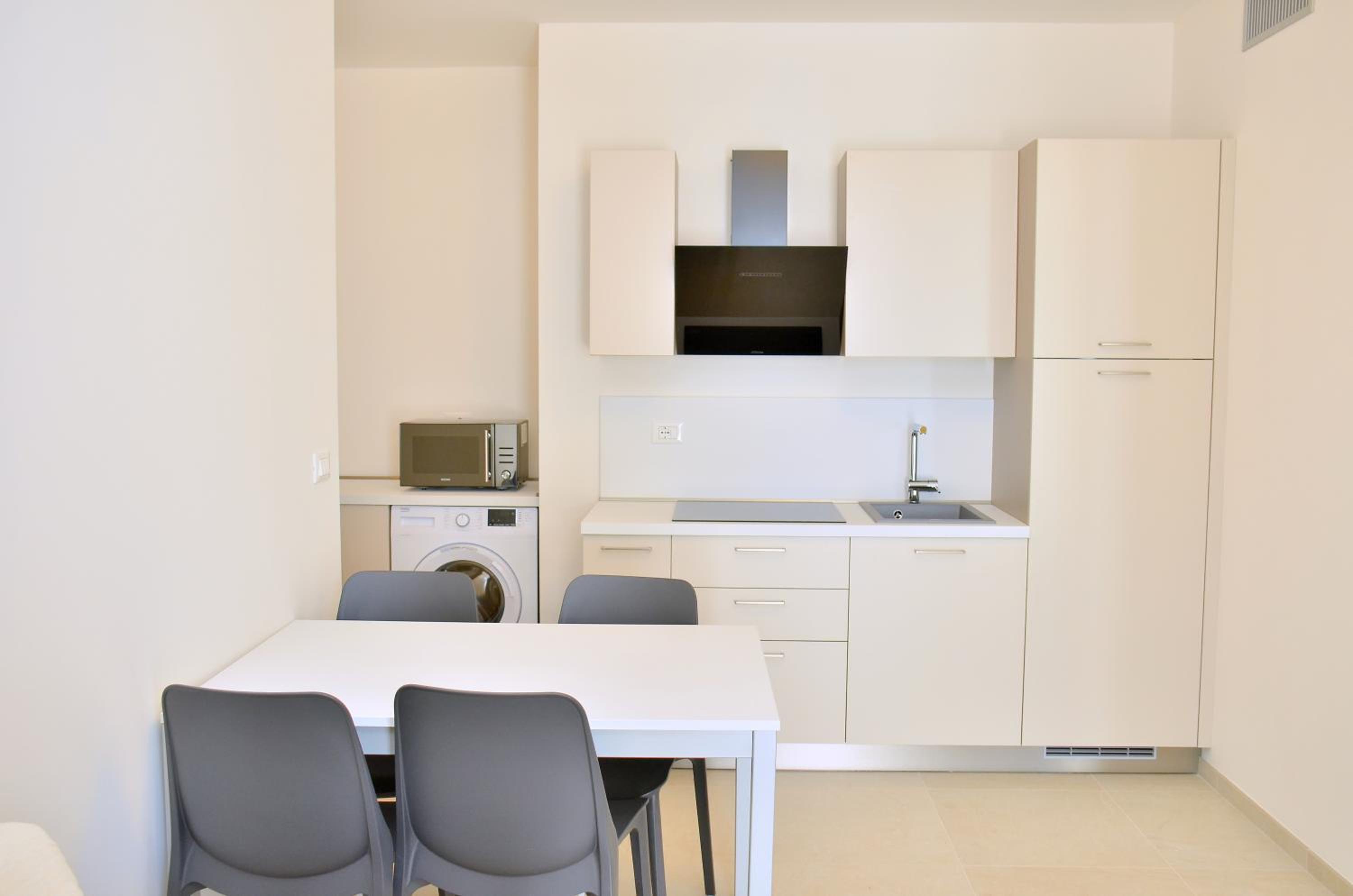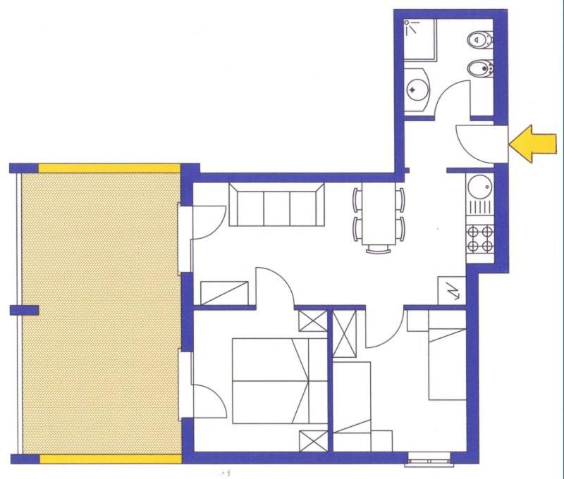 Il terrazzo dell'appartamento, il fatto che la struttura fosse fronte spiaggia e a pochi passi dalla strada principale di Bibione. Il design della