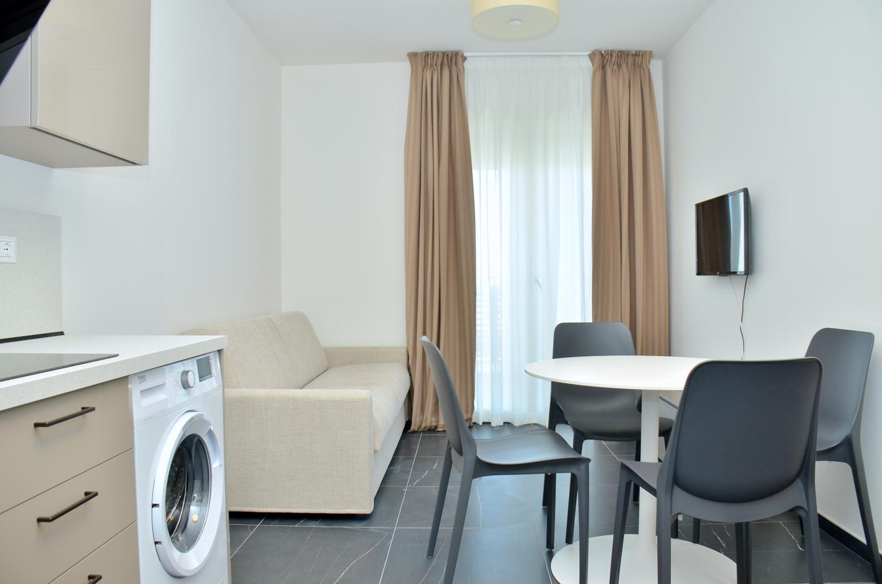 Indulge in our spa, take a refreshing dip in the outdoor pool, or unwind in the garden while your kids have a blast at the playground. Each apartment is equipped with modern conveniences like free WiFi, TV, and air conditioning.