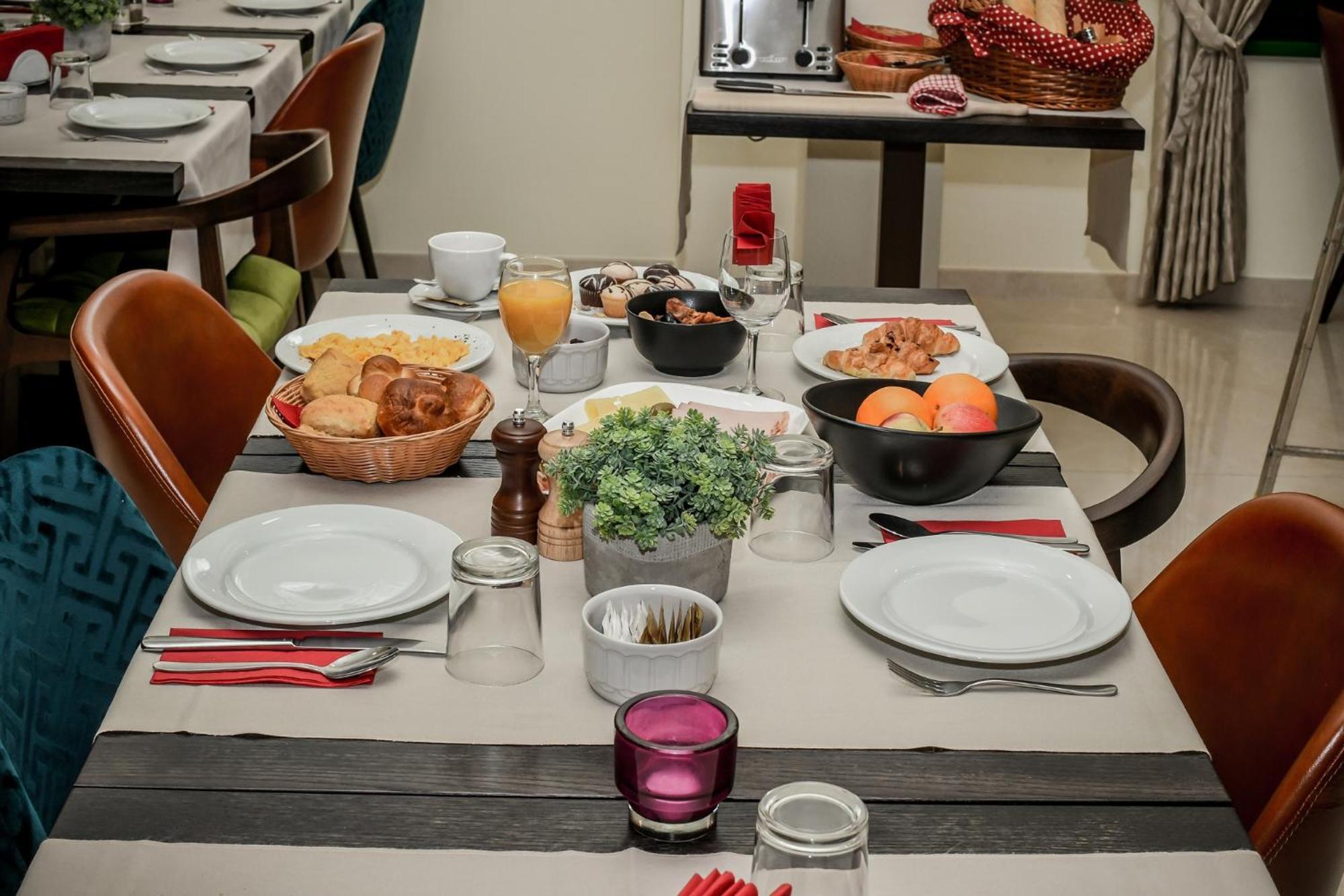 Guests can enjoy a daily buffet breakfast, 24-hour front desk service, shared lounge area, and luggage storage during their stay at Hotel PARK 45.