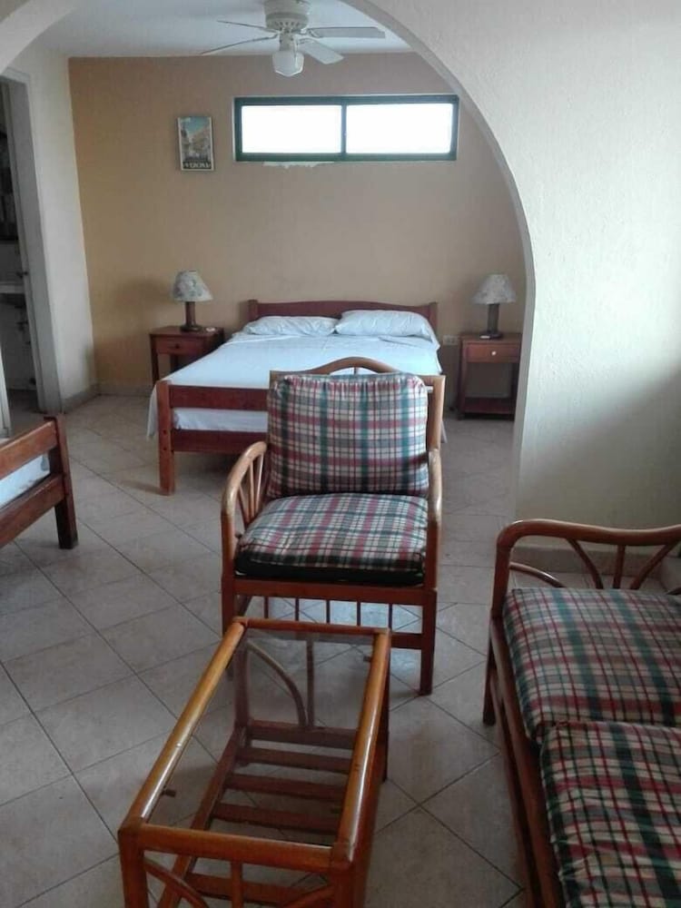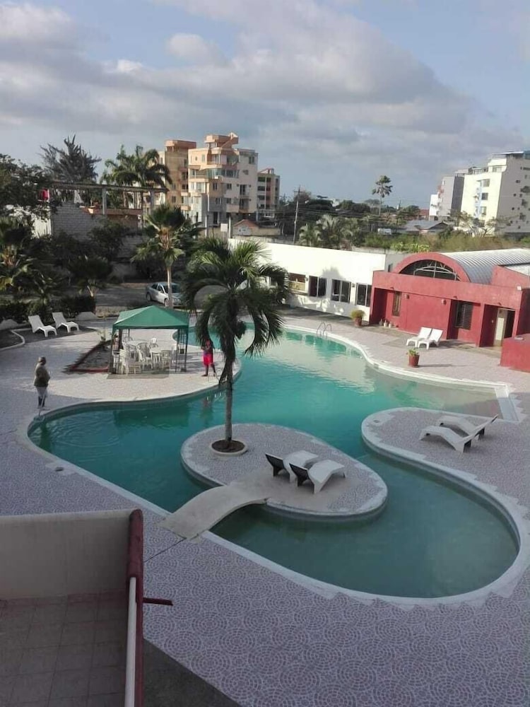 The workers were nice and helpful. They greeeted me at the door and helped me with my bags. Although they couldn't find my reservation througj exoedia, they alkowed me to still check in and provided me with a room, of which I did not stay in. First, the property is in another little town that's not near the Atacames beach or center. When he walked me to the room, I noticed the pool was very dirty and not available to swim in. The room was very big with 2 beds. This room was meant for a family, it wasn't a shared hostel as I thought, which would've been fine, but the shower in the bathroom was disgusting. There was hair all over the floor and it looked like it had been there for a while. So after seeing that, I decided to leave and find another place.