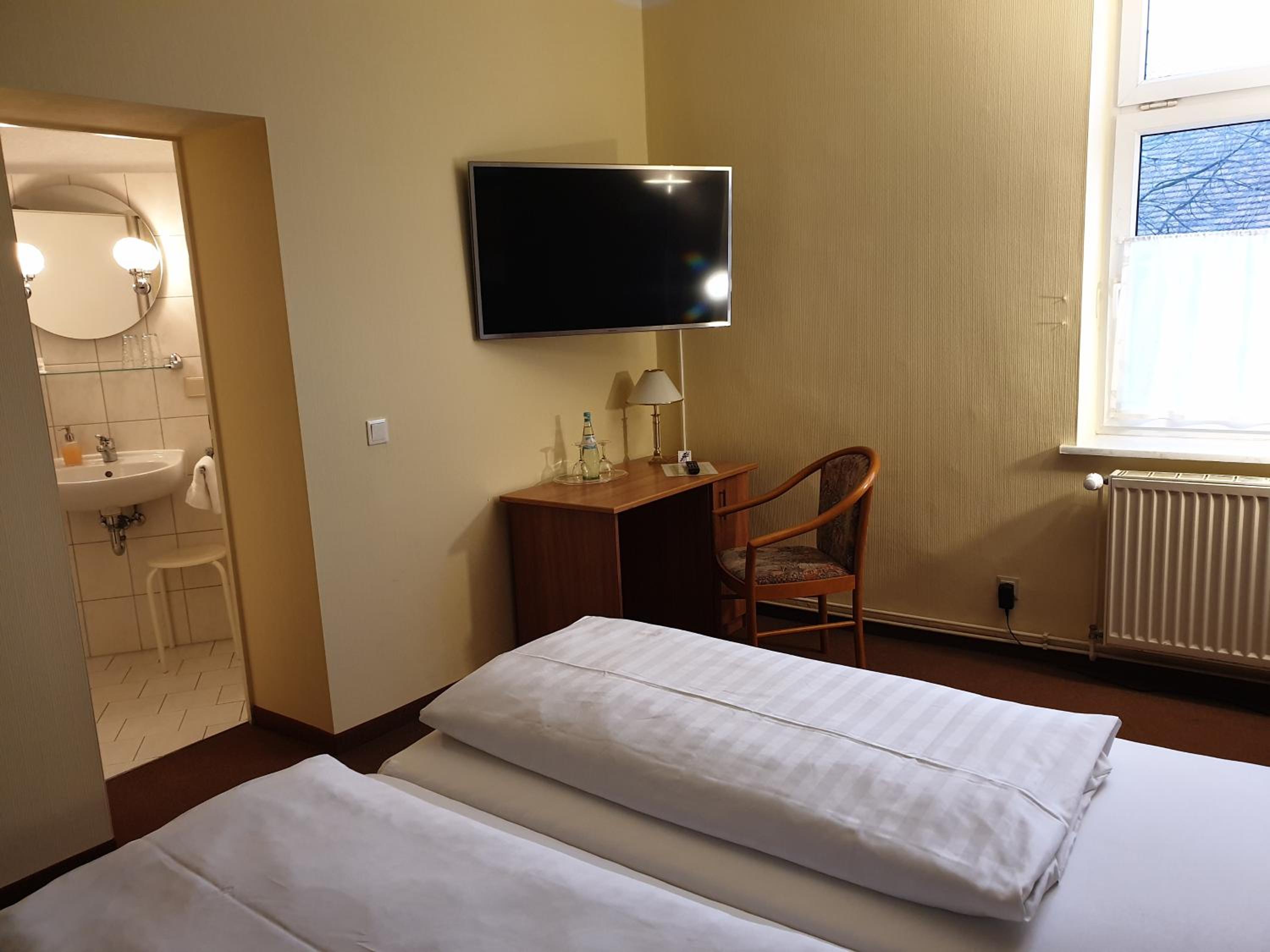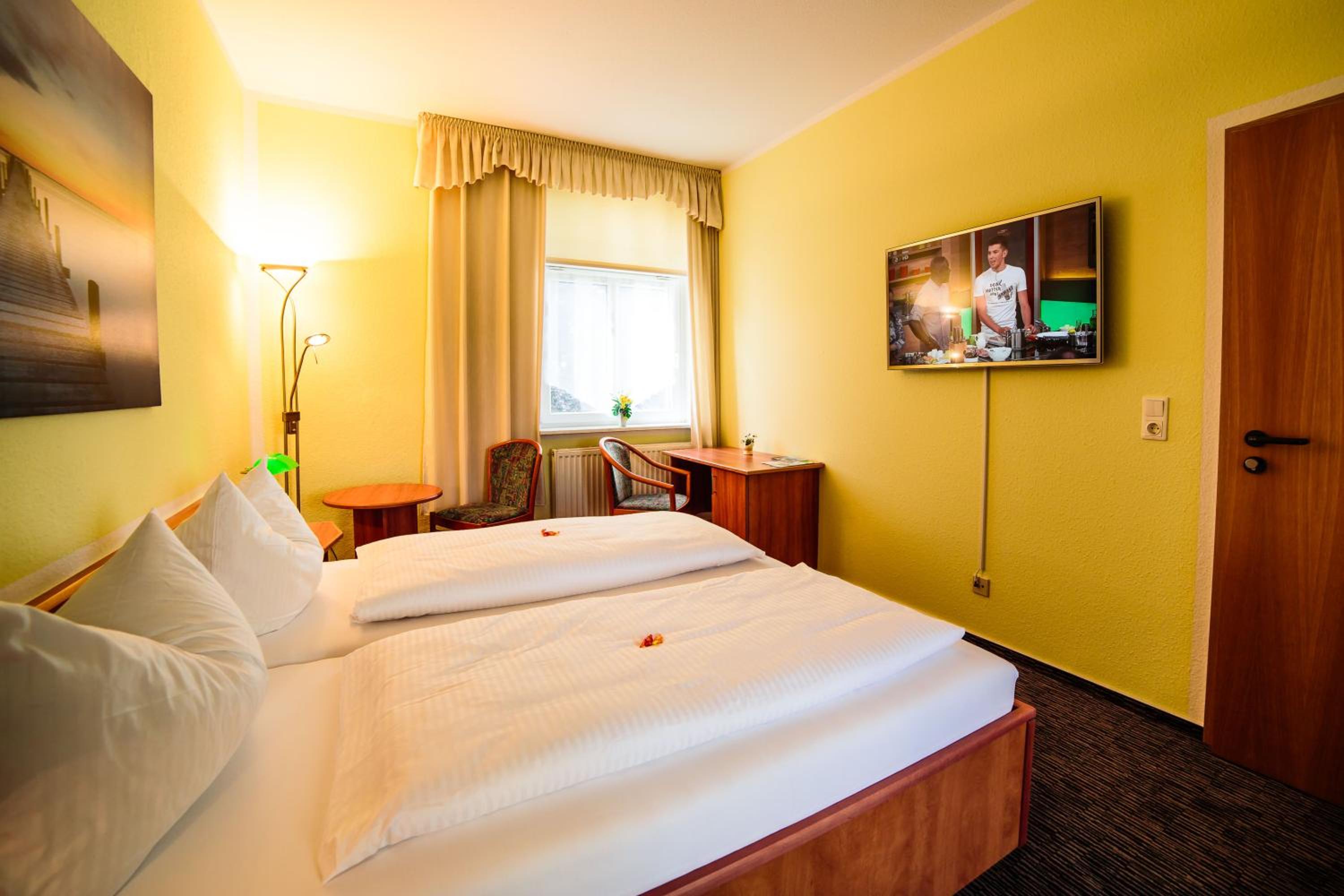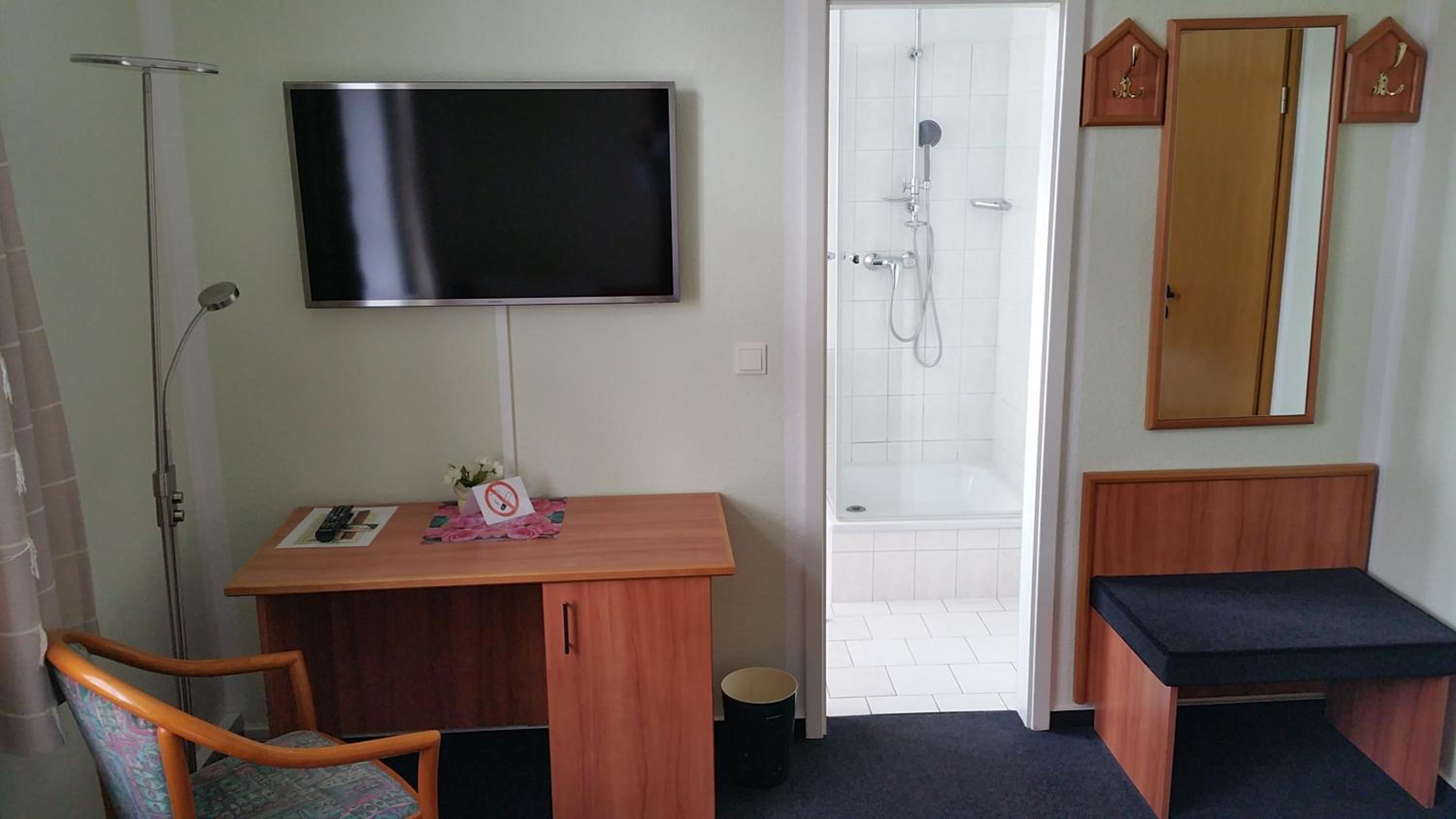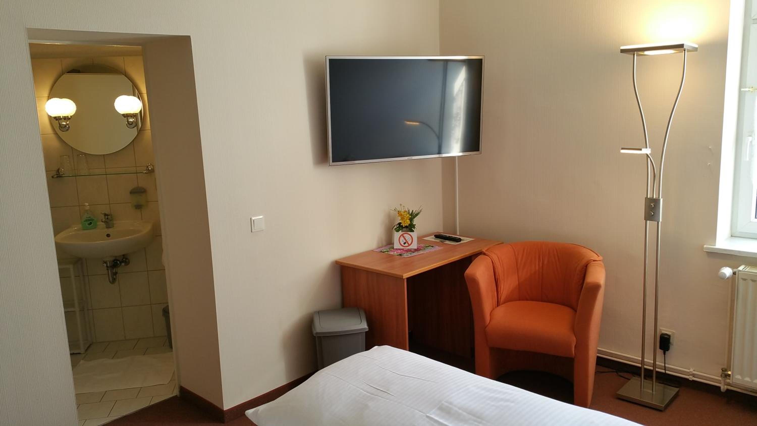 Sehr freundlicher Empfang, reichhaltiges schmackhaftes Frühstücksbuffet, aufmerksames Personal, gepflegtes Hotel/Restaurant mit schönem Biergarten am Stadtpark. Fahrradgarage vorhanden. Wir waren auf Fahrradtour im Seengebiet und hatten einen sehr angenehmen Aufenthalt.