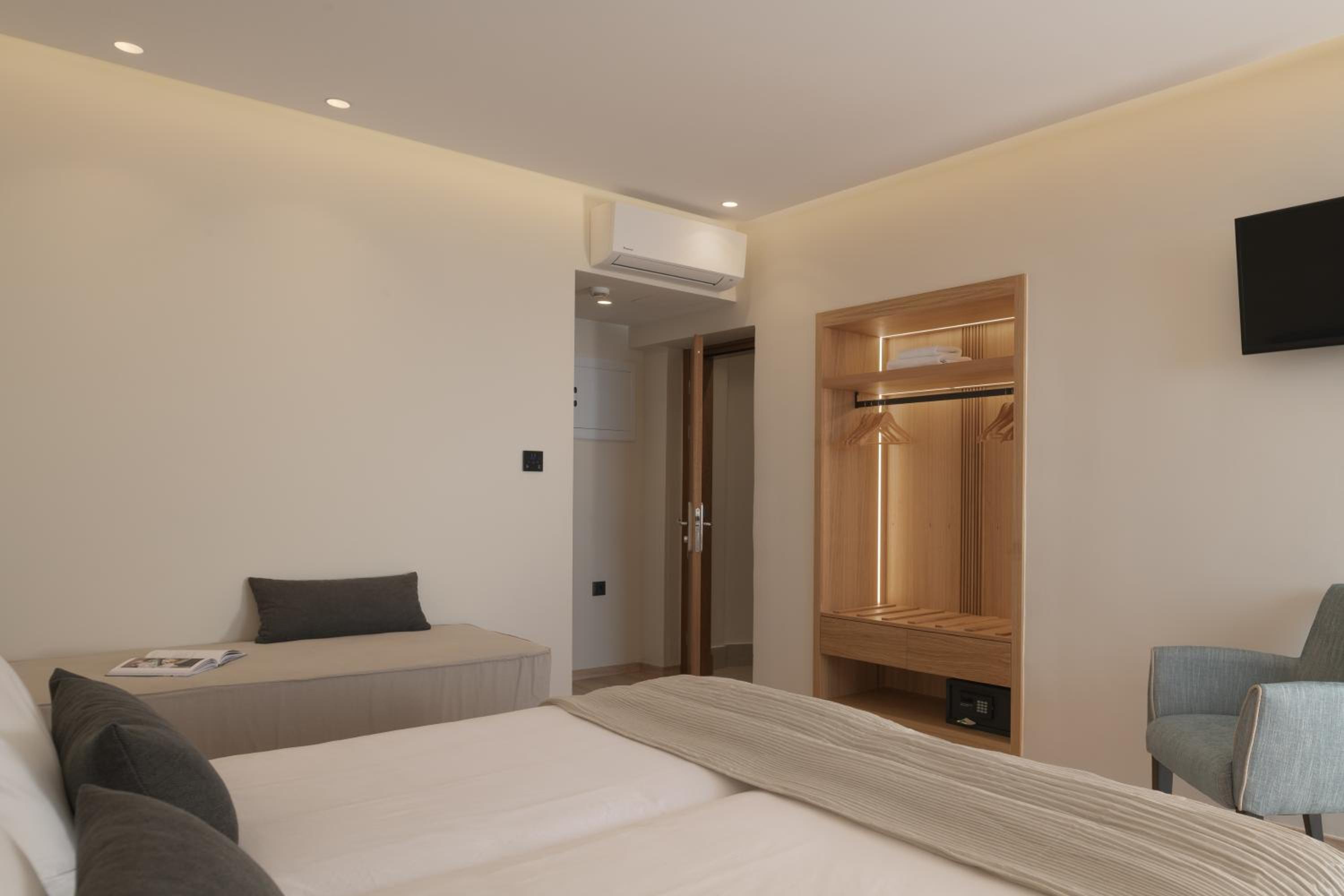 besonders ist die Ausstattung der Zimmer mit digitaler Technik, Beleuchtung und Klimaanlage können über ein Display neben dem Bett gesteuert werden; viele gute durchdachte Details wie ausziehbare Wäscheleine im Bad oder Lärm dämpfender Teppich auf den Fluren