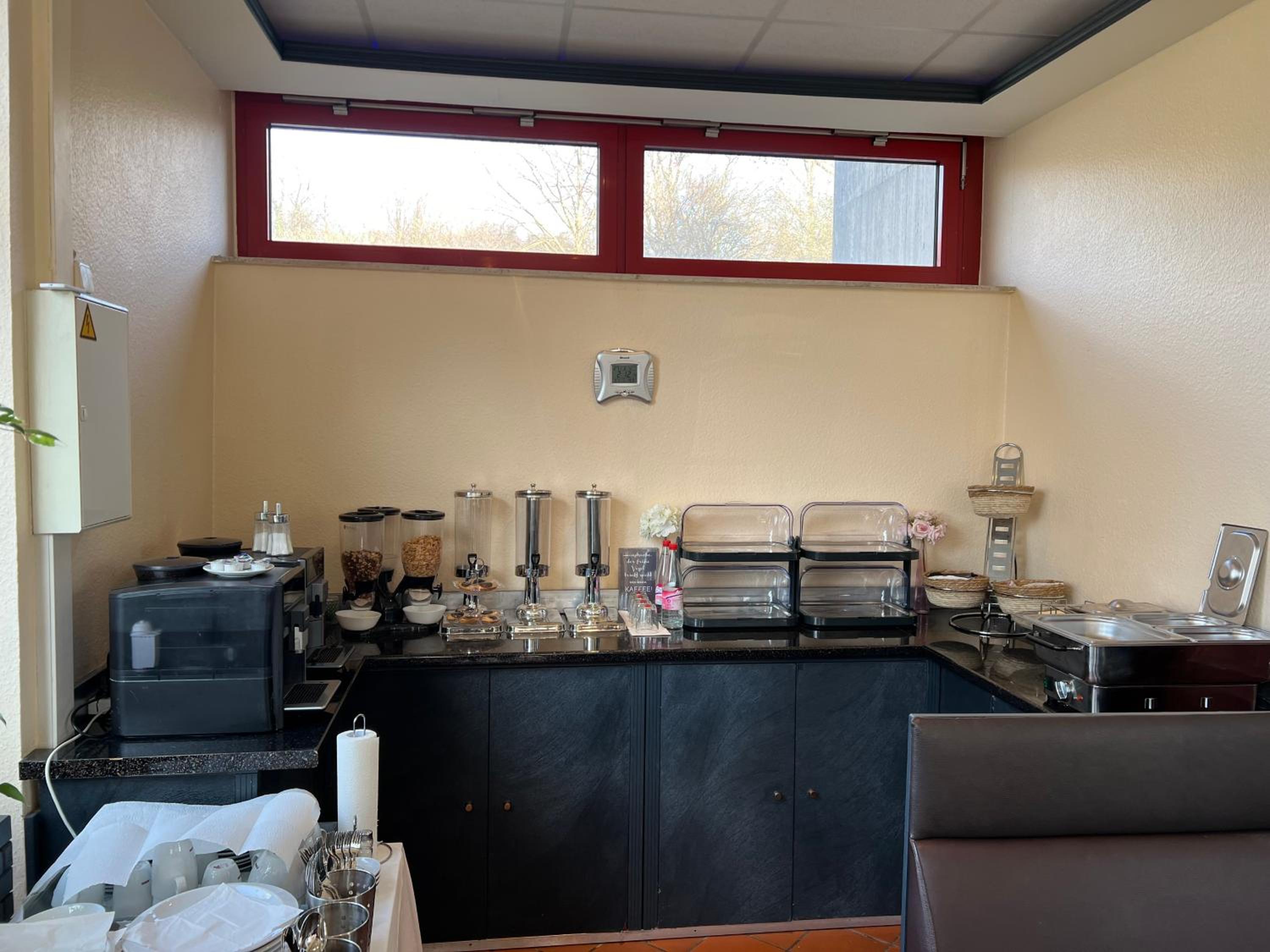 Terrible value for money. The hotel inflated prices due to demand being from the exhibition in Frankfurt but £150 per night for this very low budget hotel with no bar or restaurant as detailed on the website and building works. At 7am every day we had men outside the window on the scaffolding.