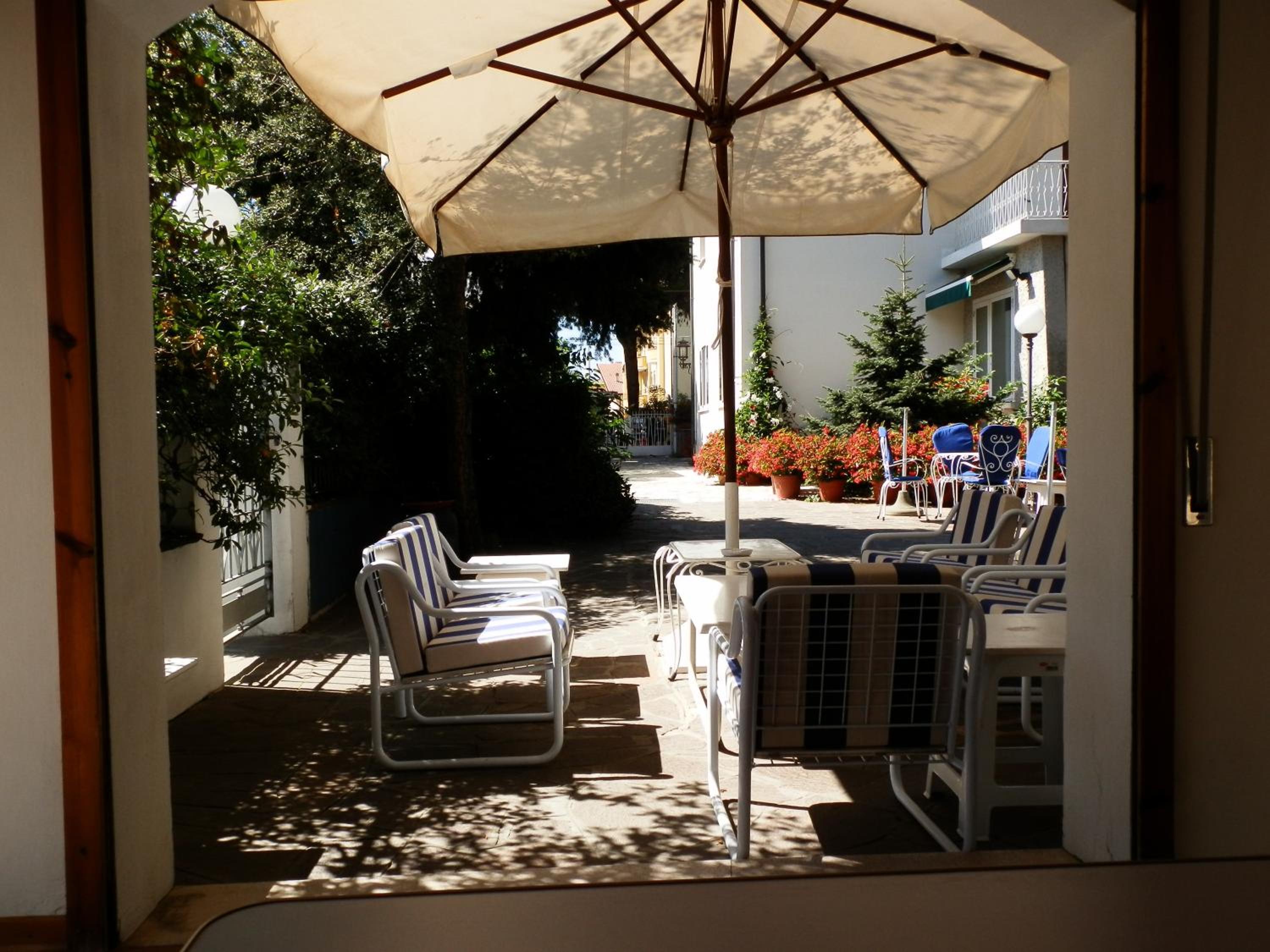 Guests can unwind in the outdoor pool surrounded by a beautiful garden and enjoy the sun terrace with comfortable furnishings. The rooms are equipped with modern comforts like air conditioning, satellite TV, and private balconies.