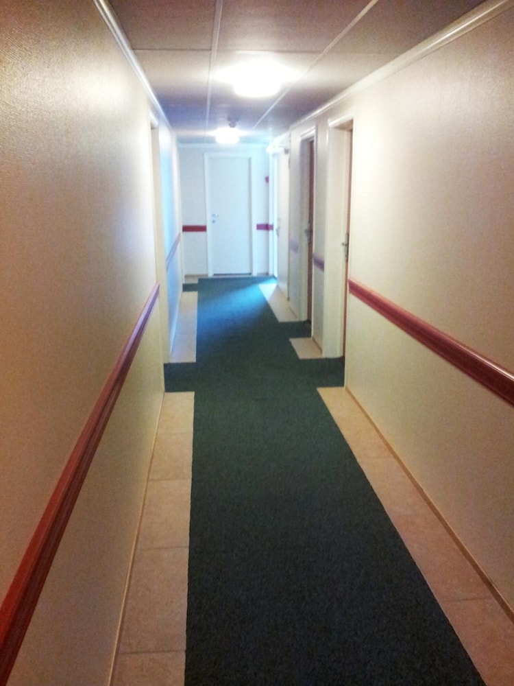 Vi fikk 2 roms hotellrom, med tv på begge ( med casting ) , sofa og en liten altan så det var en hyggelig overraskelse. Hyggelig betjening. Bensinstasjon, lekeplass og kafe i samme bygg. Det var noe vått kliss på golvet ved sofaen når vi kom, men ellers var alt helt fint. Passet våre behov helt fint.