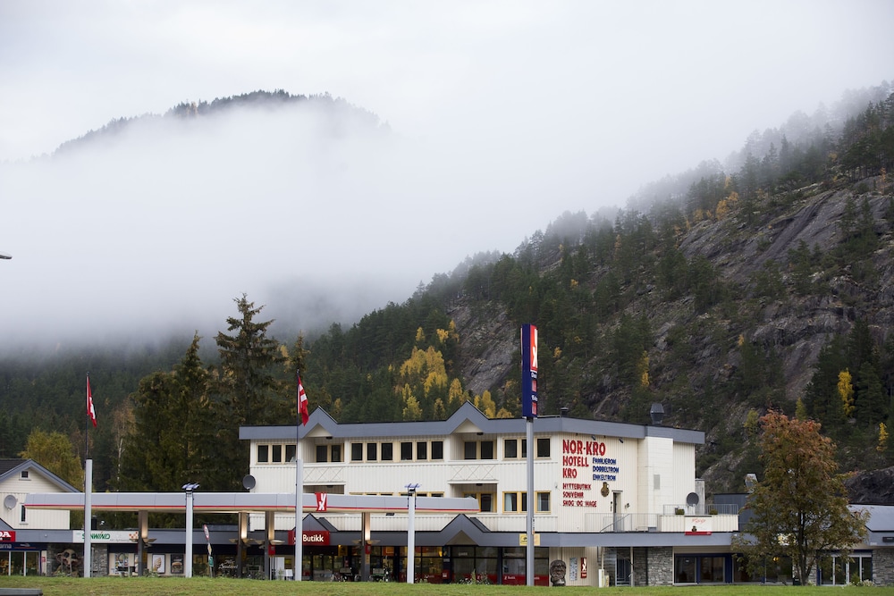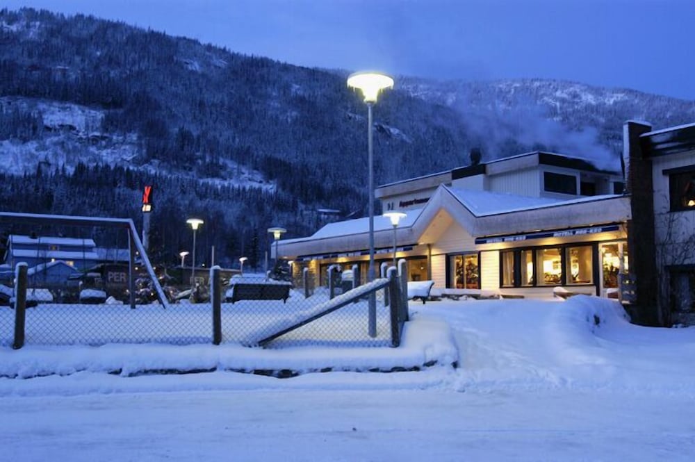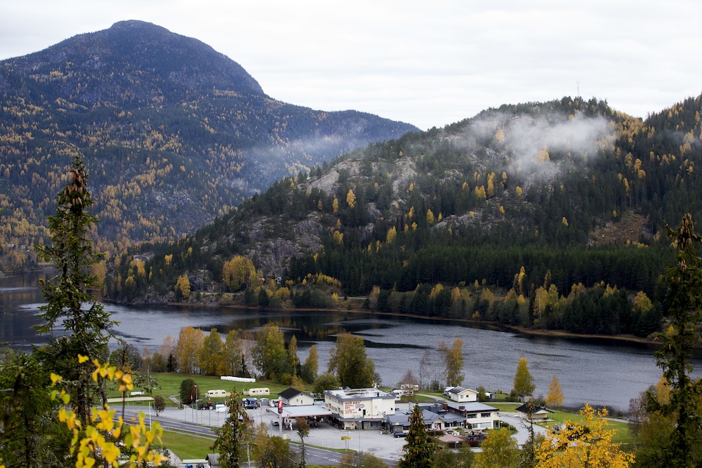 Hotell beligenhet, ingen fasiliteter i nærheten (20km til Flå), bortsett fra bensin og en cafe (bare åpent fra kl.10 for frokost - veldig seint.