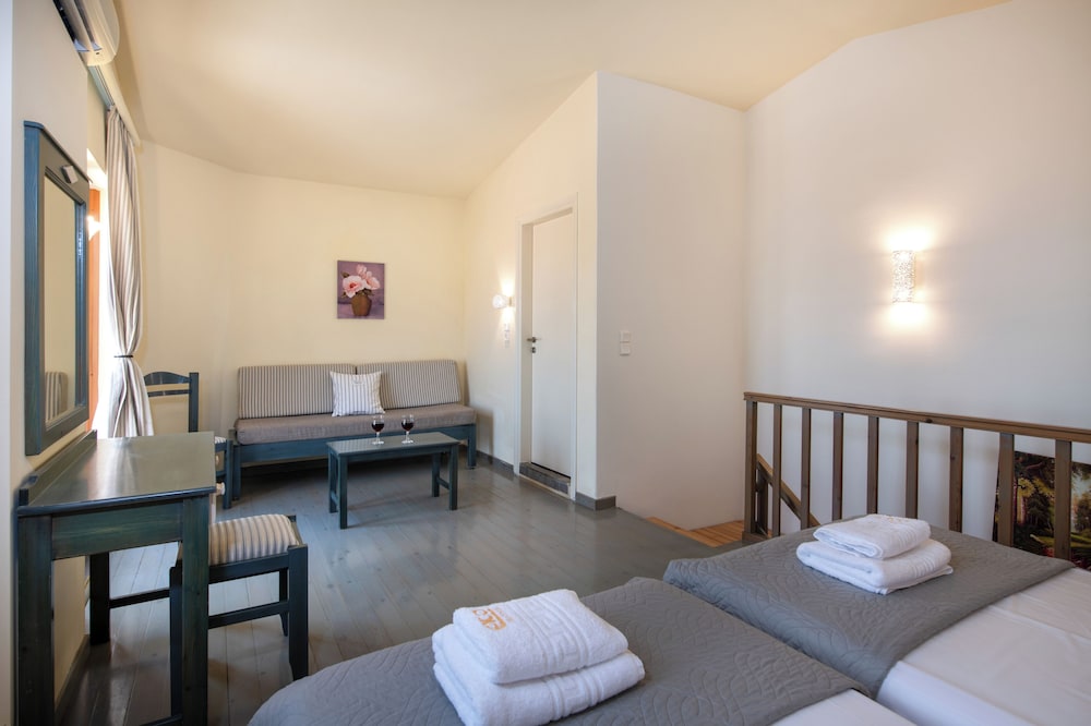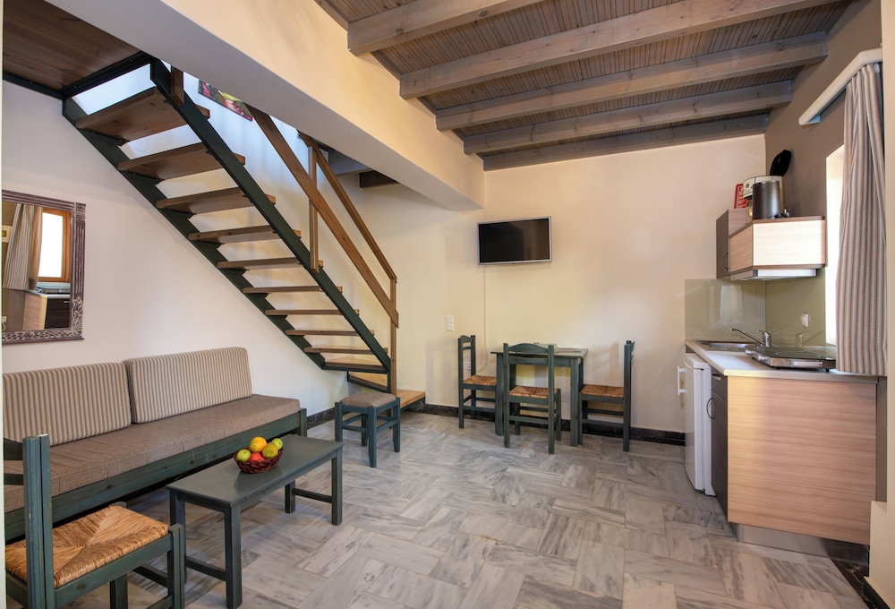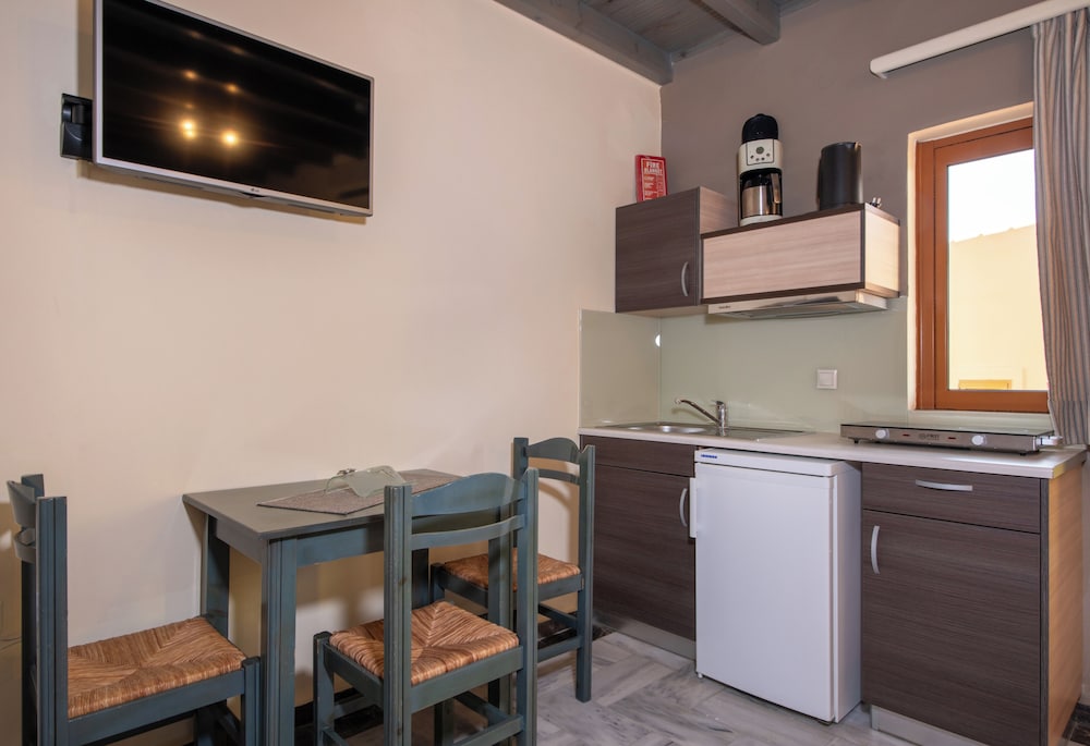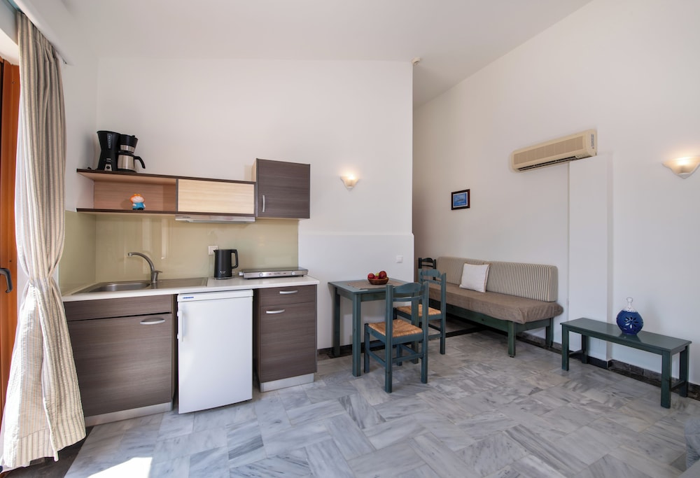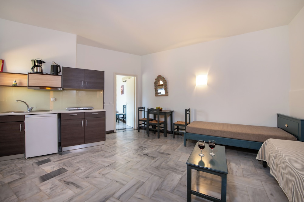 Lovely clean, spacious studios equipped with all you need for a self catering stay. The owner, his wife and son were most welcoming and friendly and always had a cheerful greeting for us. Very convenient for both the beach and the village, both within a few minutes walk. There were a couple of supermarkets close by for breakfast provisions etc and a superb bar just around the corner. Would definitely recommend this property for for a wonderful stay in Georgiopolis.