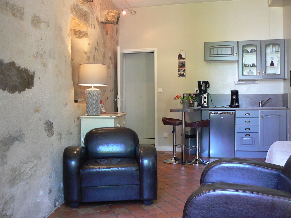 Dans une maison à colombage dans la cité Plantagenet qui au bord de la Sarthe, cet appartement d'une piece avec pierres apparentes est un nid douillé pour une escale au Mans. Je recommande fortement.