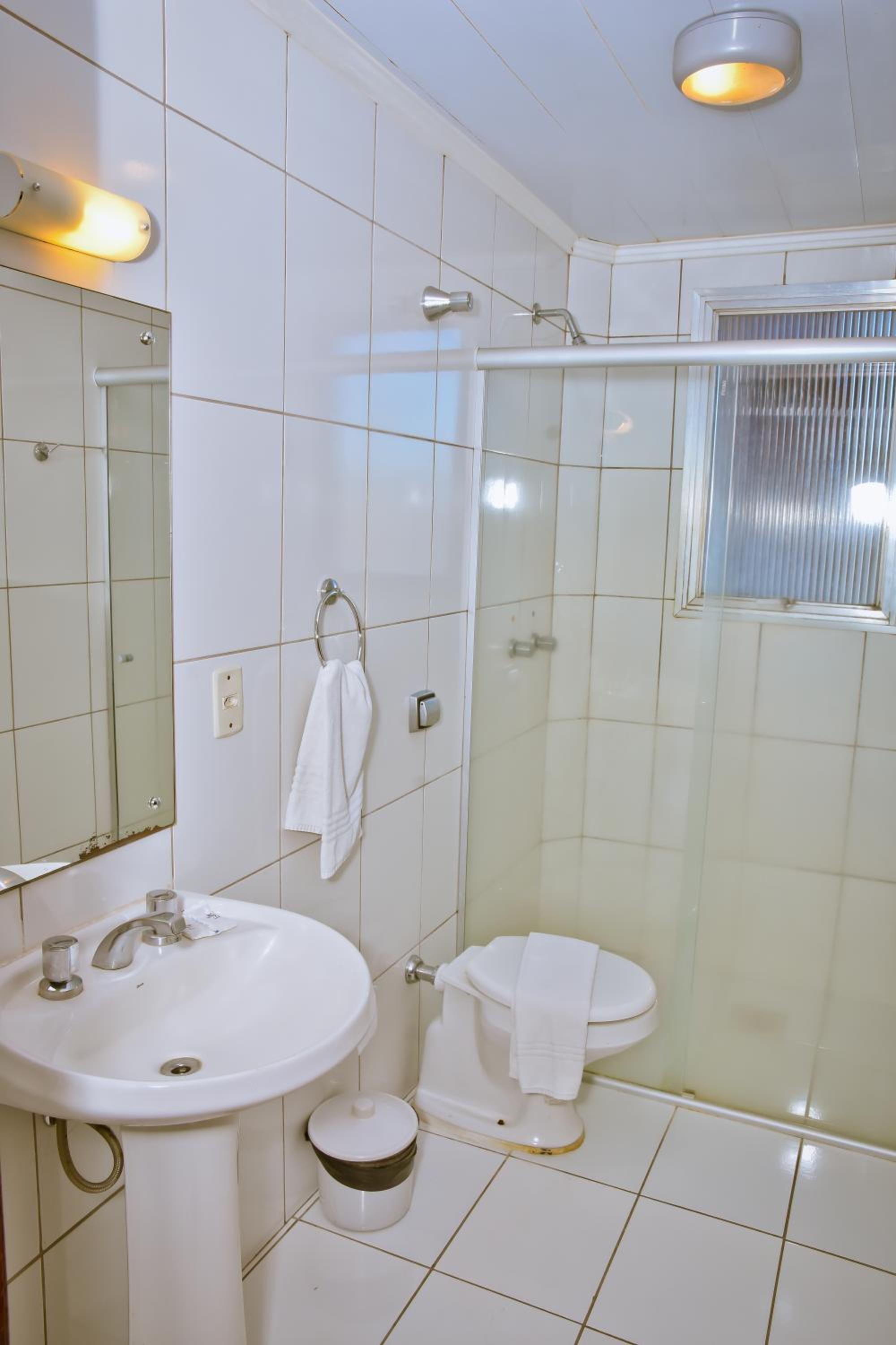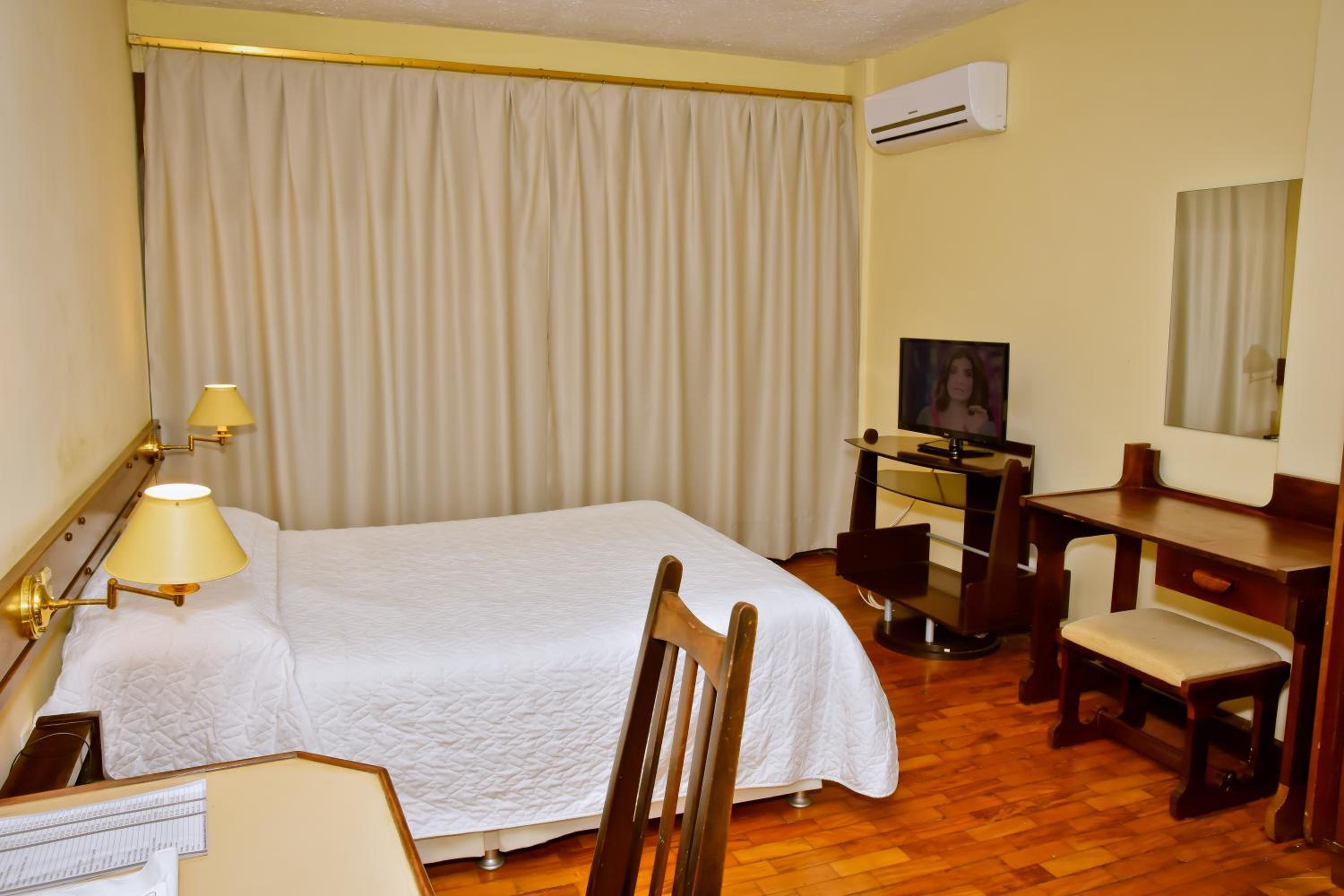 Local sujo e mau cheiroso, banheiro sem limpeza, lençóis de limpeza duvidosa, café da manhã com alimentos velhos e café requentado, corredores escuros e com carpete mau cheiroso, elevador velho, acesso difícil ao hotel por se localizar em frente a um corredor de ônibus, estacionamento distante e cobrado a parte.