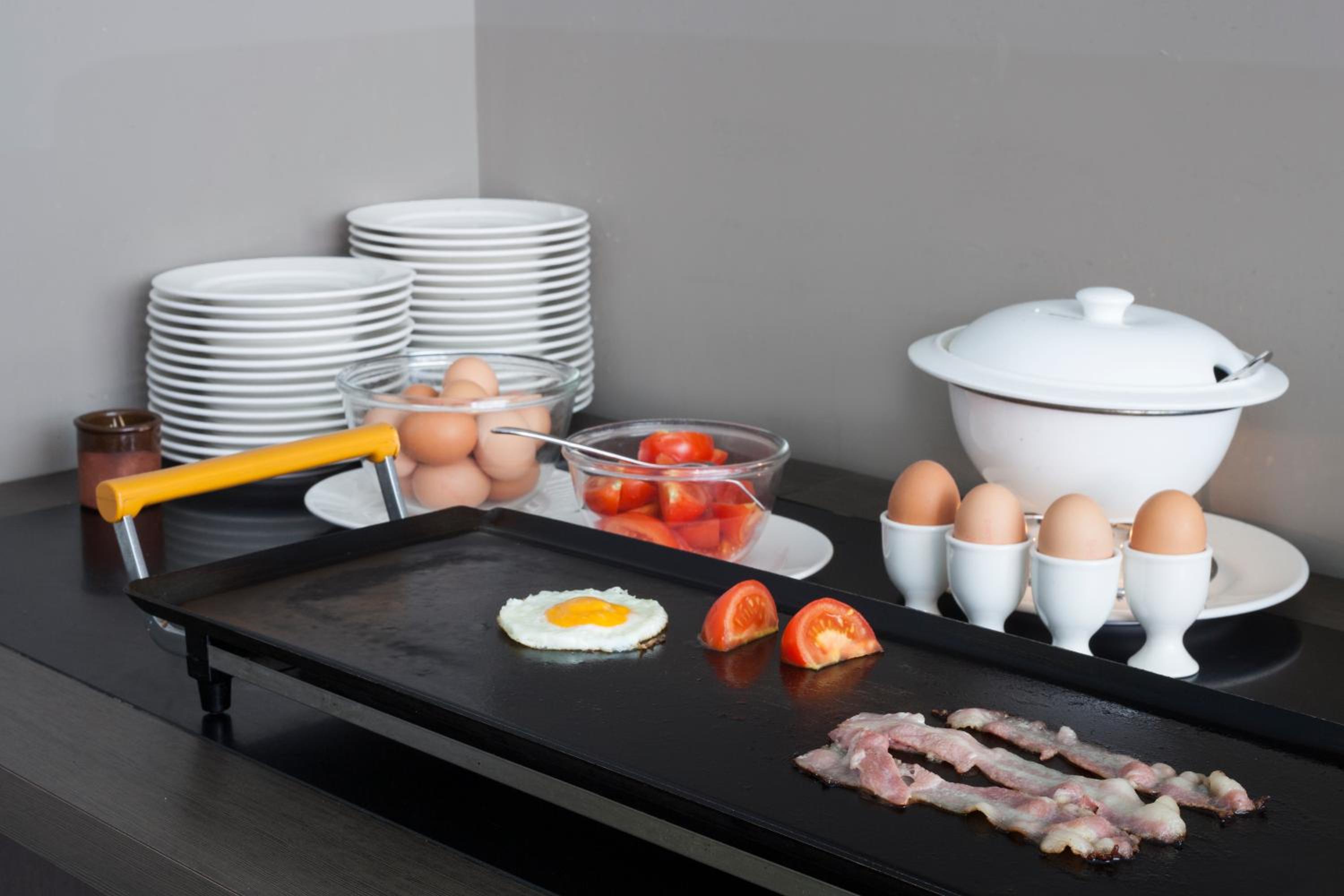 Ikke noe kaffeservering, dårlig kaffe på rommet, fant fin bakeriet like ved som serverte kaffe, men ble ikke anbefalt av hotellet selv.