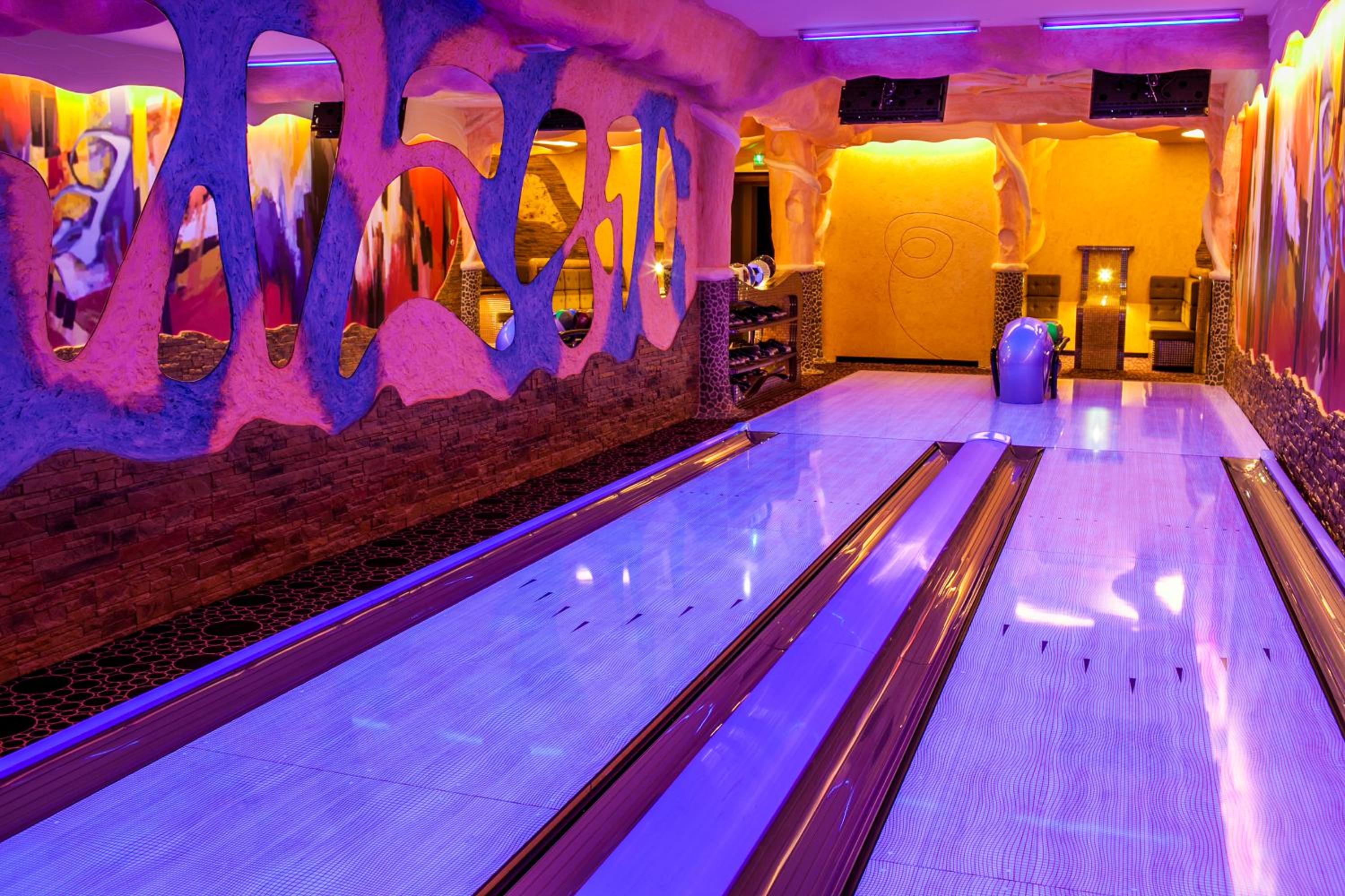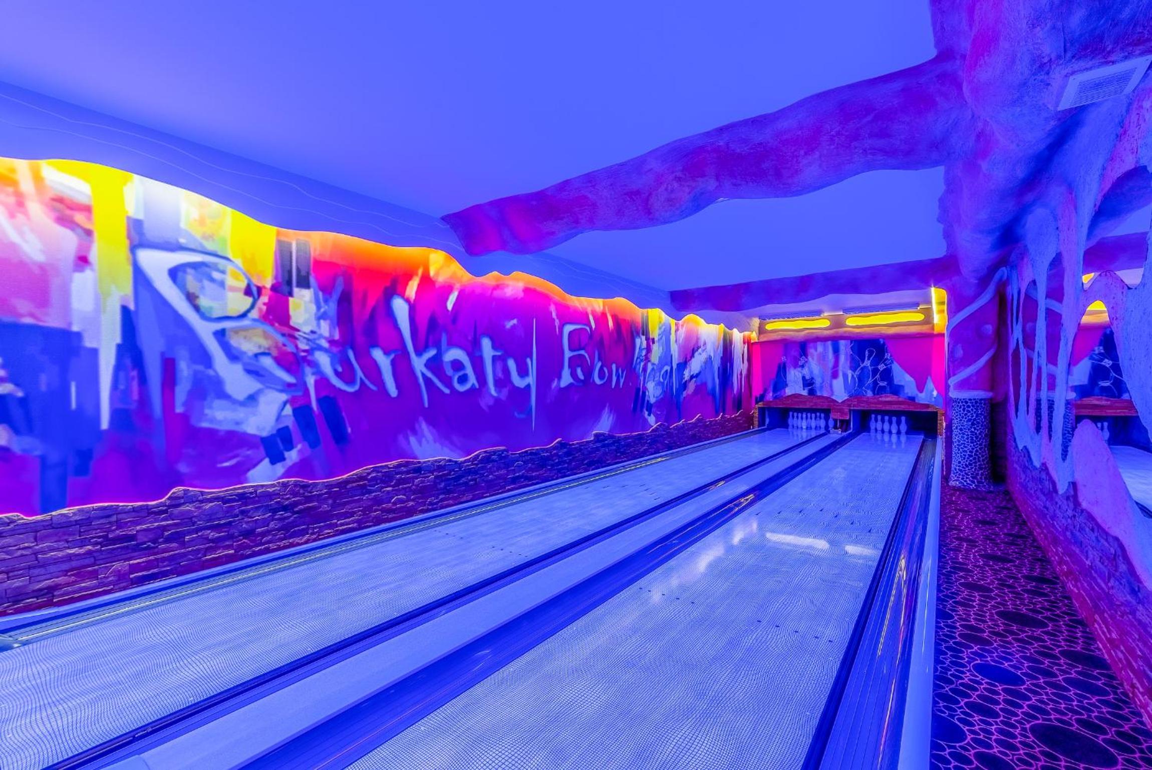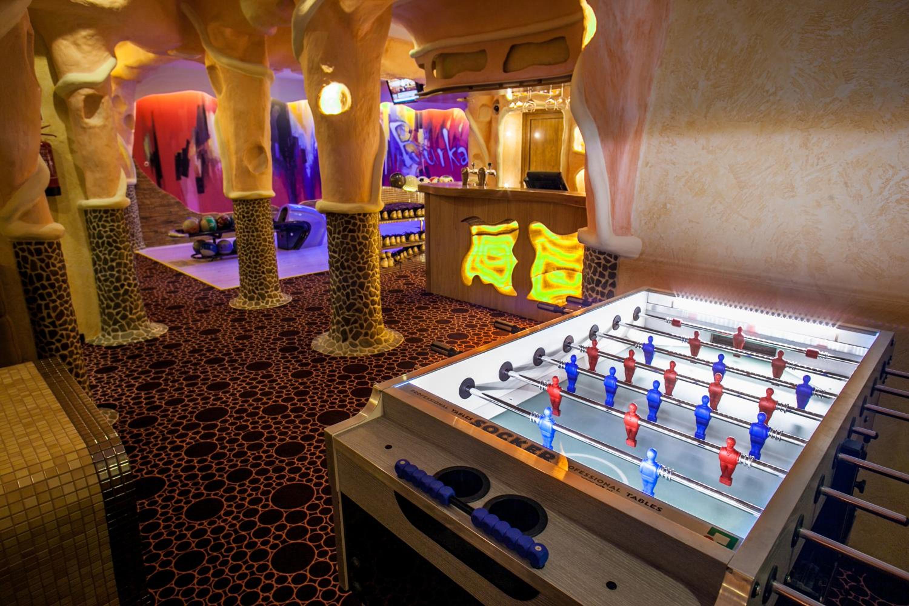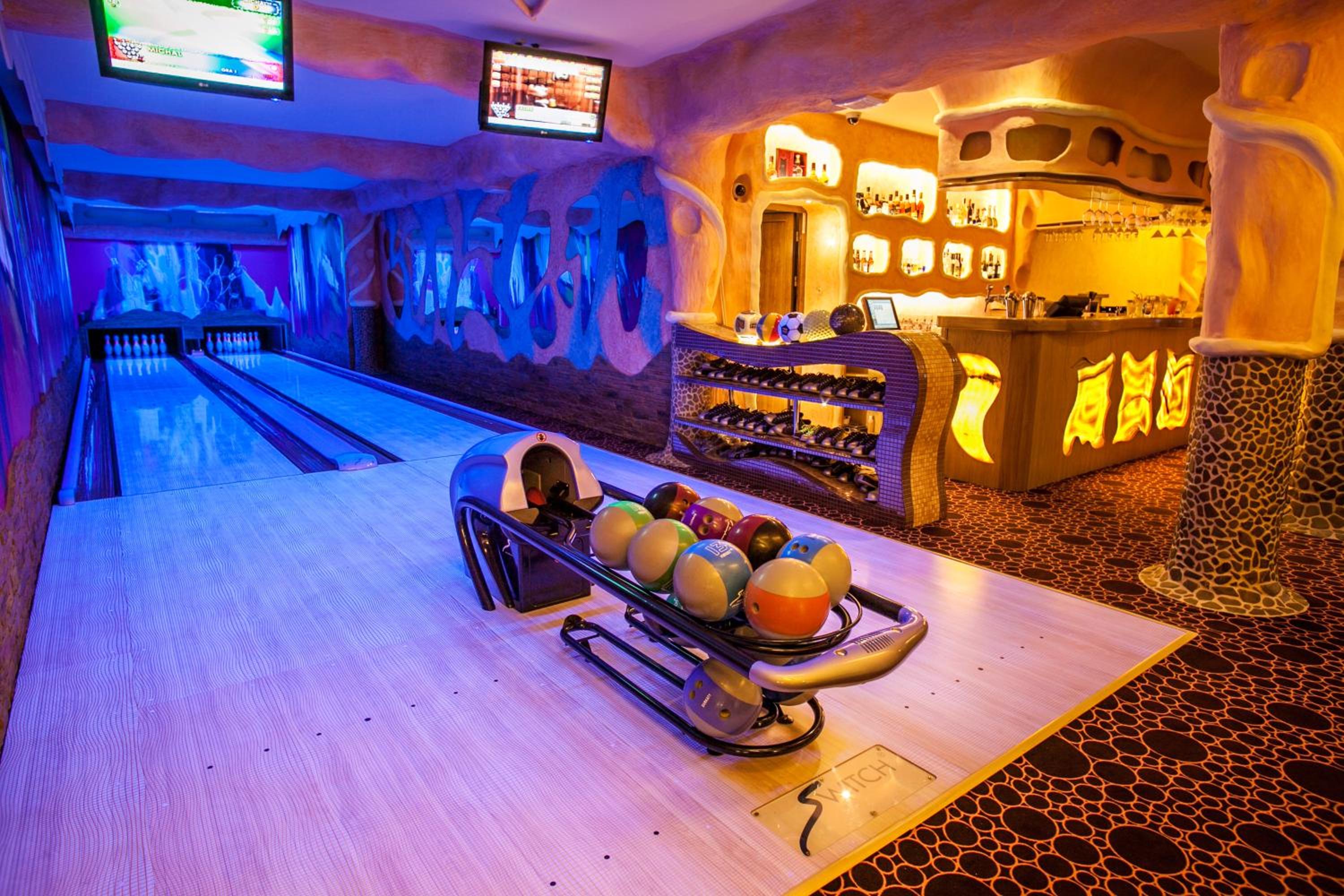 Facilities for children eg table football, air hockey, table tennis, pool and a two lane ten pin bowling alley plus bar in the basement!