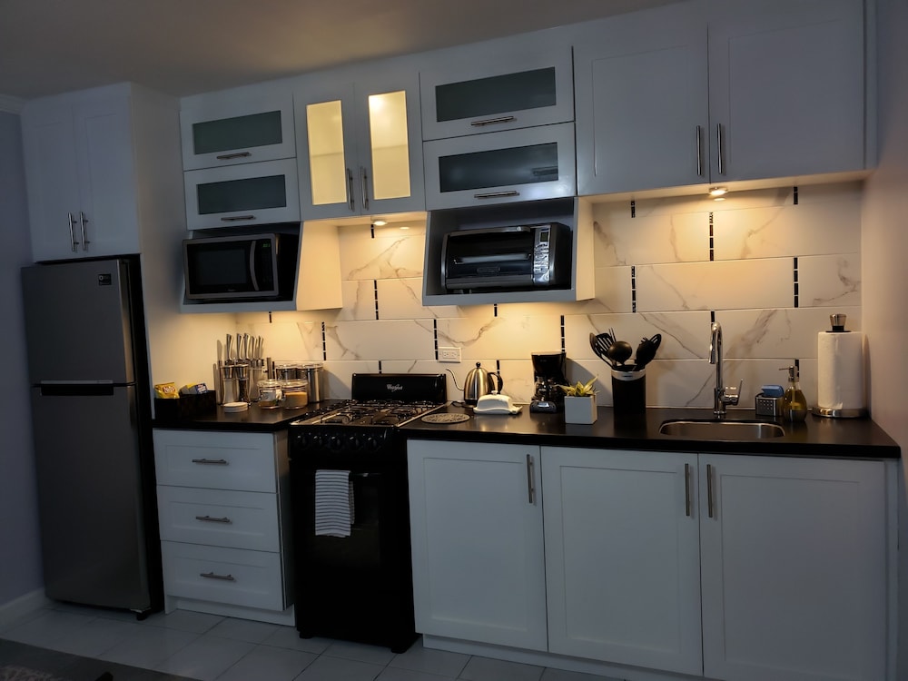 The owner Suzanne is very personable & welcoming. She lives on the property & the apt is at the lower level with an independent entrance. The space is nicely done & a practical kitchen, & seating area. She had some supplies in the kitchen which were very thoughtful -esp if you are on the road eg milk, cereal, sugar, salt etc