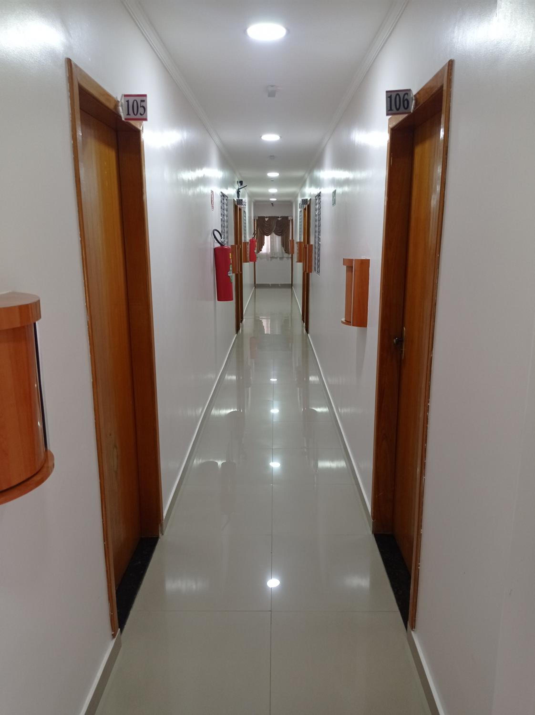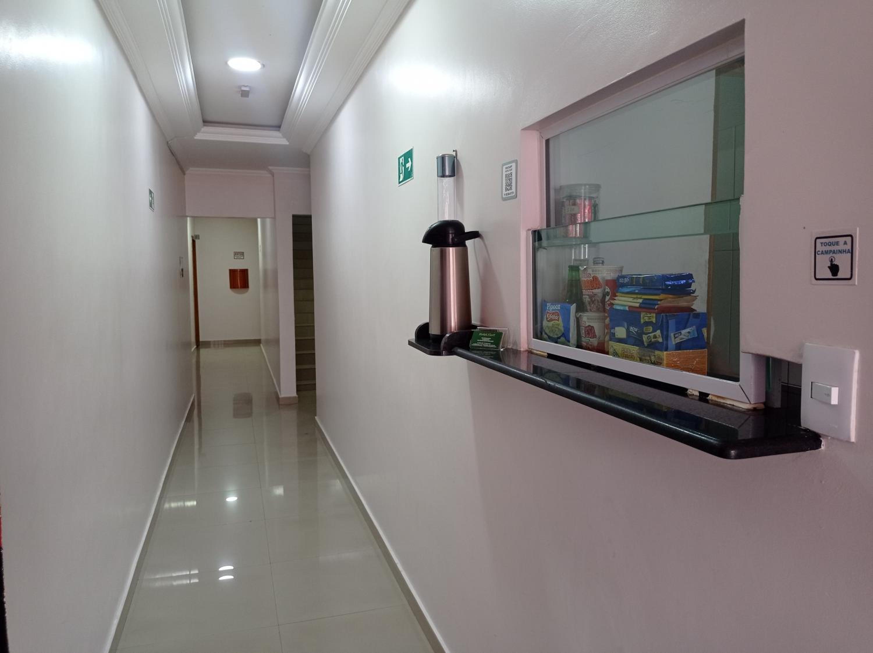 Ambiente muito frio, corredores por serem de ceramica e paredes sem nenhuma decoração, o som reverbera muito e dentro do quarto escutamos tudo o que se fala nos corredores, eu que tenho sono leve acordava muito, principalmente pela madrugada. Mas não e uma critica ruim, talvez algumas cortinas ou outra decoração apra absorver o som ajuda.
