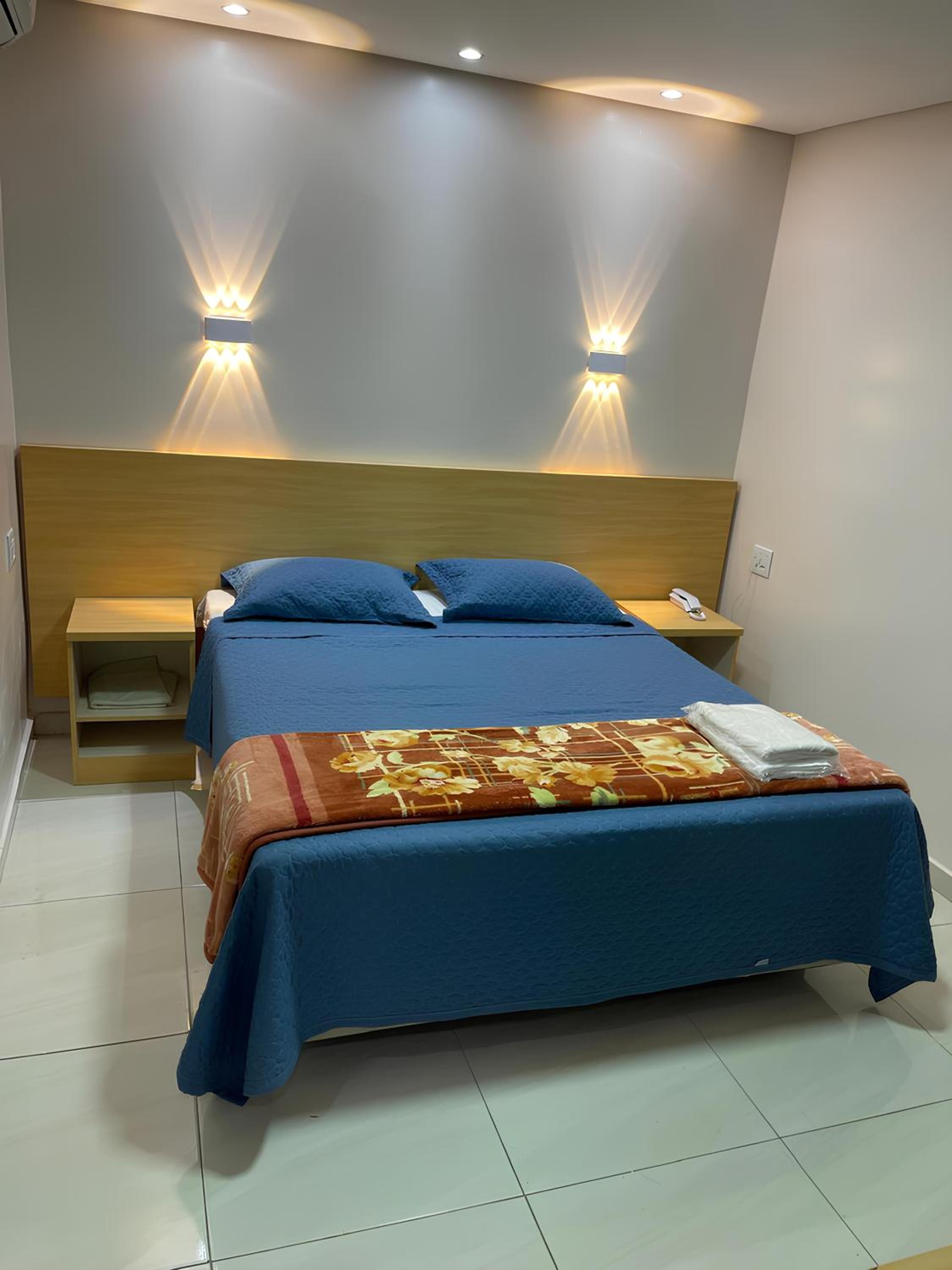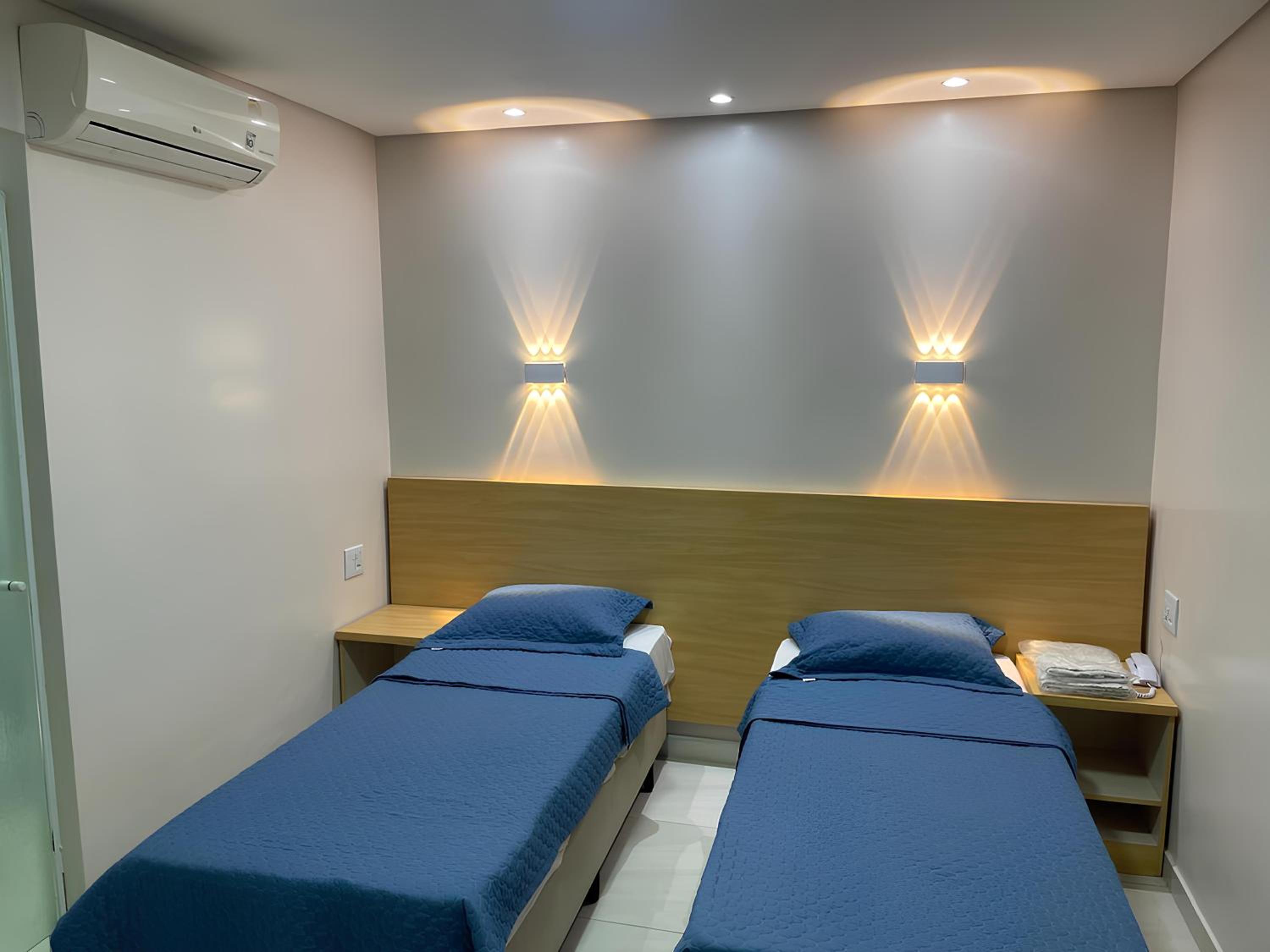 Na foto da acomodação mostra luminárias a cima da cabeceira da cama mas lá não tinha ..