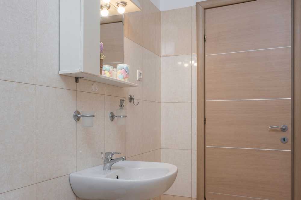 Stort sett en fin leilighet i 2. Etasje av et lite hus med god plassering i nærheten av strand og dagligvarebutikk. Ok utstyrt kjøkken. Dårlig vanntrykk i dusj og manglet feste til dusjhode. Litt svartsopp i dusjsonen. Bråkete aircondition på hovedsoverom. Etasjeseng på det andre soverommet er ikke egnet for voksne, samme gjelder sovesofa i stuen. Deler uteplass ved gaten med fastboende i 1.etg. Trapp i leilighet farlig for små barn og mangler håndlist. Svært bra renhold under oppholdet med bytting av håndkle.