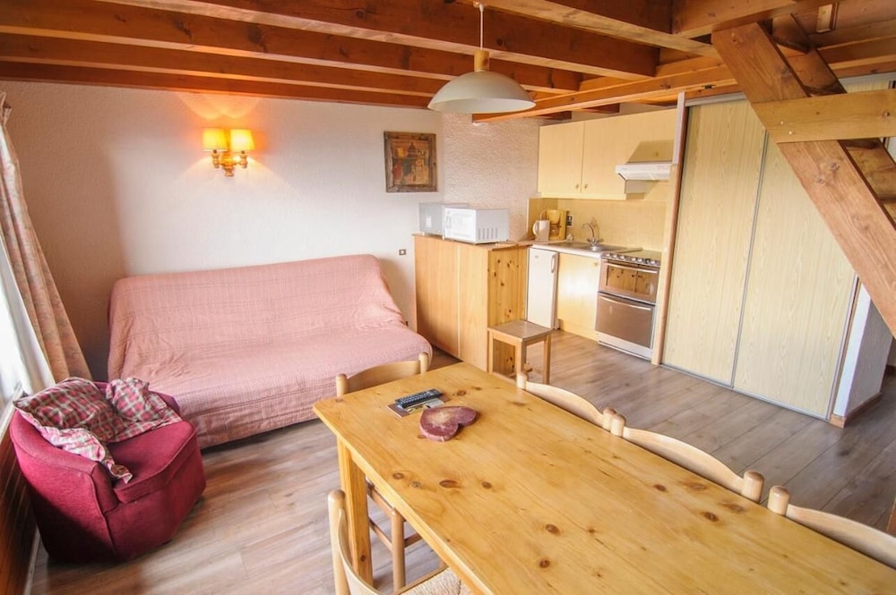 Rafraîchissement à prévoir pour la cuisine et la salle de bain qui restent elles aussi fonctionnelles. Très Belle vue côté montagne et accès aux pistes assez proche et facile. Grandes places de Parking disponibles.