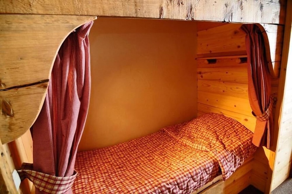 Studio 3 personnes fonctionnel avec un lit double et un lit simple dans un coin aménagé comme une cabane.