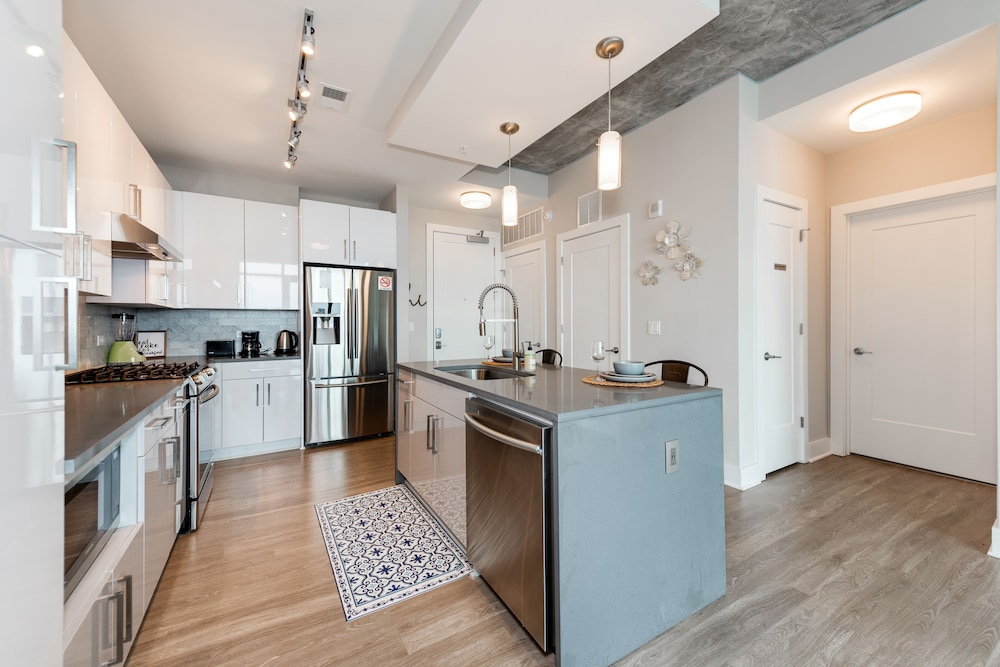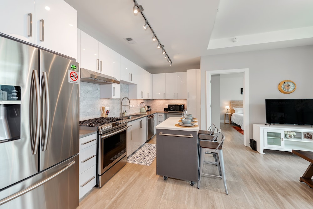 Very nice apartment. A little sterile and the couch was not very comfortable, but the full kitchen, nice bathroom and bedroom and access to the rooftop lounge and workout facilities were a big plus! There was no shampoo or soap for me but there was a Whole foods on the same building....that was nice...the location was awesome!