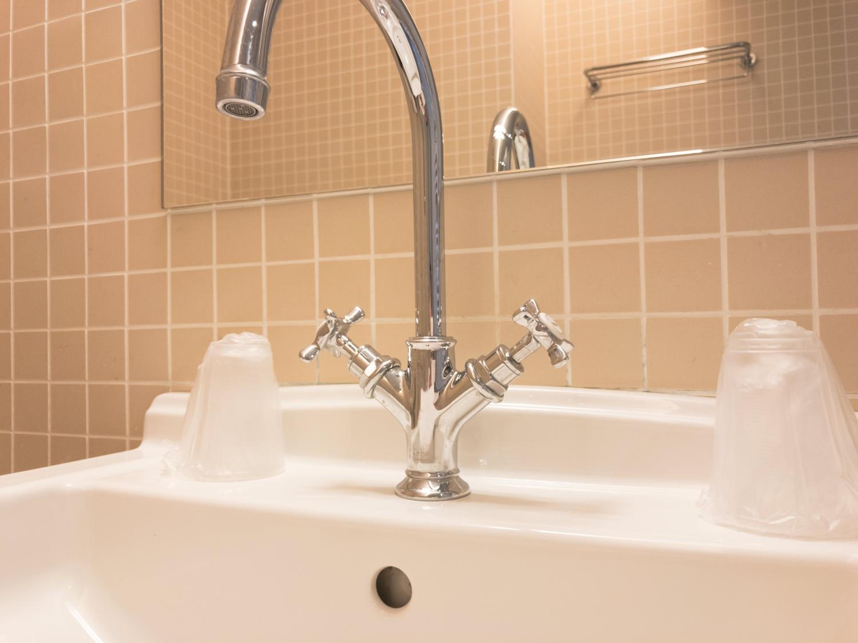 evier de la SDB : robinet à refixer et dévidoir non fonctionnel
