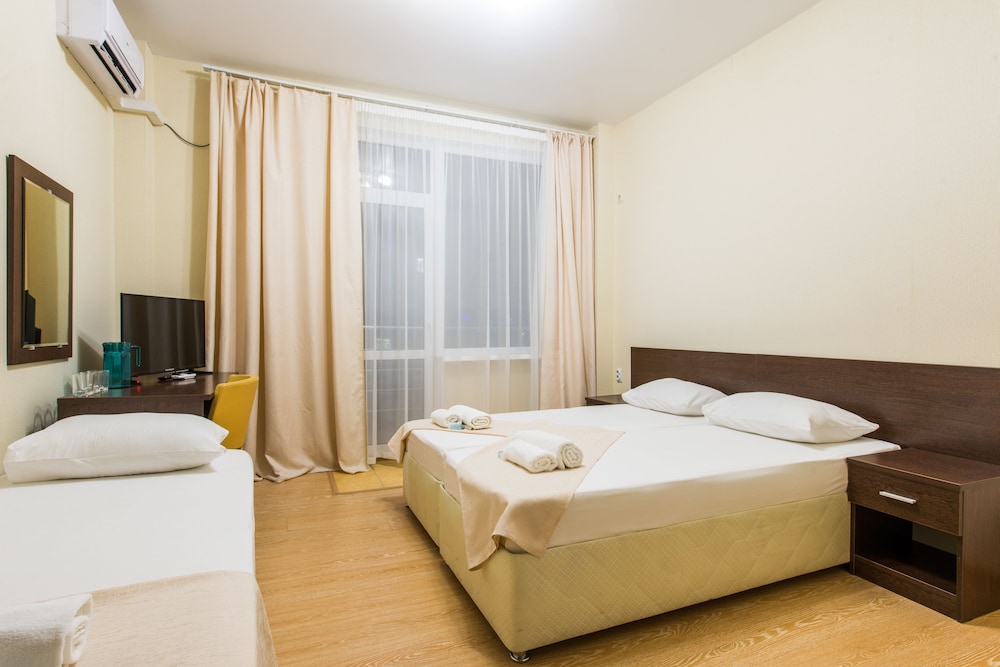 Отдыхали в данном отеле 4 ночи. Номера чистые просторные. Отношение персоонала - хорошее. Расположение отеля вполне удачное - до моря 10-15 минут. Берег - средняя галька. До остановке транспорта и рынка Адлера- 10 минут ходьбы. Питание брали только завтраки - завтрак это вообще "позор" - если вы кашу не едите то делать вам на нем нечего. 4 дня были только каши и периодически запеканка -4*4 см и 1 раз - сосиски. завтрак порционный - то есть кашу больше не чем не заменить - так как по принуипу - "ешь что дали". Но радовало близкое расположение разных столововых вокруг отлеля. Где можно было нормально поесть на любой вкус и ценник - что мы и делали. Так же порадовал бассейн на териитории отеля. В целом отдых удался.