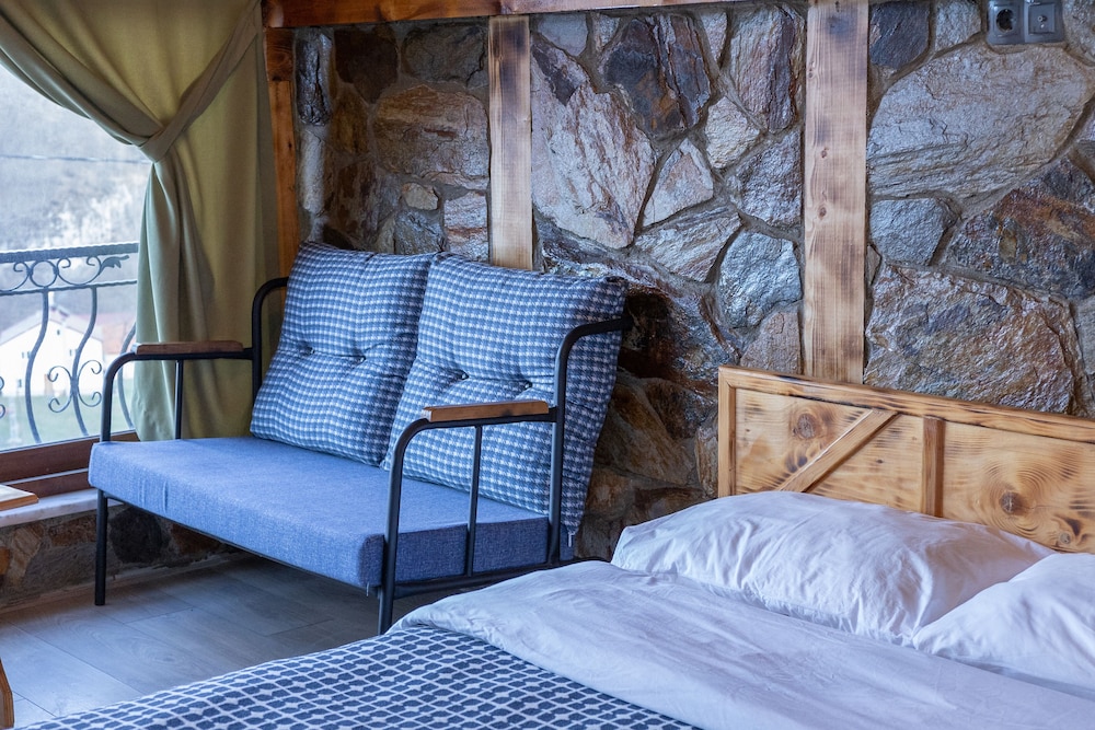 Lovely spot with recently renovated rooms with stone walls. Firm bed. Clean and light. Pot belly stove for toasty warm evenings. Food provided is delicious. No wifi.