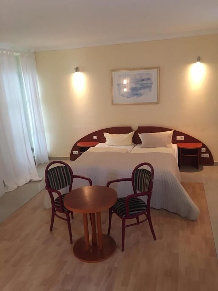 Das Hotel und die Anlage wirkt von außen ungepflegt, das Zimmer war sauber, auf den Bildern im Netz sehen die Zimmer besser aus. Kontakt mit Personal hatten wir nicht, lief per Telefon. War für uns i.O., Frühstück wurde wegen Corona nicht angeboten. War für uns aber auch kein Problem.