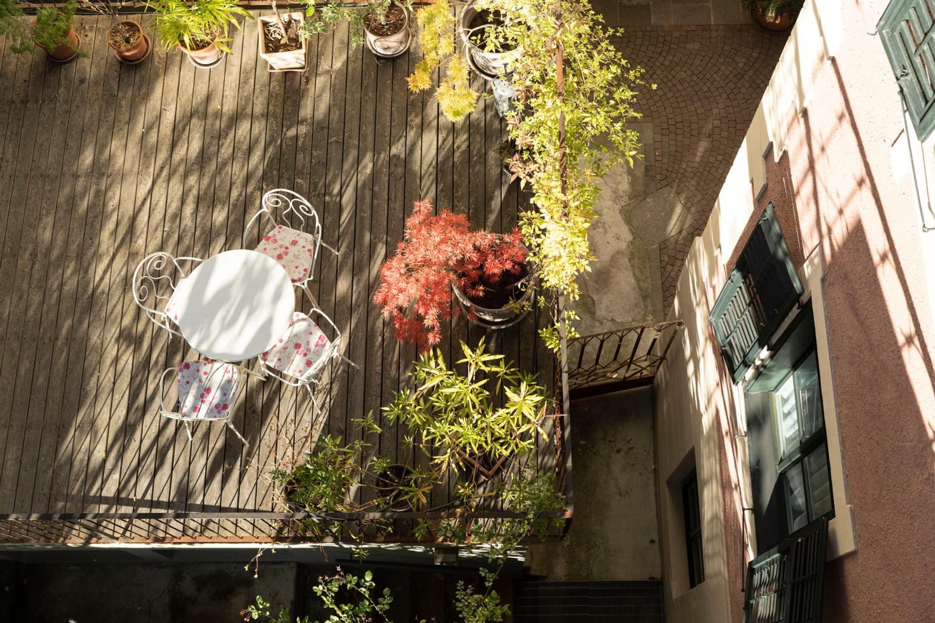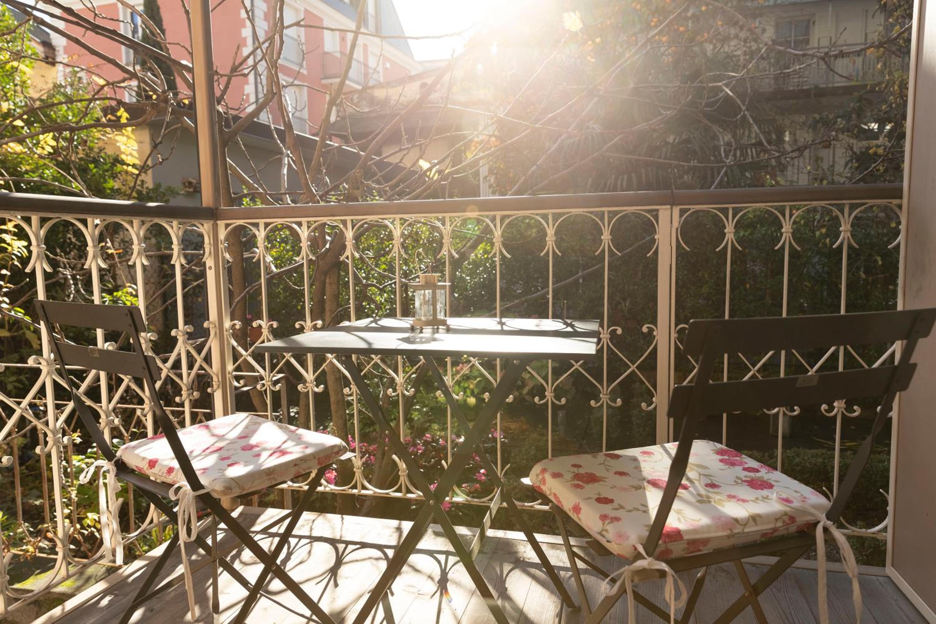 wunderschöner Balkon zum Garten mit genügend Platz für 4 Personen.