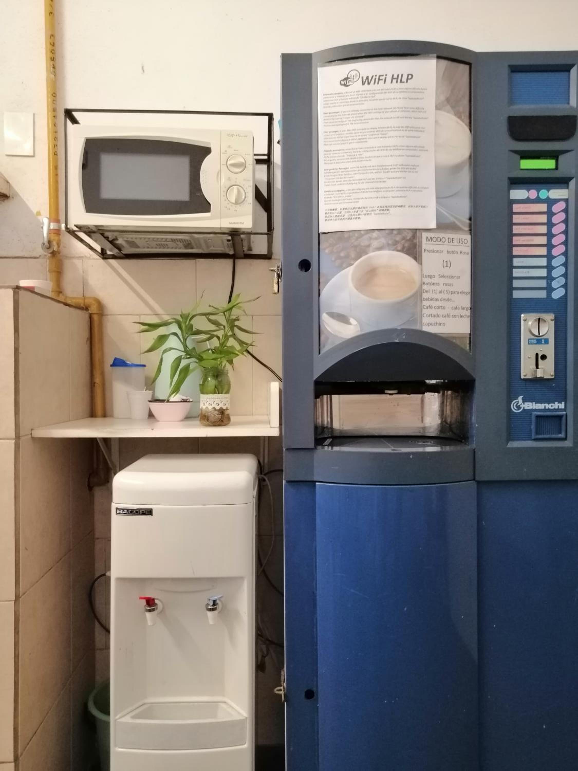 Indulge in our coffee vending machine, hot and cold water dispenser, and shared kitchen with a microwave oven. Benefit from a 24-hour front desk, two spacious courtyards, luggage storage, and housekeeping services.