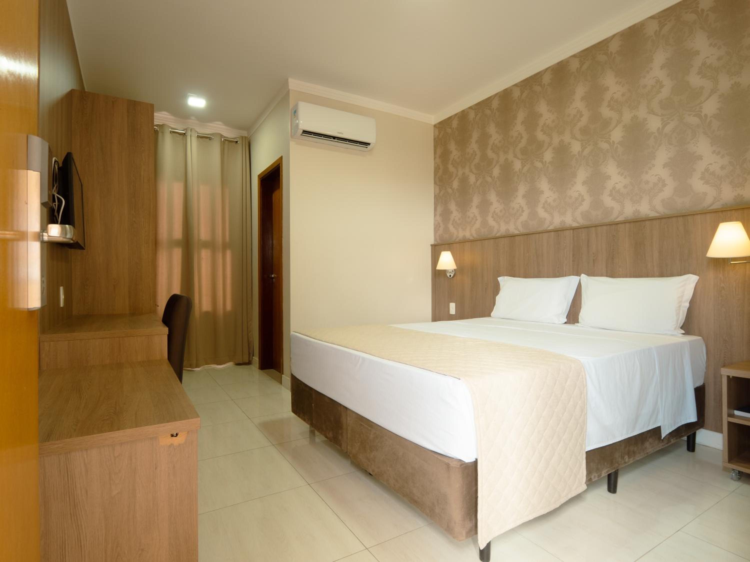 O quarto tem um bom tamanho, lugar para colocar as malas, as camas e travesseiros sao otimos, banheiro arejado , chuveiro muito bom, tudo muito limpo e café da manhã bem variado , com frutas, bolos .