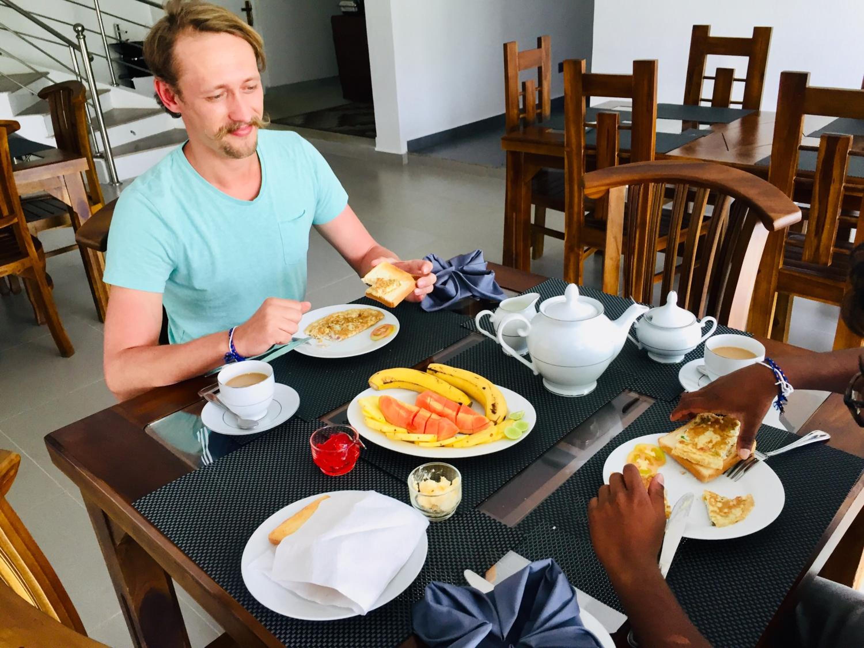 The staff was great and helpful. We even got yummy tea several times, which we enjoyed a lot! There was a big sitting area with comfortable chairs where we could play cards or watch TV. The hotel was located quite uphill but near the pekoe trail (7th trail) and only 15 min from the train station.