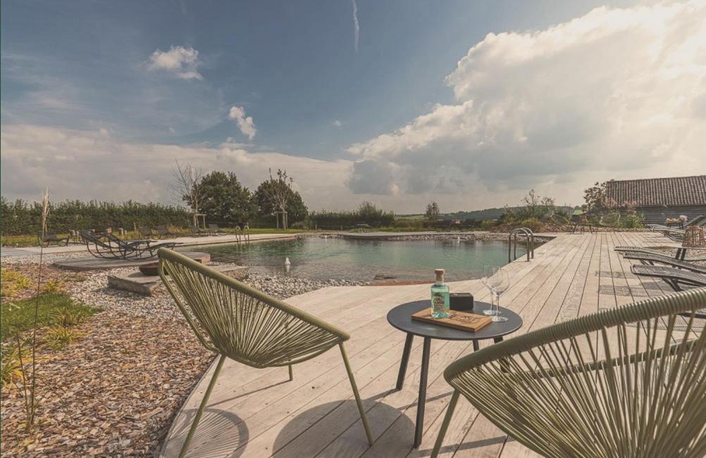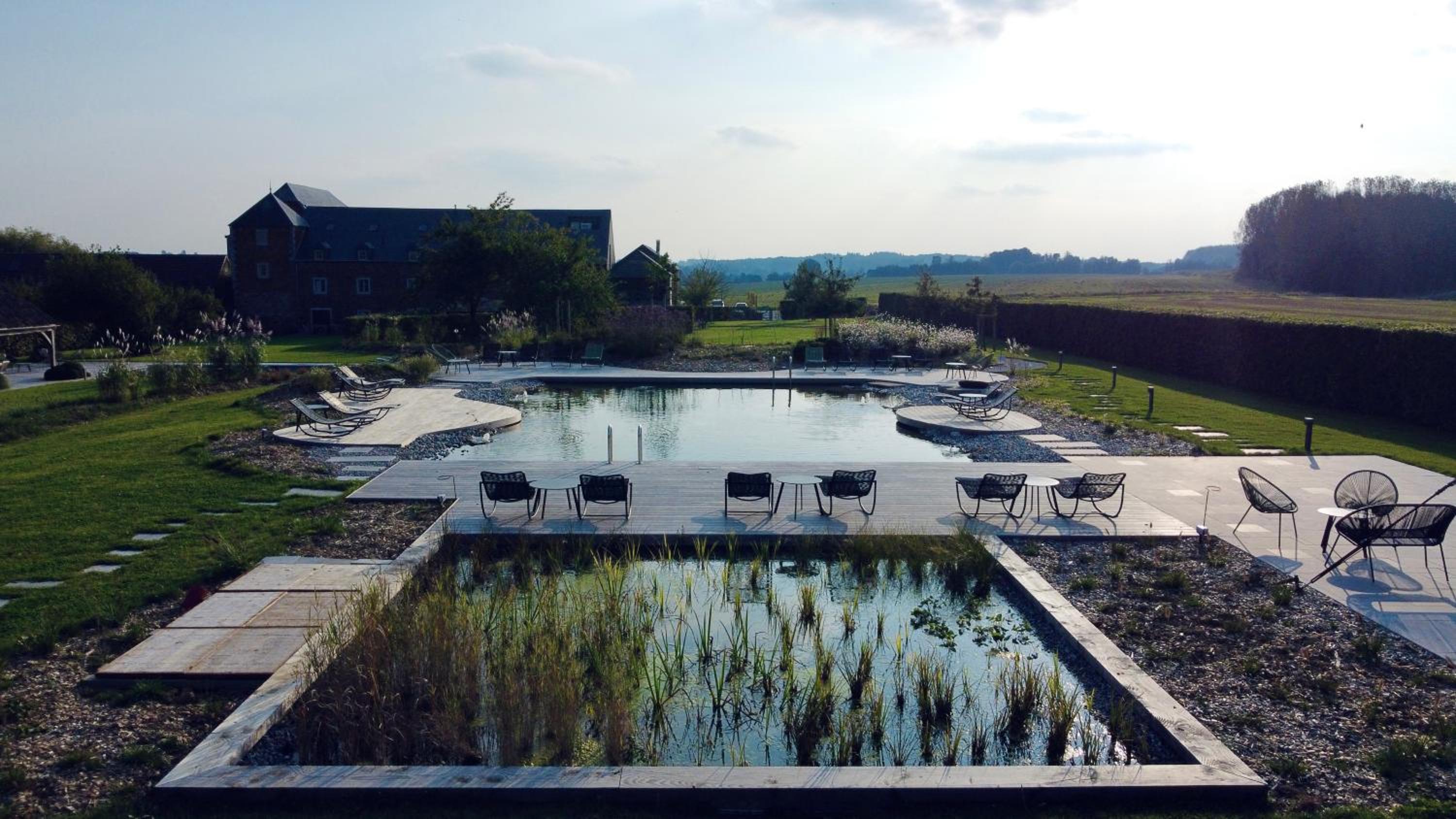 All guests have access to our organic swimming pond (unheated) and its terraces at the rear of the Estate. Access is via the rear parking lot of the restaurant, via the small barrier on the far right.