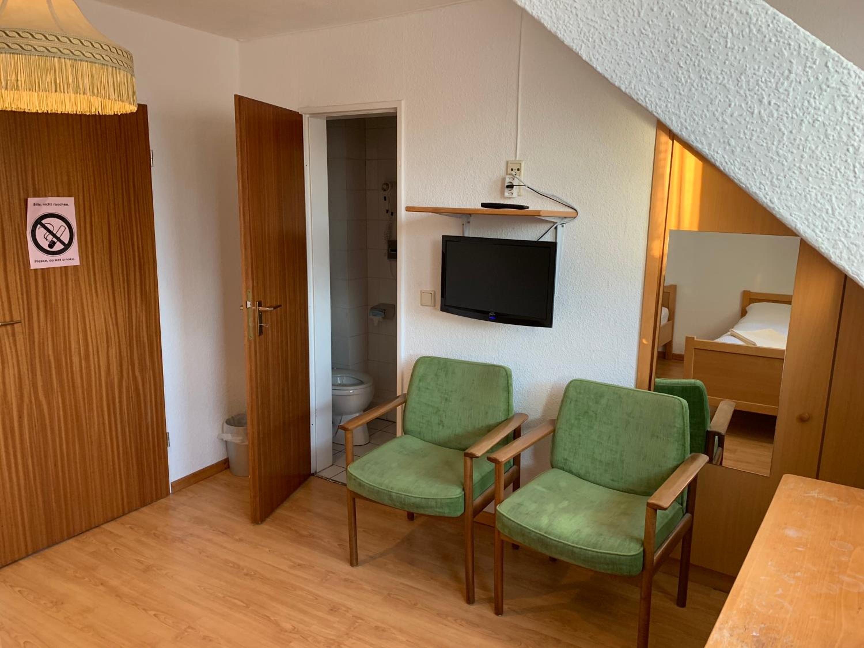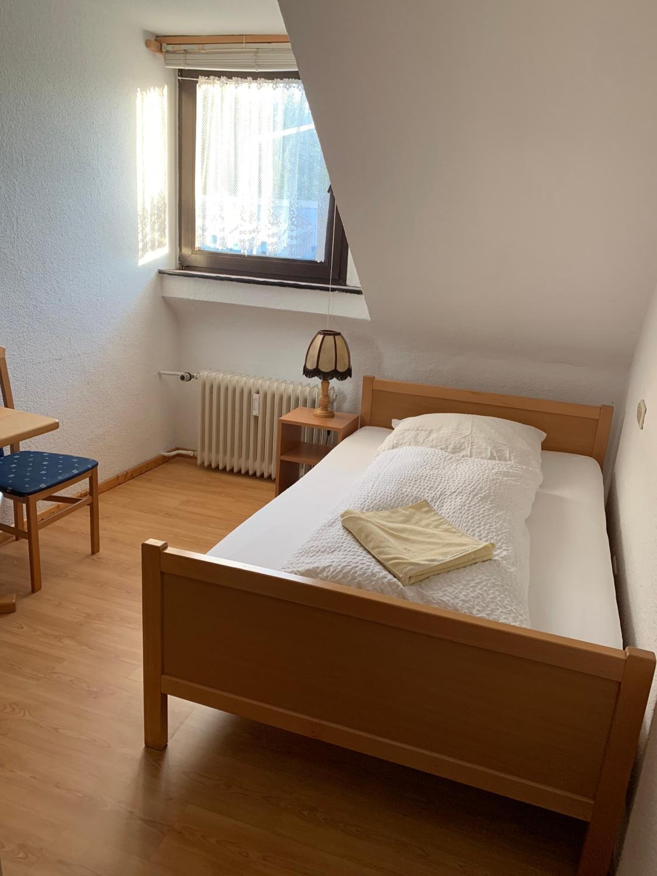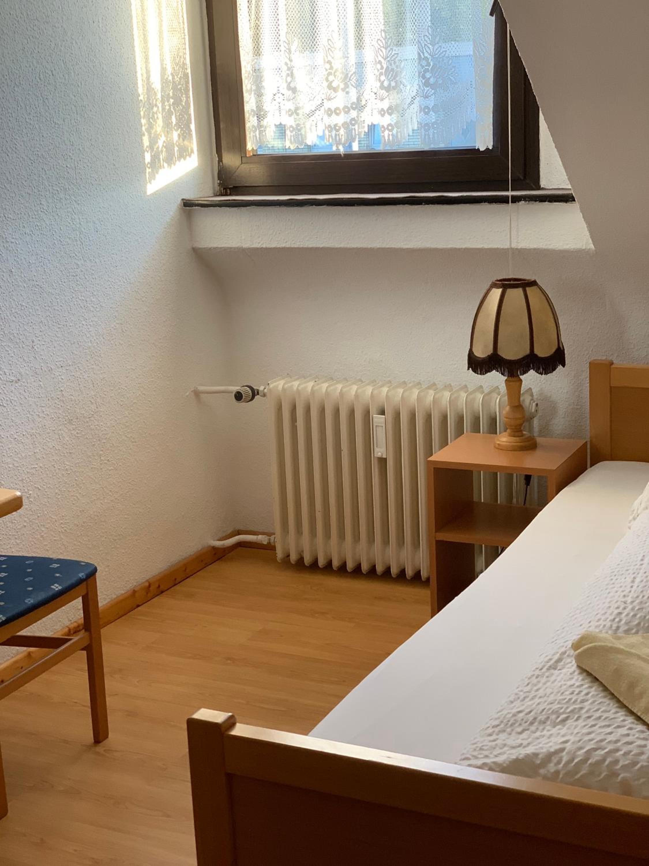 Wir haben nach einem Fußballspiel eine günstige Übernachtung gesucht und durch Zufall gefunden. Klein aber absolut ausreichend, Dusche und Toilette sauber, zwei Einzelbetten und ein Parkplatz auf dem Hof. Preis/Leistung topp. Das dazugehörige Restaurant/Kneipe konnten wir durch unsere späte Ankunft leider nicht kennenlernen. Aber einen Steinwurf entfernt gibt’s eine Pizzeria und der sehr freundliche Inhaber hat uns auch um 23.00 Uhr noch mit Pizza versorgt.