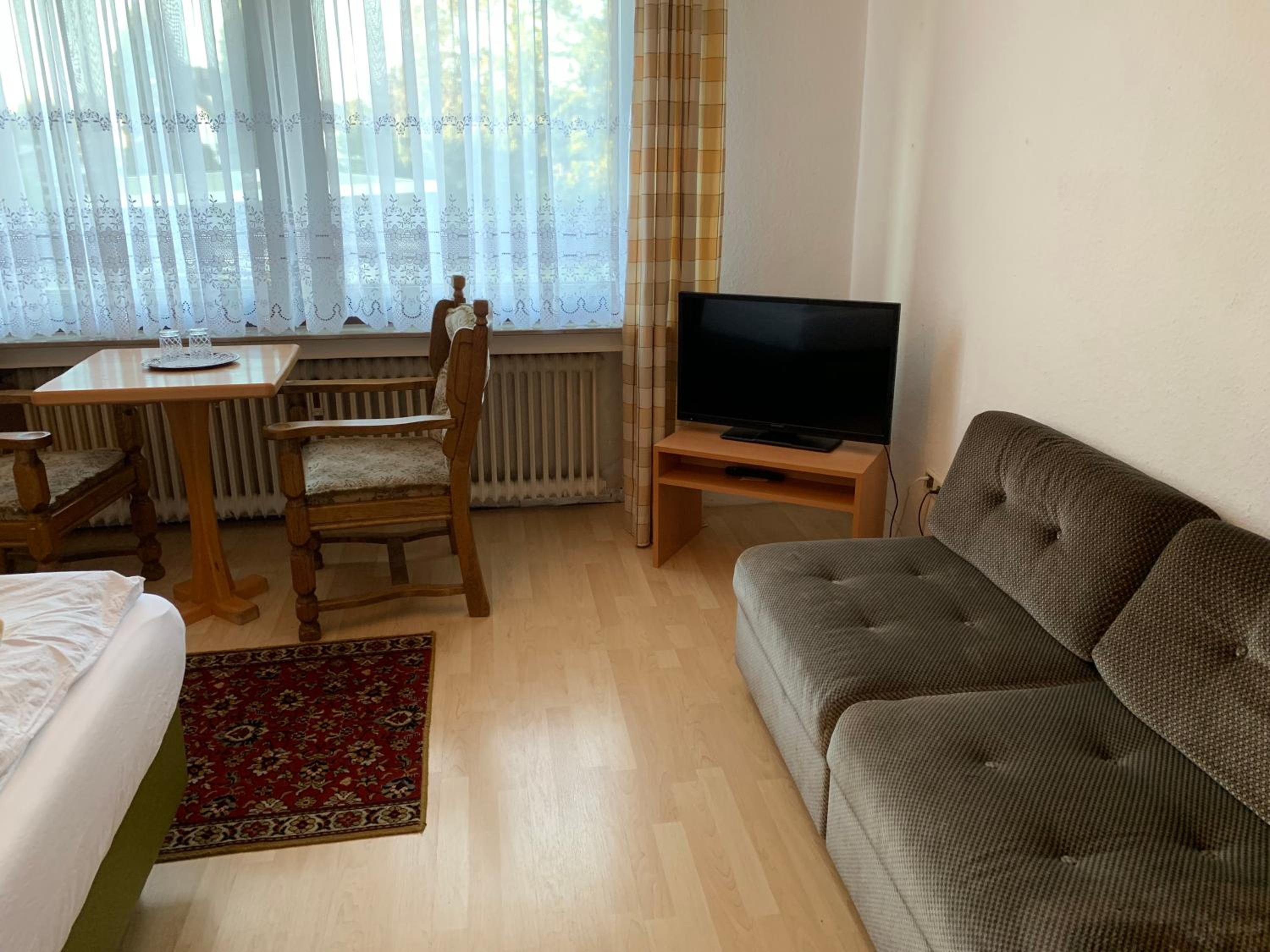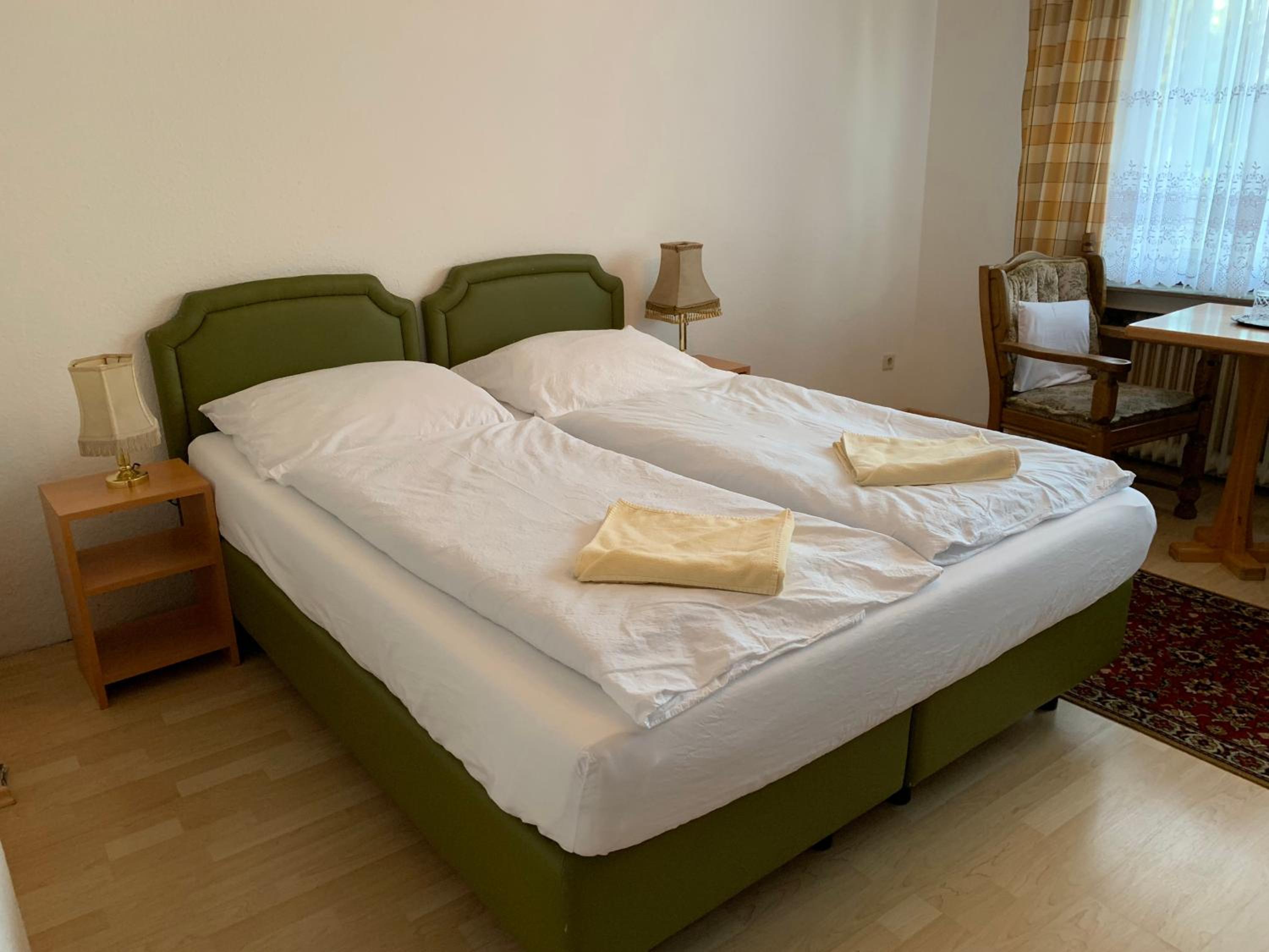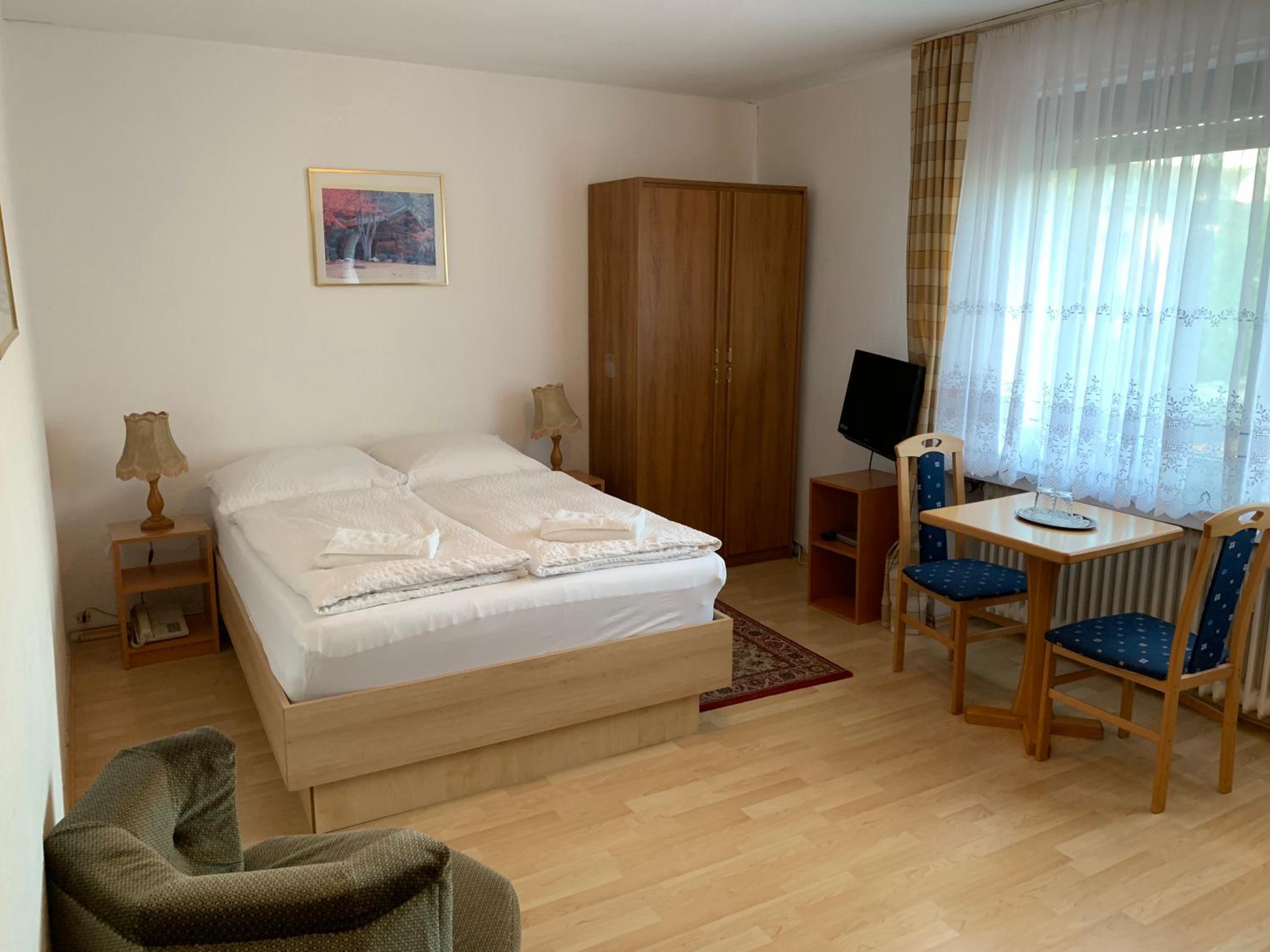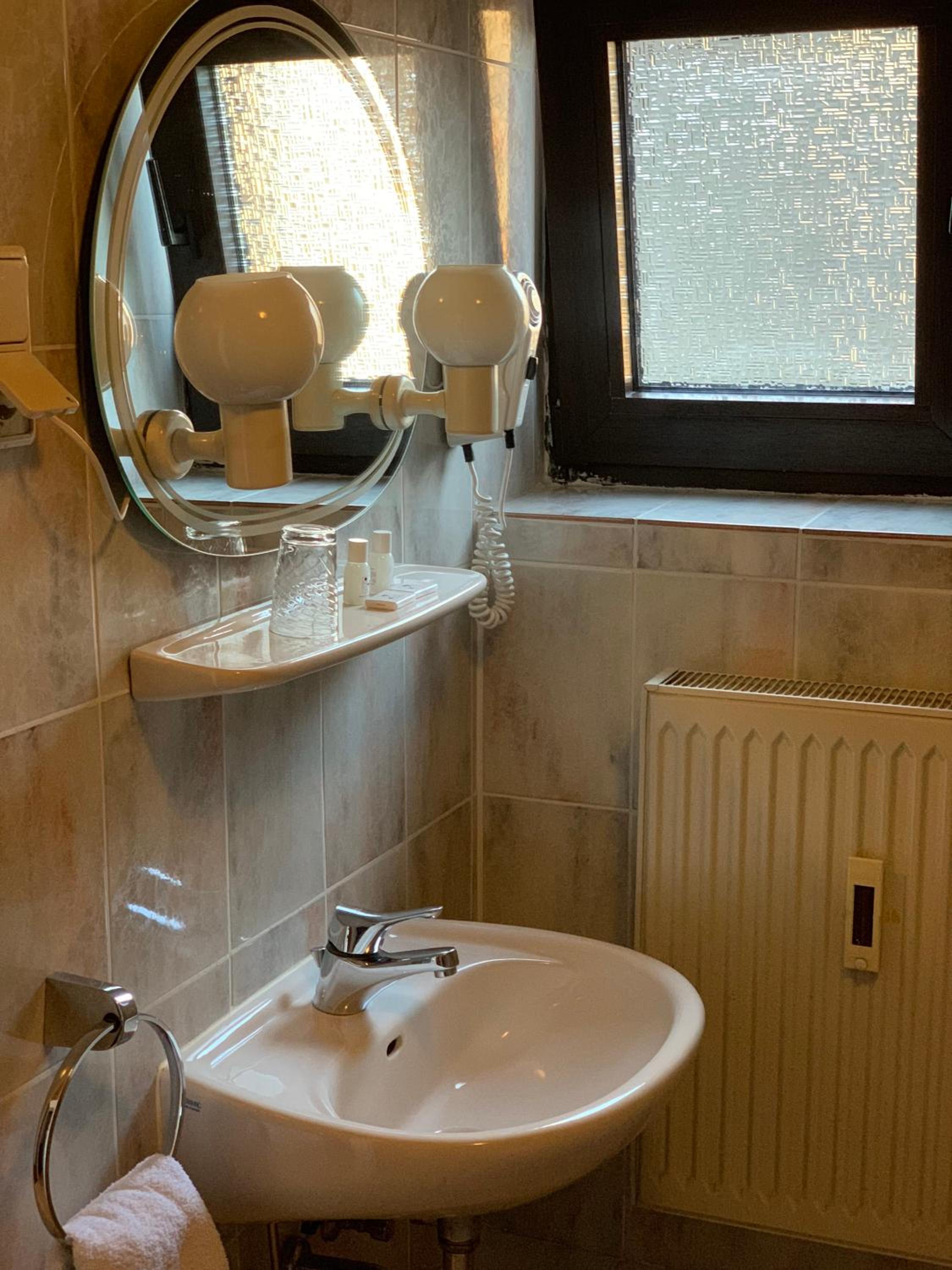 Wir haben nach einem Fußballspiel eine günstige Übernachtung gesucht und durch Zufall gefunden. Klein aber absolut ausreichend, Dusche und Toilette sauber, zwei Einzelbetten und ein Parkplatz auf dem Hof. Preis/Leistung topp. Das dazugehörige Restaurant/Kneipe konnten wir durch unsere späte Ankunft leider nicht kennenlernen. Aber einen Steinwurf entfernt gibt’s eine Pizzeria und der sehr freundliche Inhaber hat uns auch um 23.00 Uhr noch mit Pizza versorgt.