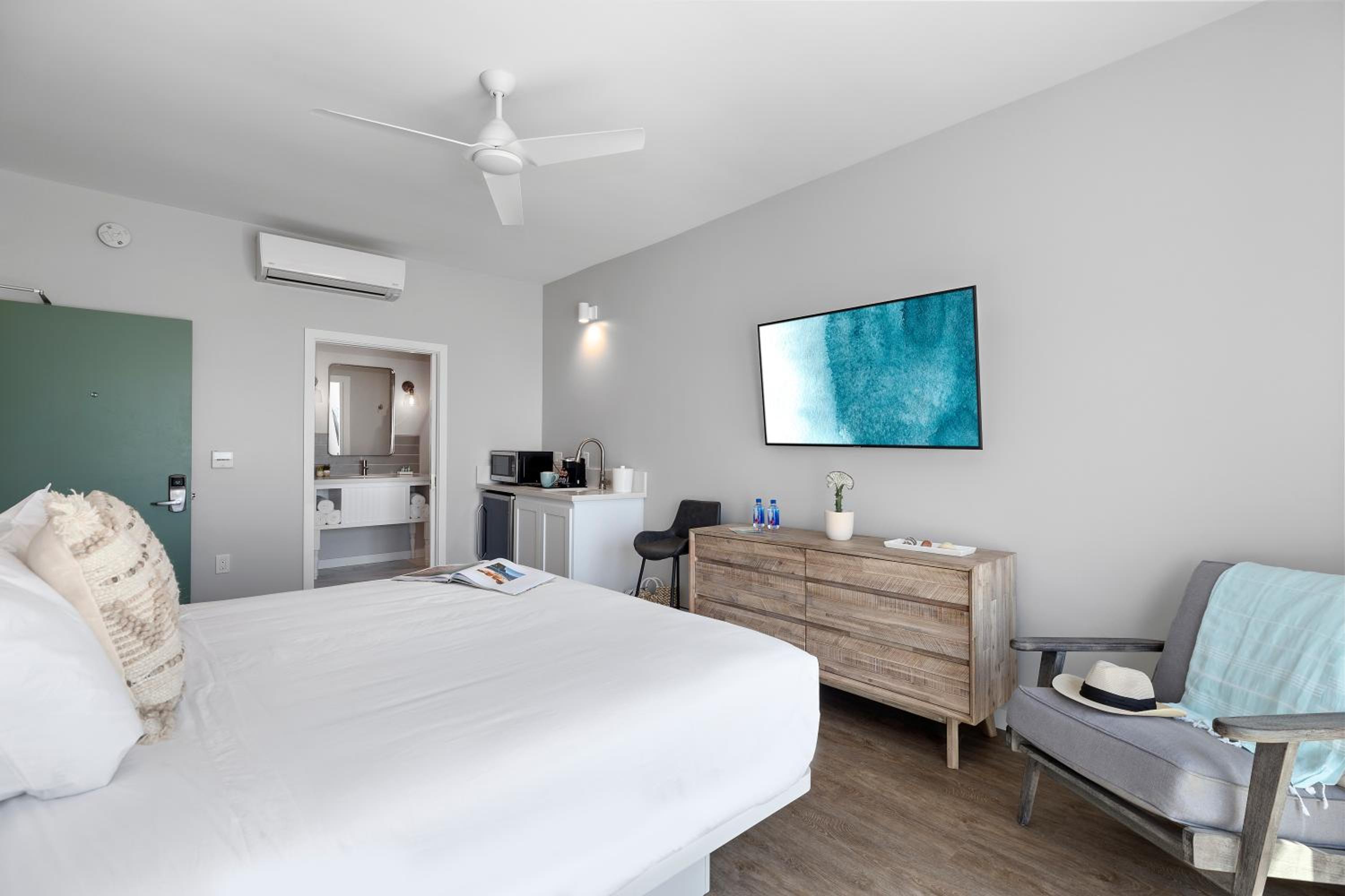 Luxurious Accommodations: Sea Sprite Ocean Front Hotel offers beautifully appointed rooms with modern amenities including flat-screen TVs and private bathrooms.