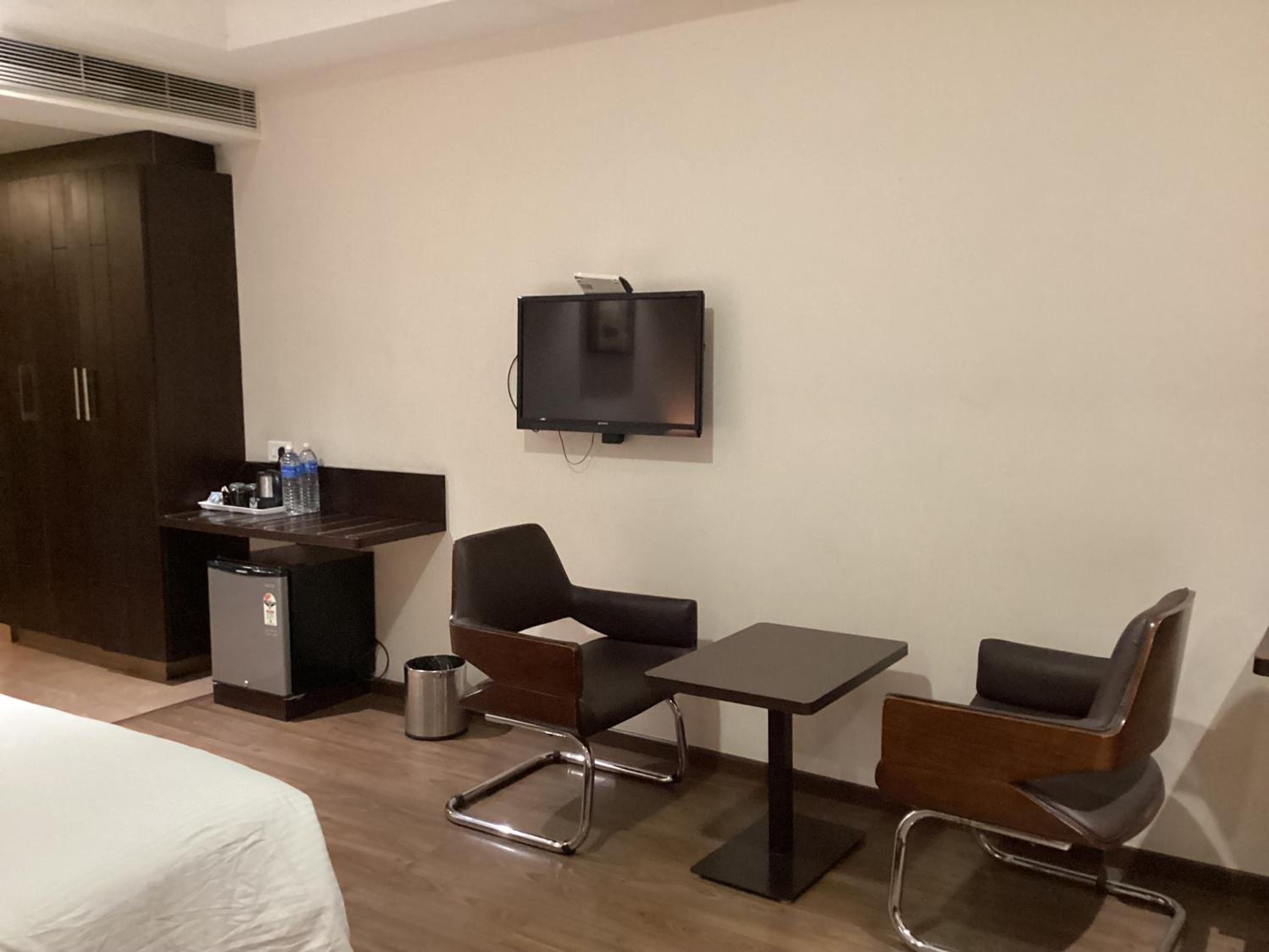 Hotel Atrium in Erode offers air-conditioned rooms with modern amenities including free WiFi, flat-screen TVs, and comfortable seating areas. The private bathrooms are stocked with complimentary toiletries for guests' convenience.