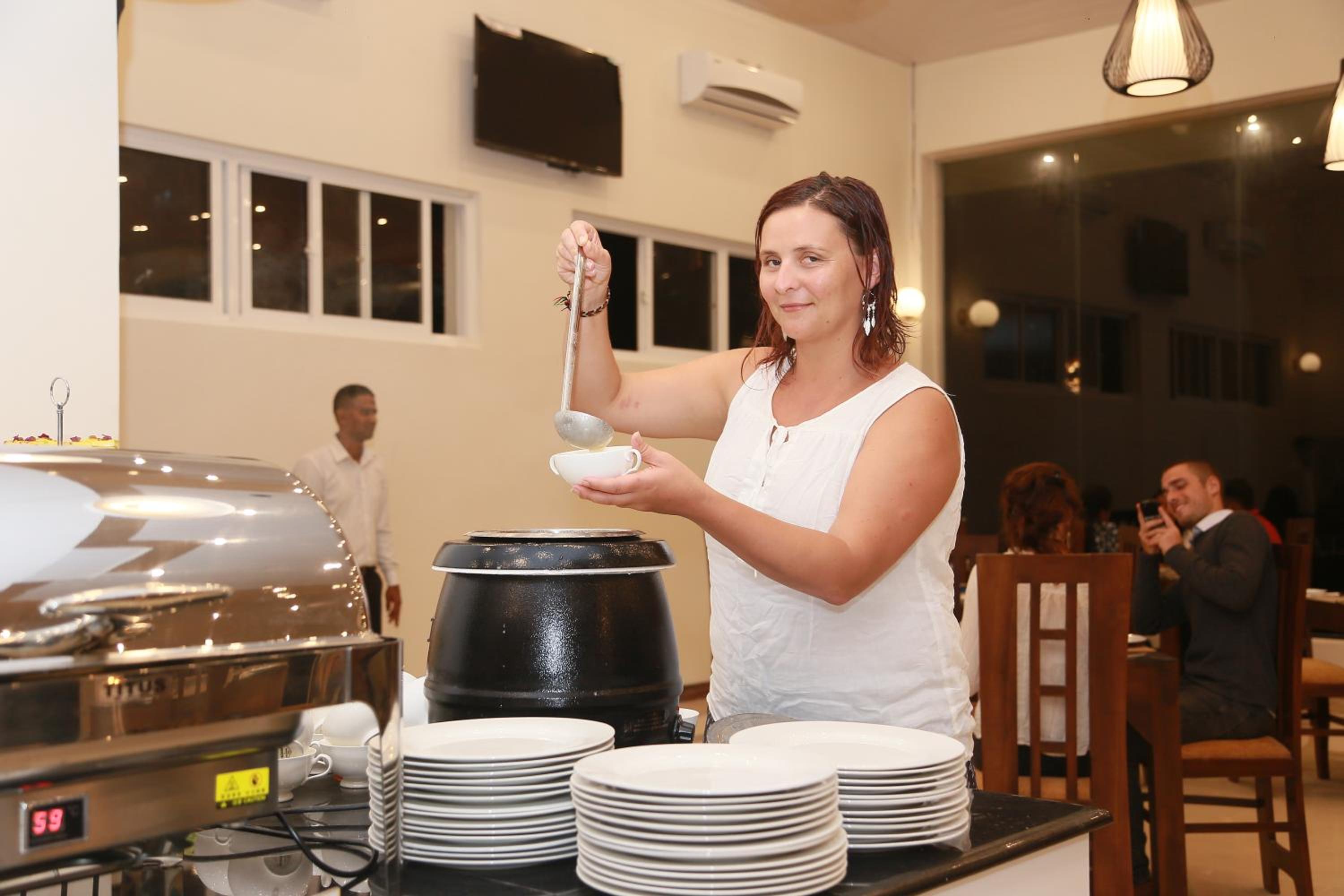 Very nice place. The staff was incredible. After checking in the manager, Mr. Thilanka, was really nice and offered us a free dinner. We did not stay for dinner because we wanted to see Kandy but when we returned at around 10pm there was a knock on the door and Mr. Thilanka brought us a big plate of fruit and 3 pieces of cake. It really made us feel welcome. The breakfast was a full and very tasty buffet and we were offered eggs as well. I would highly recommend.