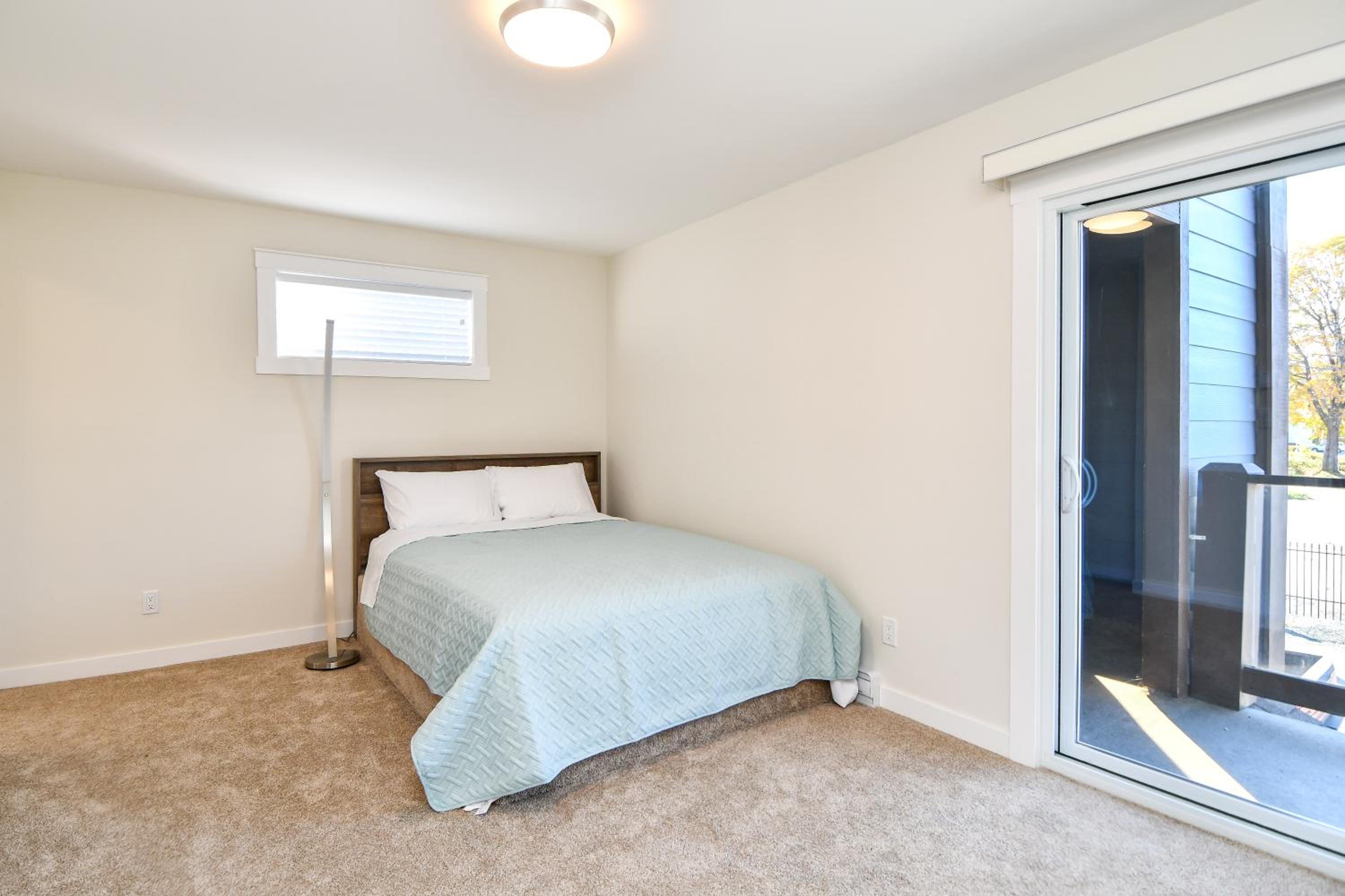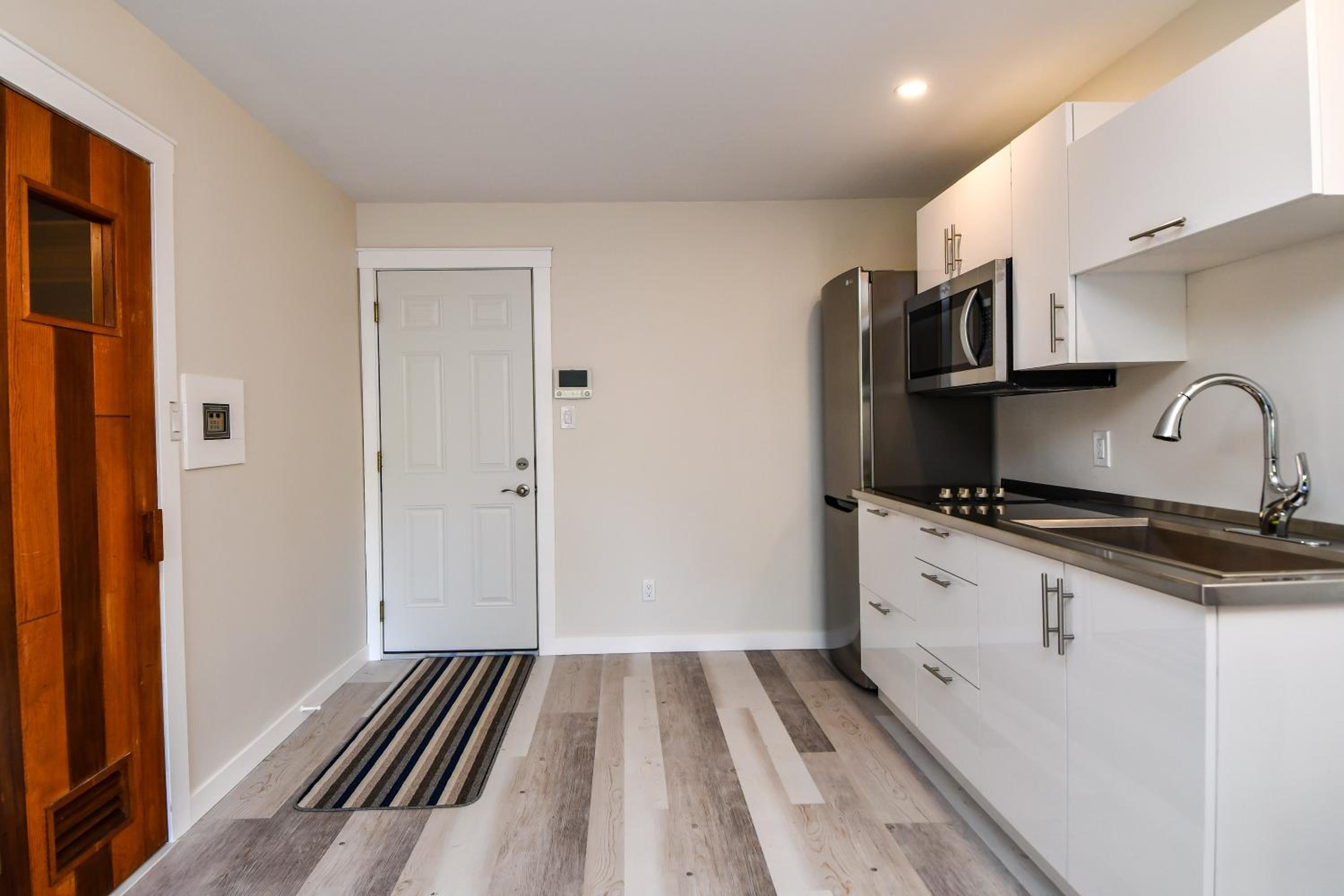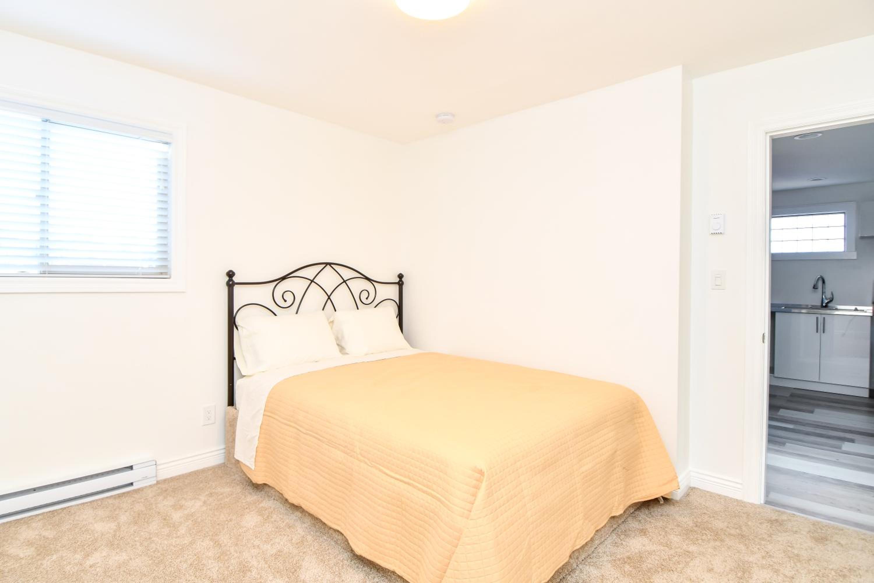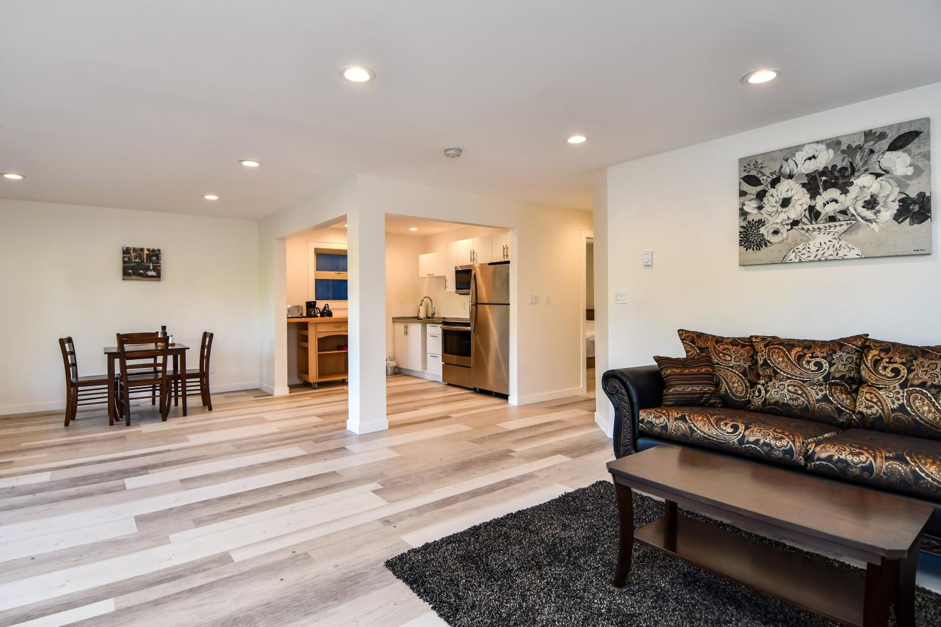 Spacious apartment with kitchenette and separate bedroom.