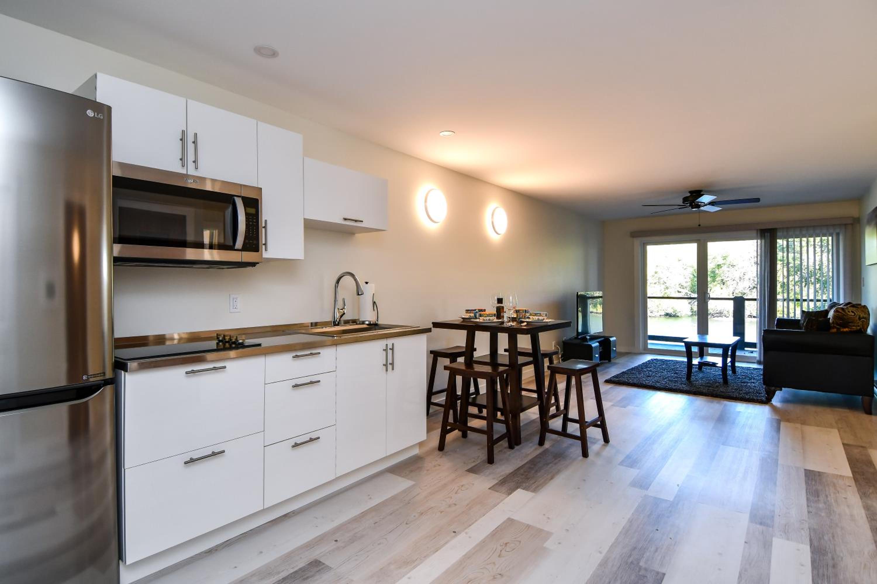 Our suite was clean and very well-equipped. It was wonderful to have the river flowing by in the backyard - the view was fantastic, and it was very quiet. The staff member on site was friendly, welcoming and helpful.