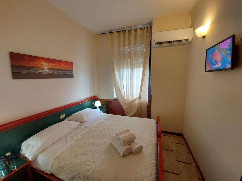 Colazione al bar interno (cornetto e cappuccino) e parcheggio interno scoperto.