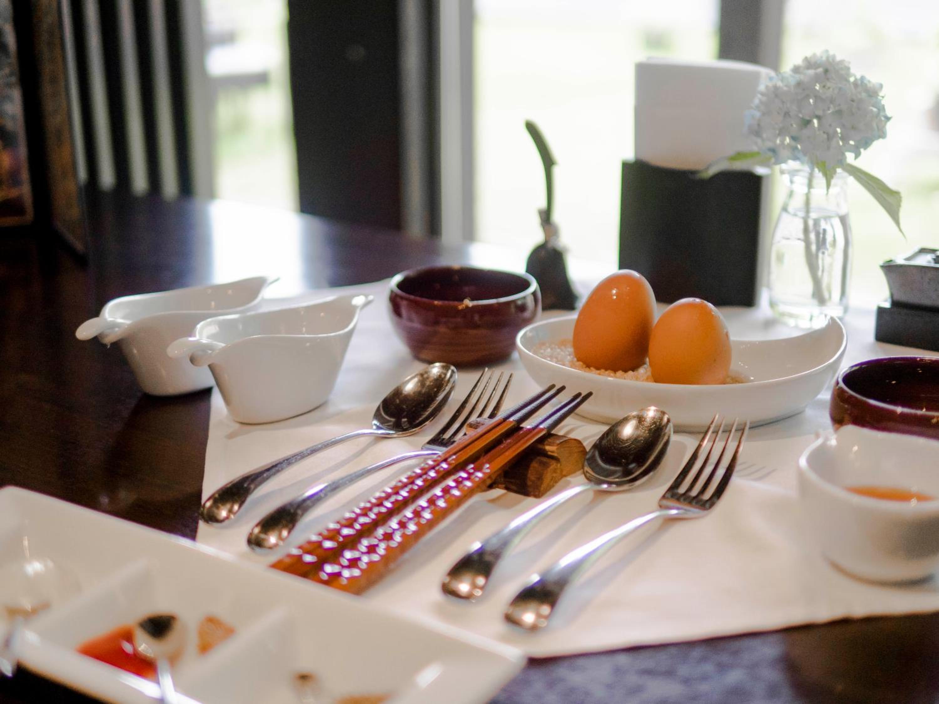 ディナーはコースですが、前半はよかったのですが、途中でよくわからない(料理の方向がよくわからず)一皿が出てきてほぼ残してしまいました。その後いきなりキッシュが来てそこでトーンダウンしてしまいました。夕飯にキッシュは食べたくなかったです。もう少し料理の構成を考えられた方が良いのではと感じました。朝ごはんは美味しかったです。