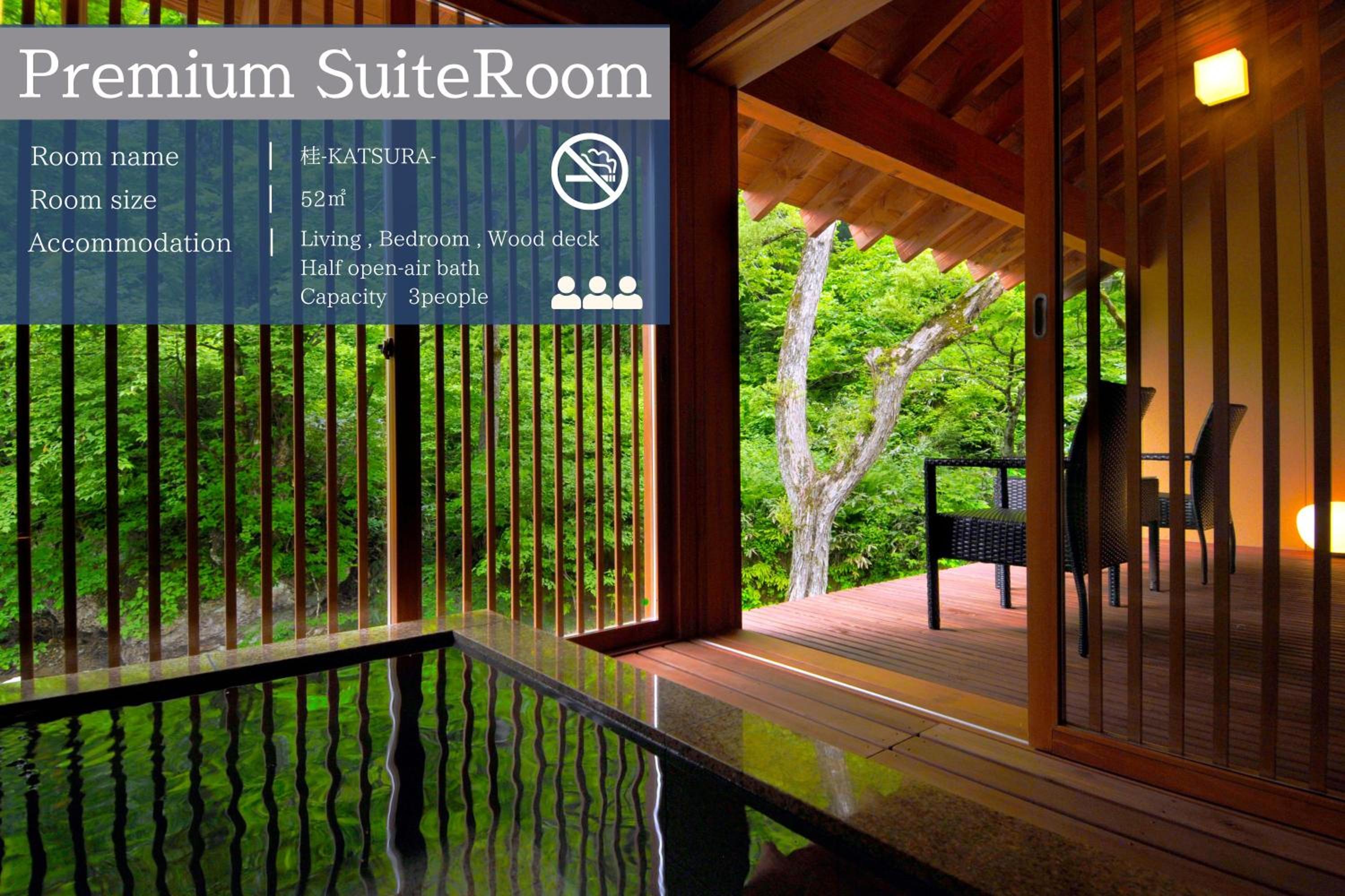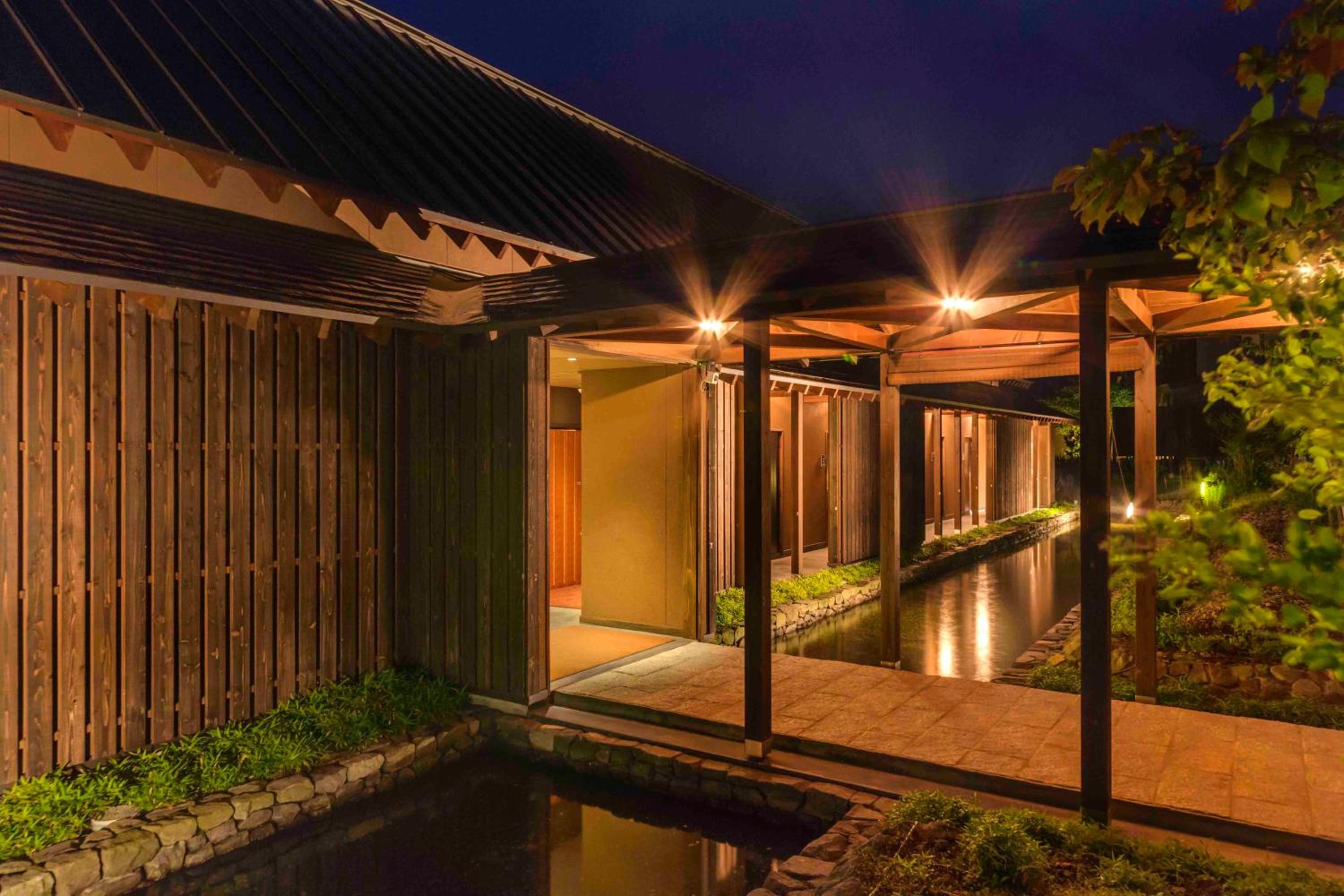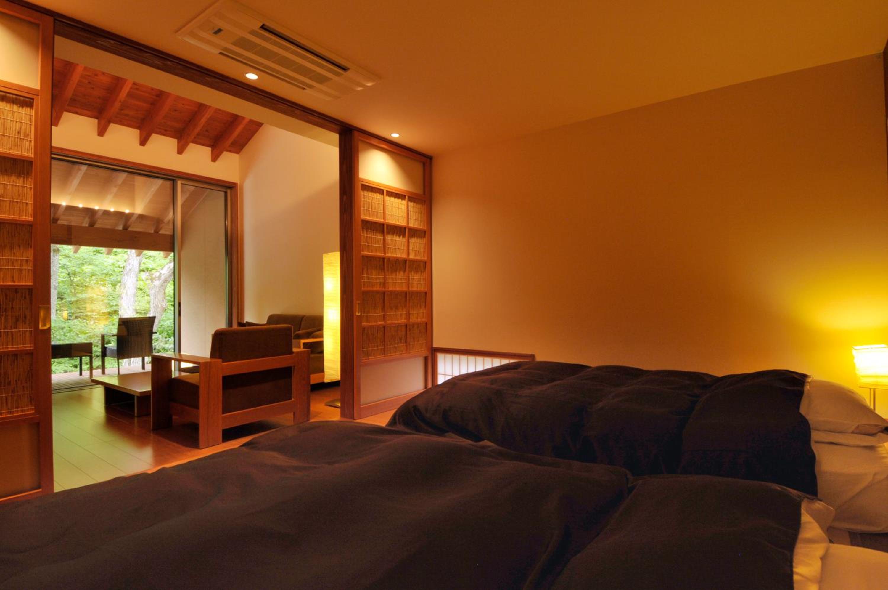 Immerse yourself in the serene atmosphere of Yamado, offering chic guest rooms with private hot spring baths and a living room for relaxation. The wooden furnishings and Japanese sensibility create a peaceful escape.