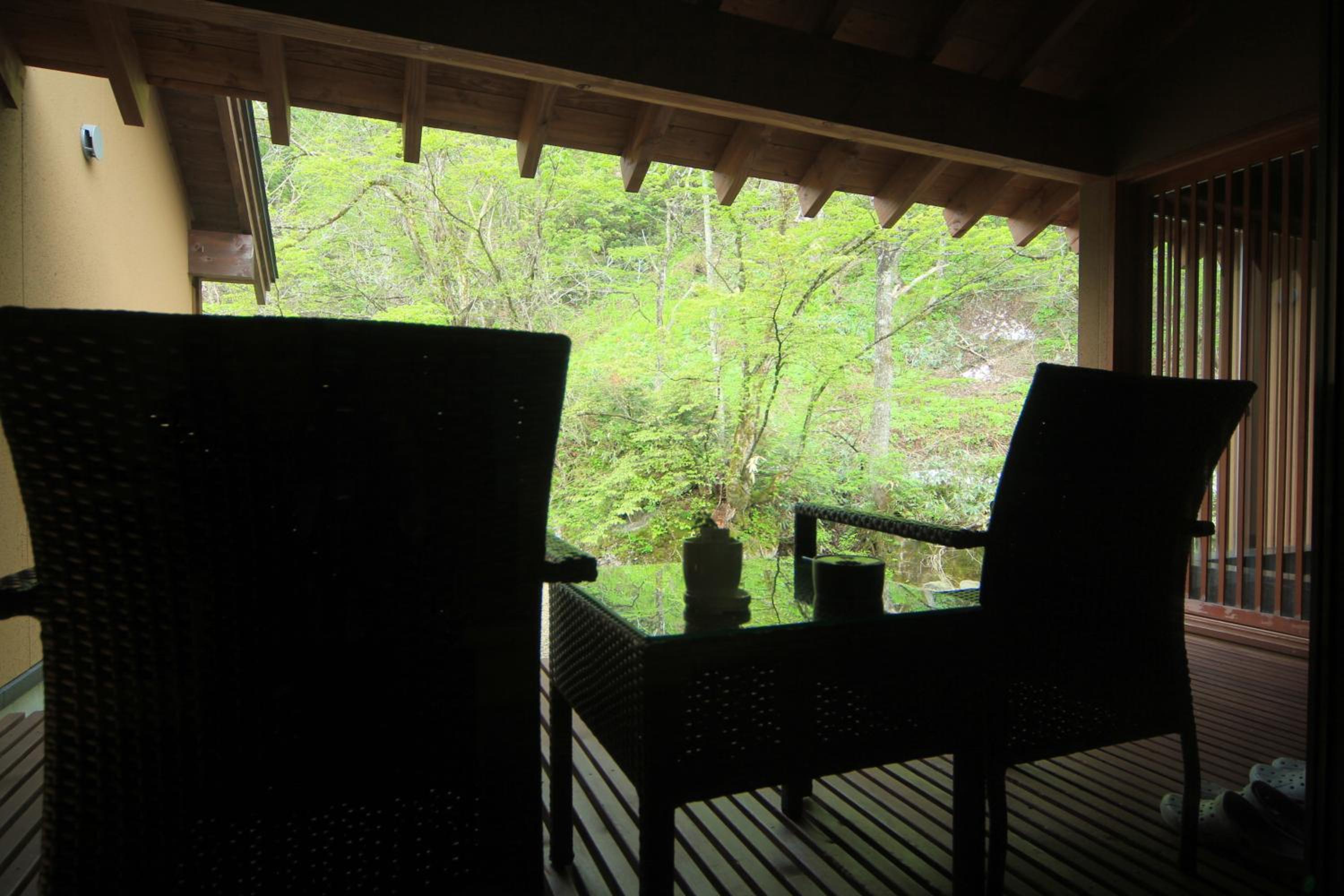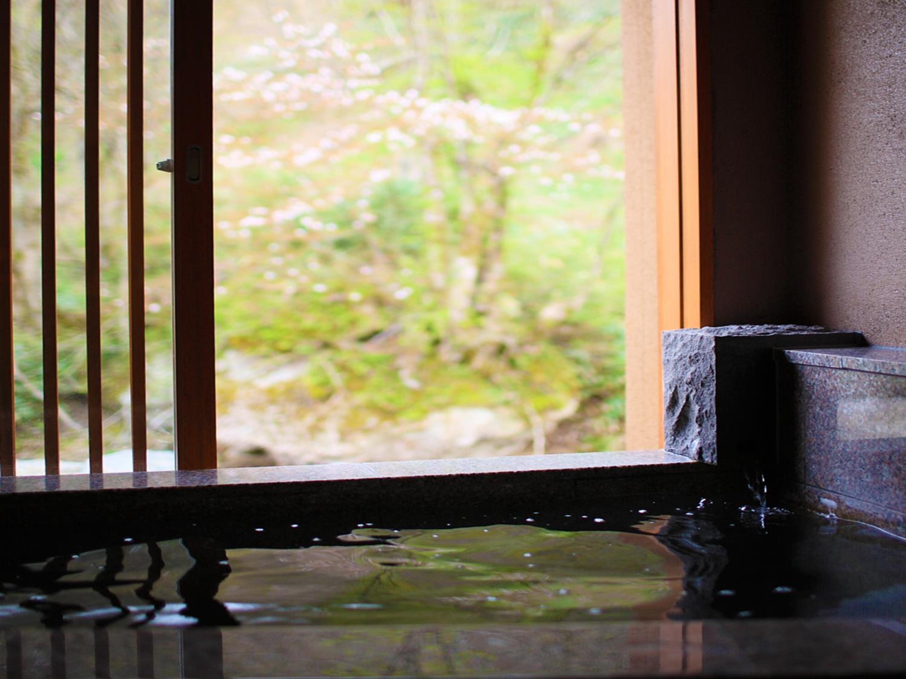 Savor seasonal Japanese meals with local ingredients in a cozy dining space. Experience the traditional ryokan lifestyle by booking a private hot spring bath beside the river.