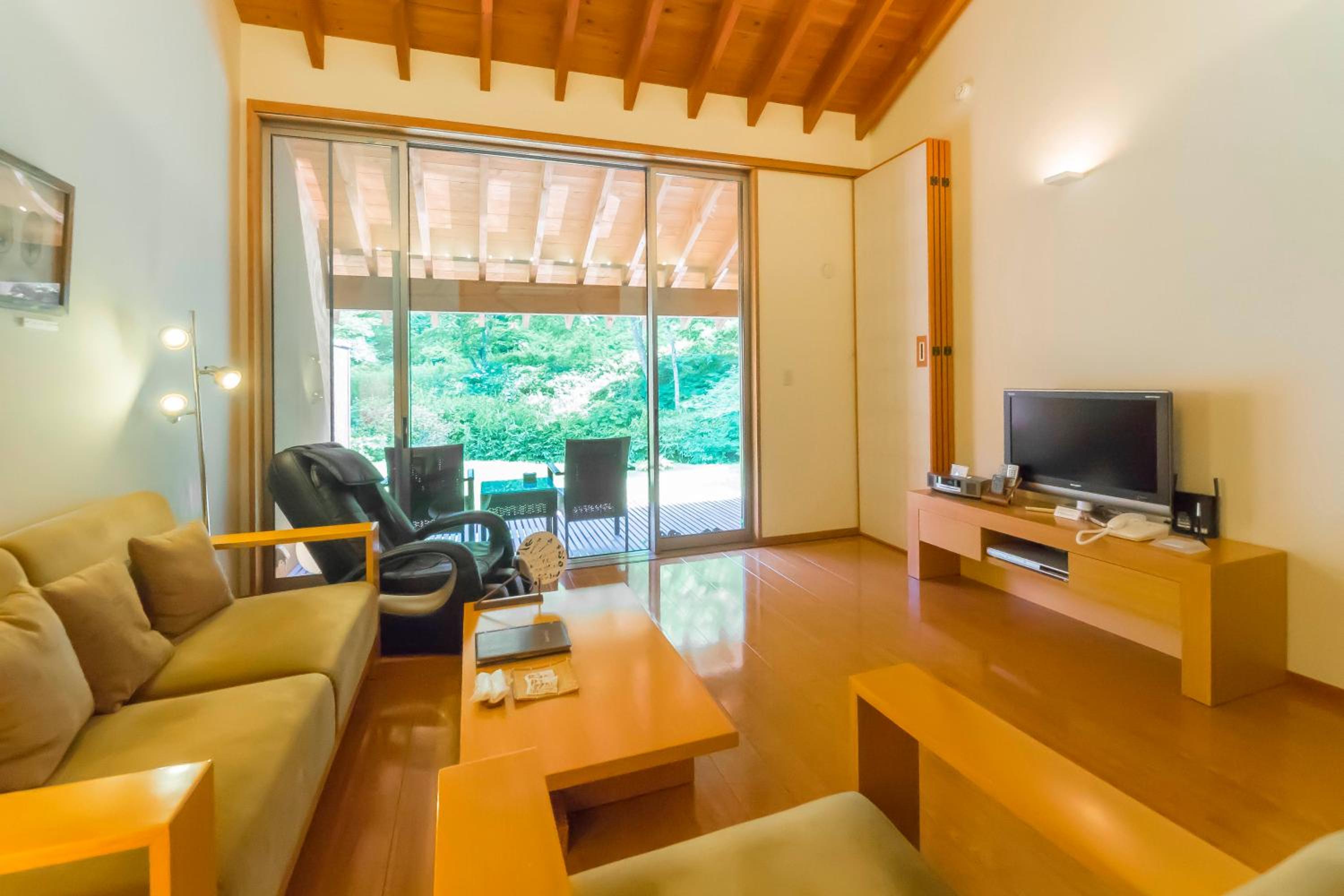 Indulge in entertainment with flat-screen TVs, DVD players, and Bose sound systems in every room. Enjoy complimentary Yukata robes and unwind with in-room massages.